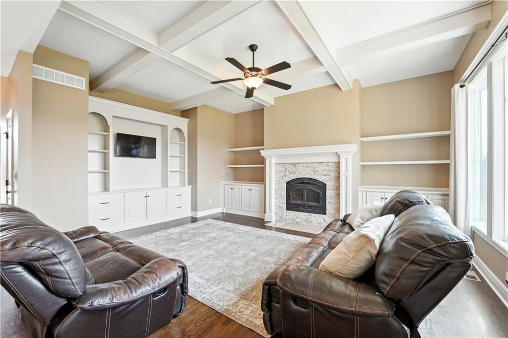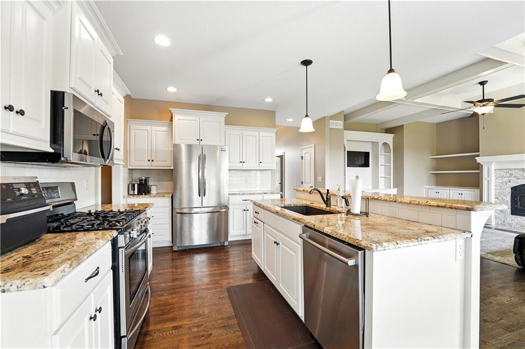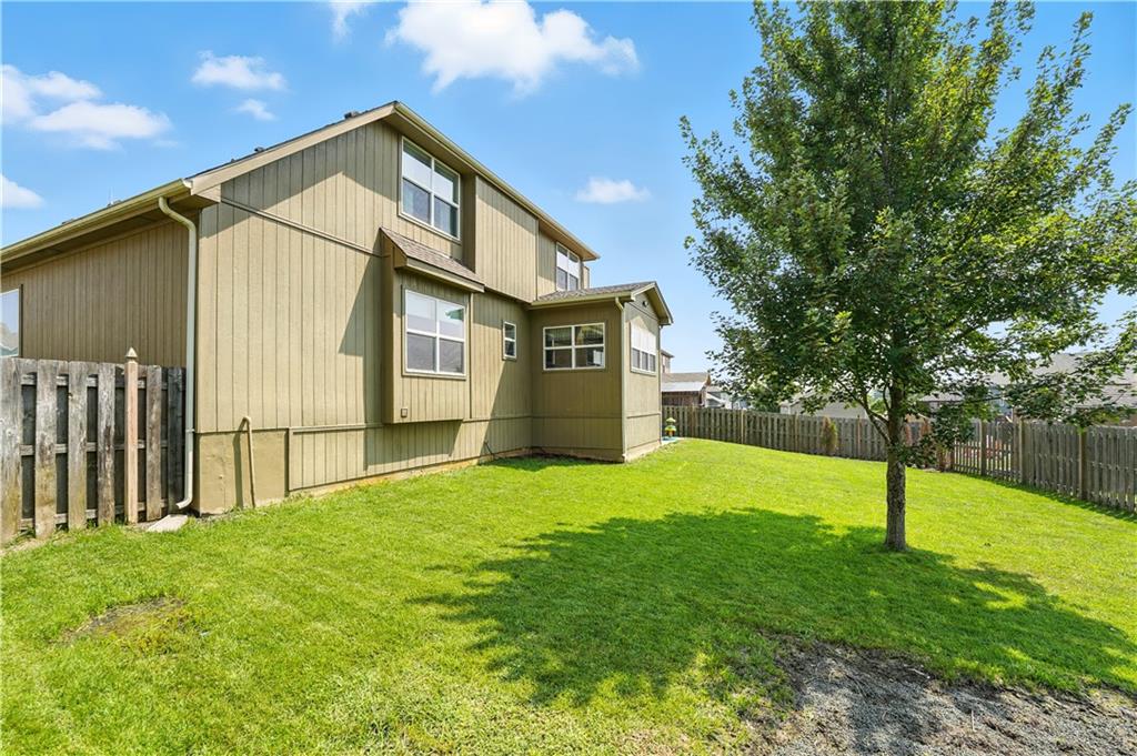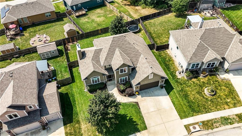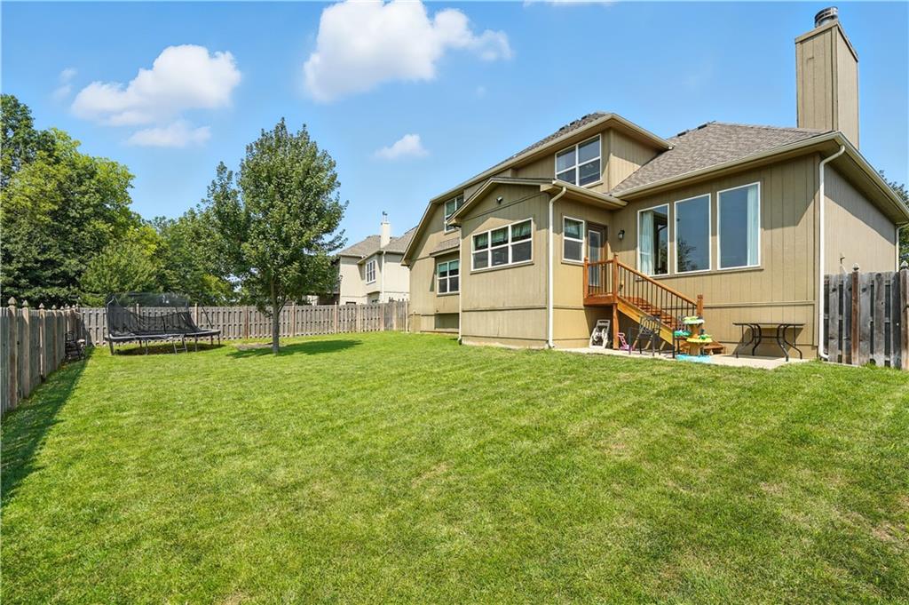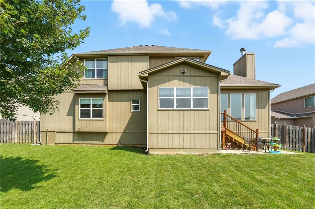 Nestled in the desirable Timber Creek Ranch subdivision and within the Fort Osage School District, this beautiful 5-bedroom, 3.5-bath 1.5-story is a stunner. From the moment you step inside, you’ll notice thoughtful details and inviting features designed for both daily living and entertaining. The main level showcases warm wood flooring, a private office, and a stunning great room highlighted by a cathedral-style beamed ceiling, custom built-ins, and a cozy wood-burning stove framed by a tiled mantle. The kitchen is both stylish and functional with painted cabinets, granite countertops, a walk-in pantry, and plenty of room for gathering around the table. The primary suite on the main floor is truly a retreat. It includes an attached laundry room for convenience, a spacious walk-in closet, and a spa-like bath featuring a custom double vanity, large jacuzzi tub, and separate shower. Upstairs, you’ll find three bedrooms—one with its own private bath and the other two sharing a Jack & Jill bath—each with walk-in closets for plenty of storage. A second laundry room on this level adds to the home’s thoughtful design. The interior has been freshly painted, giving the home a clean and move-in-ready feel. Downstairs, the unfinished basement provides endless possibilities with two egress windows and plumbing stubbed for a future bathroom. Step outside to enjoy the fenced backyard, complete with an irrigation system to keep your lawn green and lush. The 2-car garage offers convenience and additional storage. With its spacious layout, quality finishes, and location in Timber Creek Ranch, this home checks all the boxes.