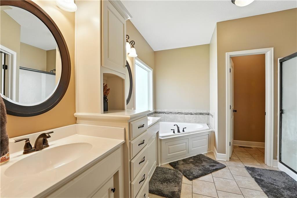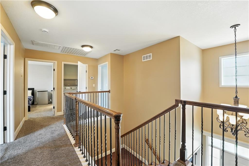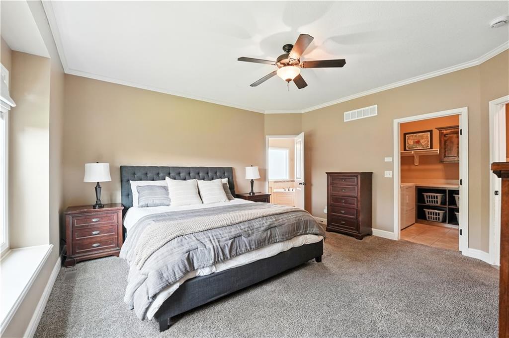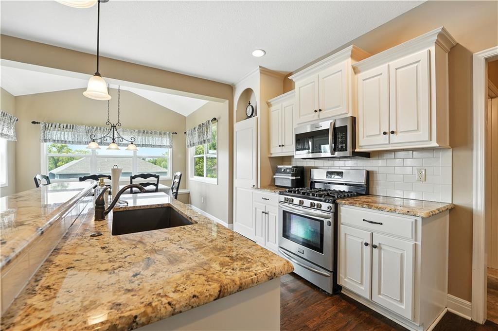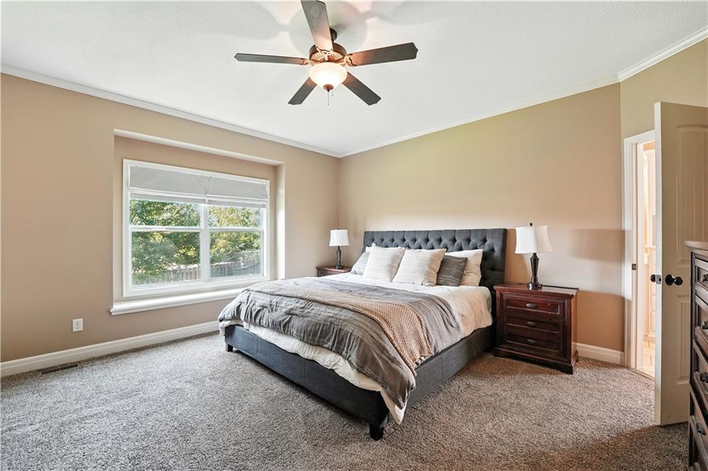Nestled in the desirable Timber Creek Ranch subdivision and within the Fort Osage School District, this beautiful 5-bedroom, 3.5-bath 1.5-story is a stunner. From the moment you step inside, you’ll notice thoughtful details and inviting features designed for both daily living and entertaining. The main level showcases warm wood flooring, a private office, and a stunning great room highlighted by a cathedral-style beamed ceiling, custom built-ins, and a cozy wood-burning stove framed by a tiled mantle. The kitchen is both stylish and functional with painted cabinets, granite countertops, a walk-in pantry, and plenty of room for gathering around the table. The primary suite on the main floor is truly a retreat. It includes an attached laundry room for convenience, a spacious walk-in closet, and a spa-like bath featuring a custom double vanity, large jacuzzi tub, and separate shower. Upstairs, you’ll find three bedrooms—one with its own private bath and the other two sharing a Jack & Jill bath—each with walk-in closets for plenty of storage. A second laundry room on this level adds to the home’s thoughtful design. The interior has been freshly painted, giving the home a clean and move-in-ready feel. Downstairs, the unfinished basement provides endless possibilities with two egress windows and plumbing stubbed for a future bathroom. Step outside to enjoy the fenced backyard, complete with an irrigation system to keep your lawn green and lush. The 2-car garage offers convenience and additional storage. With its spacious layout, quality finishes, and location in Timber Creek Ranch, this home checks all the boxes.
