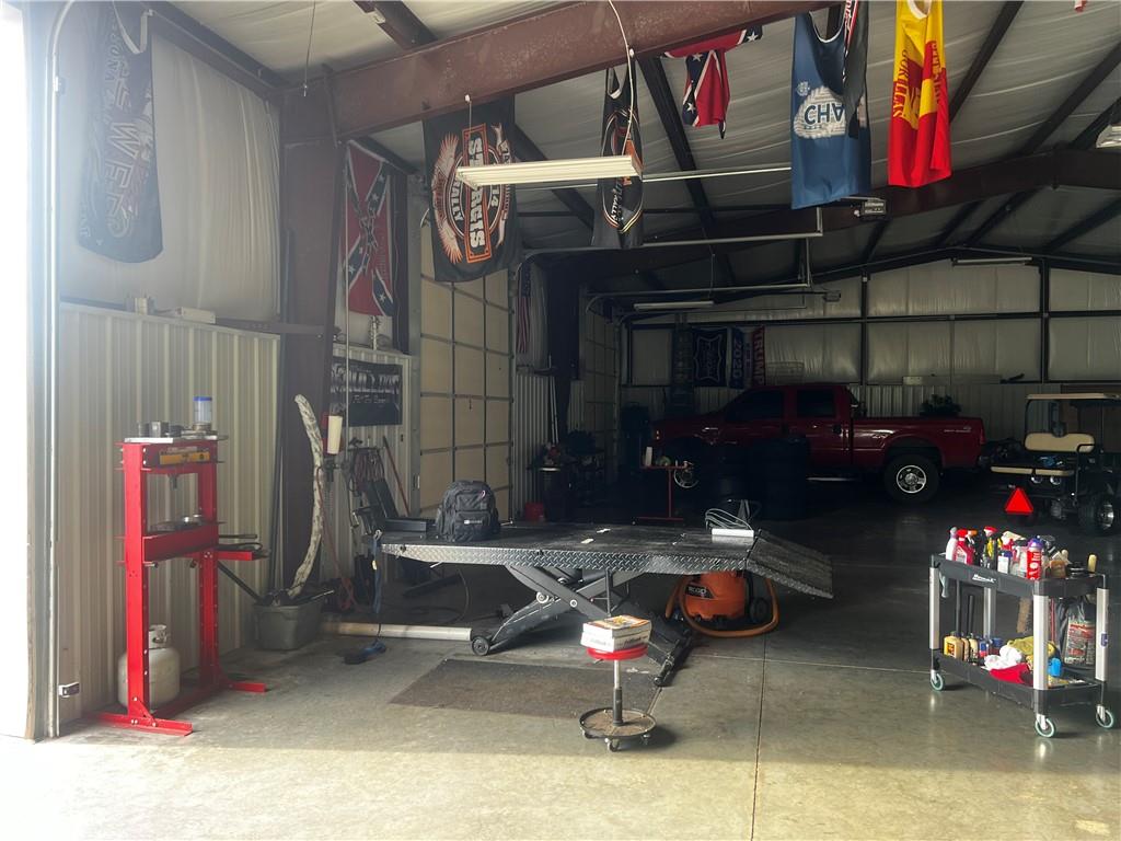 Extremely Nice 50 x 100 Building with 4 - 12' x 10' overhead doors and 1 - 14' x 12 overhead door, all have automatic door openers. All concrete floor with large concrete approaches all sitting on 8.9 acres. Railroad line on the East side of the property that spurs up into the industrial park, over 300' of Frontage on Rouse Street. Building is all insulated, has 2 gas overhead furnaces, plumbed for an indoor bathroom, has a kitchenet, air drops throughout the building for the air compressor. 10,000 lb. lift is negotiable An Additional 1300 sq ft building is in back for storage or trailers