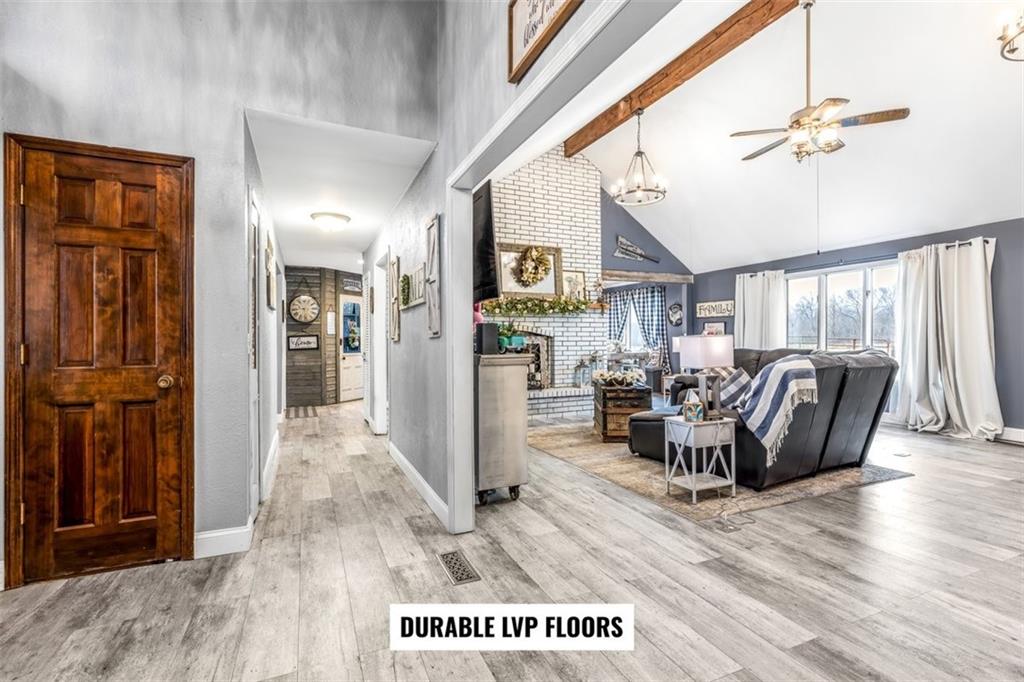 This recreational property features a pond, two miles of trails, woods, streams, and more wildlife than you can imagine. It also generates income if you grow crops or raise livestock. Most of all, it’s a home. Look out the windows, and you’ll fall in love with the views. Nearly gutted to the studs, the Sellers have spent the last eight years updating and decorating so you can enjoy horses and livestock, hunting deer or wild turkey, or exploring the mile of trails carved through the trees. The plumbing fixtures, including shower heads, faucets, sinks, and toilets, are newer. The kitchen and baths feature newer cabinets, sinks, and granite or marble countertops. Stainless Steel Appliances are under two years old. ALL light fixtures and most switches and plugs are newer. The oversized mudroom is large enough for a loveseat, chair, and an old-fashioned tub sink. The great room boasts vaulted ceilings and a stunning floor-to-ceiling brick fireplace. The primary bath has beautiful tile floors, a newer shower, and a whirlpool tub. The spacious basement rec room is perfect for pool, game nights, and drinks at the wet bar. The basement also features a non-conforming bedroom and full bath. The massive patio easily accommodates 75+ guests and is stubbed for an outdoor kitchen. The livestock barn has an automatic watering area. A breathtaking quarter-mile trail, LOVERS LANE, feels like a movie set. The property is fenced and cross-fenced for livestock and horses. The septic, furnace, A/C, and water heater are 1–3 years old. The 1.87-acre pond is 27' deep and stocked with bass, crappie, bluegill, and catfish.