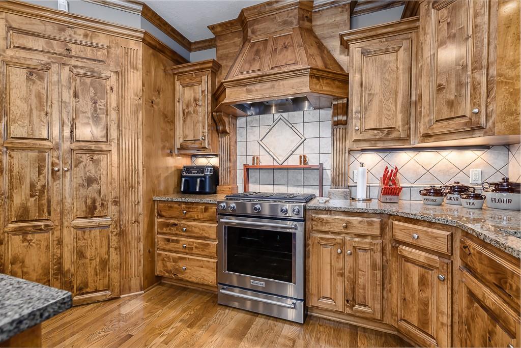 LUXURY LIVING AWAITS ON THIS SECLUDED 5-ACRE RETREAT! This stunning 5-bedroom, 4.5-bath home blends elegance and comfort with a chef’s kitchen featuring granite counters, island, walk-in pantry, and cozy hearth room. The main level also offers a formal dining room, private office, and a spacious living room with fireplace. Upstairs, the master suite is a true getaway with a spa-like bath—double vanities, separate tub and shower—and a huge walk-in closet. A second bedroom suite with its own bath and walk-in closet plus two more bedrooms with a jack-and-jill bath complete the upper level. The finished walkout basement is perfect for entertaining with a family room, wet bar, rec room, and plenty of storage. Step outside and enjoy peaceful country views from the covered patio with its custom fireplace, or relax on the lower-level patio. An attached 3-car garage plus a detached 36x40 garage/shop provide plenty of space for vehicles, hobbies, or toys. Located on paved roads with a private, picturesque setting, this must-see property has it all!