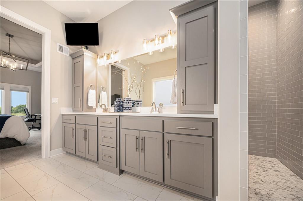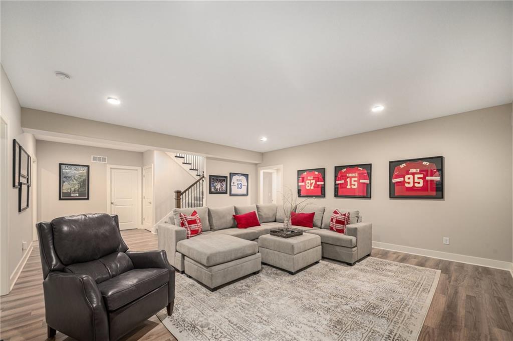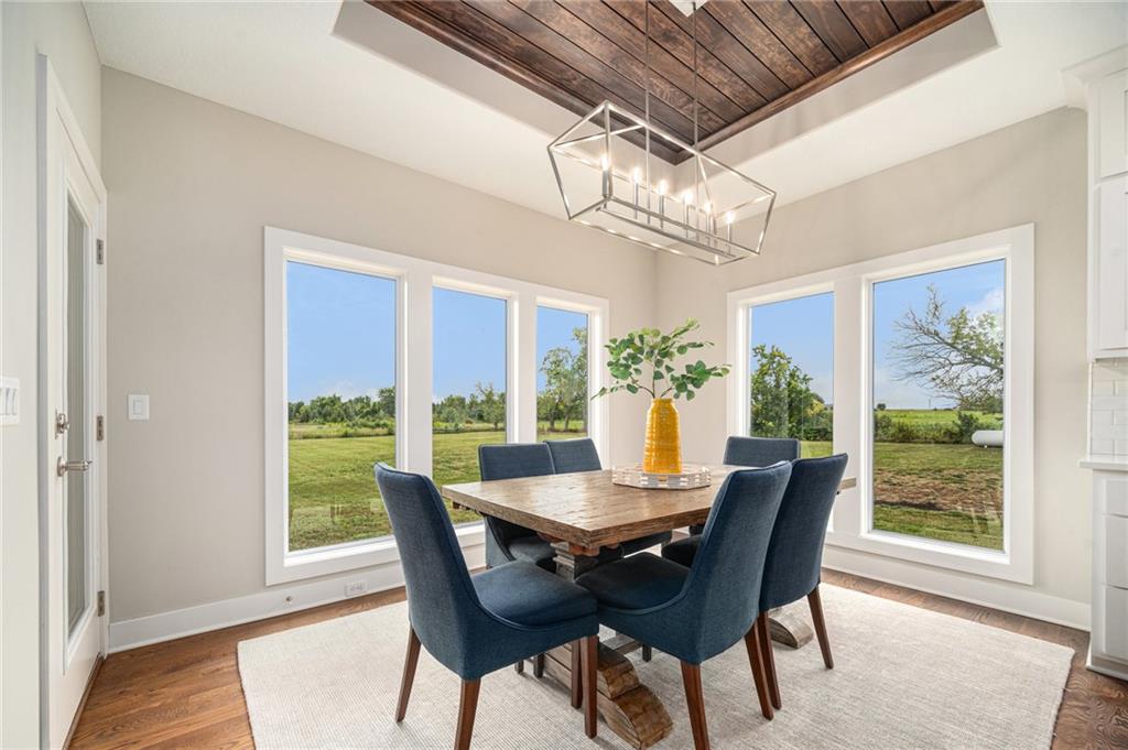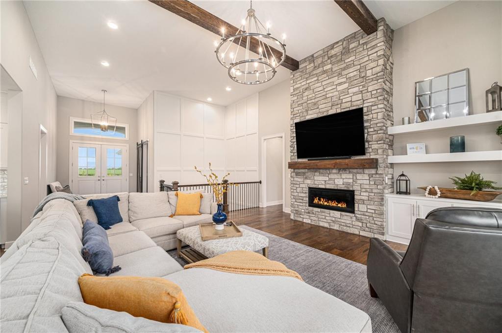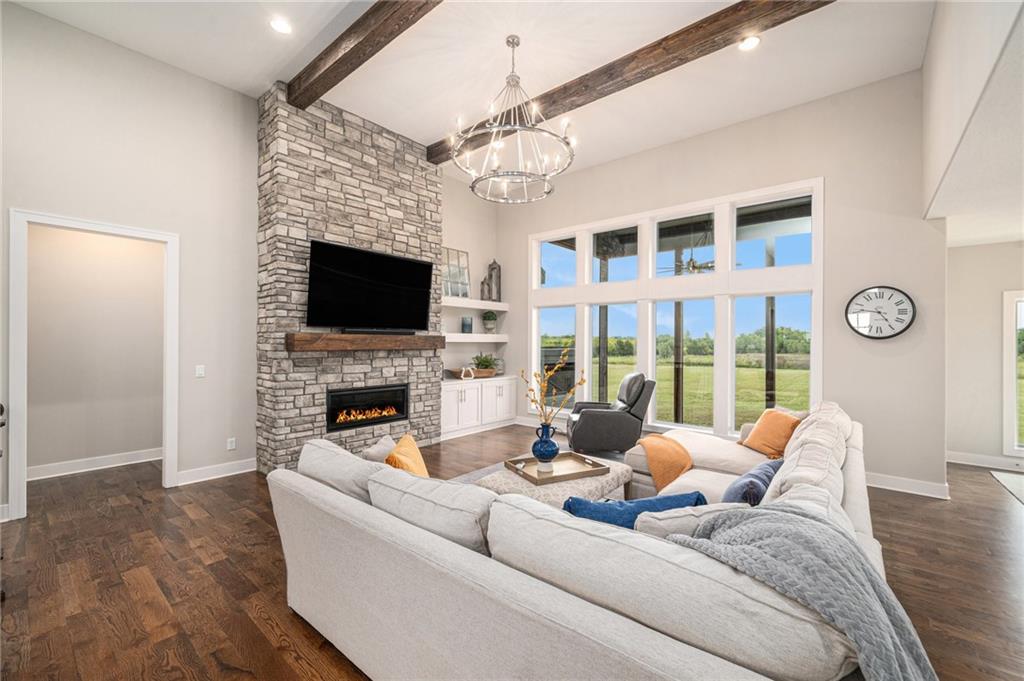 LIKE NEW Reverse 1.5 Story home on 5 acres! This custom home has a stunning double door entry with a large open layout. The great room has a stone fireplace, built-ins, 14-foot ceilings, beautiful wood beams, and large windows overlooking the backyard and patio. All white kitchen with stainless steel appliances, gas range, huge center island, built-in beverage fridge, and a walk-in pantry. Main floor primary suite with a spa-like bath and walk-in closet, plus a main floor laundry room and 2nd bedroom or office. Finished lower level with a family room, exercise room, three bedrooms, and two full bathrooms. Screened-in patio overlooking the property's private acreage. Great location close to all three Eudora schools. Convenient access to K-10. Use Google Maps for driving directions.