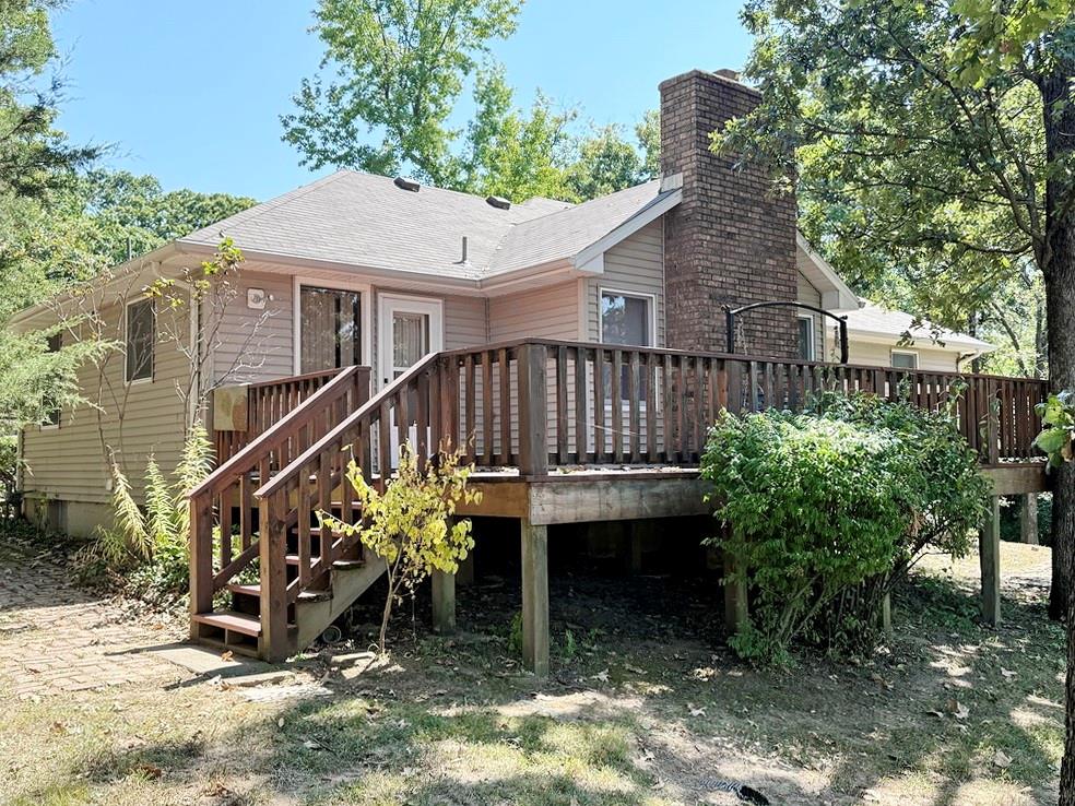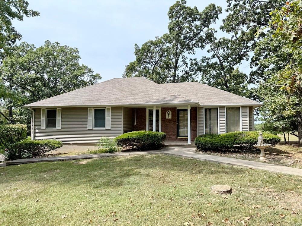 Golf Course Living in El Dorado Springs, MO. Tucked away at the end of a quiet dead-end street, this home offers the rare combination of city convenience and country serenity. Backing directly to the golf course with the Hole 9 tee box just beyond your property line, this setting on 1.75 acres is hard to beat. Mature oak trees frame the home, providing shade, privacy, and a welcoming sense of peace. The residence features 2,056 sq. ft. of finished living space with 1,458 sq. ft. on the main level and 598 sq. ft. in the finished basement plus a 2-car basement garage. The main floor includes a comfortable living area with a fireplace and a spacious kitchen showcasing oak cabinets with walkout access to the back deck—perfect for watching sunsets over the fairway—plus 3 bedrooms and 2 full bathrooms, with one bathroom ensuite to the master bedroom. The basement extends the living space with a second living room and fireplace, a potential 4th bedroom, and a half bathroom that is framed and plumbed for another shower but is unfinished, allowing you to customize to your needs. Additional highlights include a paved driveway, golf course views, privacy, and frequent wildlife. This property is ideal for those who appreciate quiet surroundings, golf course living, and the convenience of being inside El Dorado Springs city limits. Make the call to schedule your showing on one of the most premier locations in El Dorado Springs.