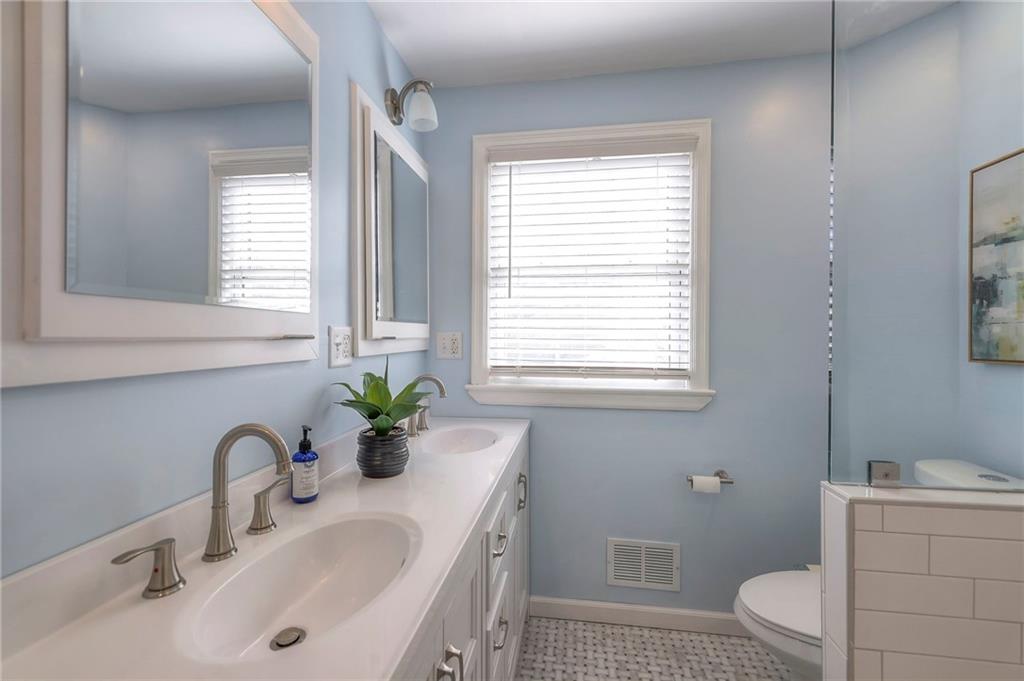 BROOKSIDE! Seller is the son and grandson of custom homebuilders. An engineer by trade, his passion is building and remodeling. He has done so much to this house in the 12 years he has lived here. A few of the things: remodeled the kitchen with stainless steel appliances, expanded and remodeled the bathroom with gorgeous tile, and the showstopper is a two-story deck with access from both floors. Enjoy your morning coffee or a cocktail in the evening overlooking the beautifully landscaped yard. Wood floors run throughout the house. Recent indoor painting. The roof was replaced 6 years ago, along with new seamless gutters and downspouts. There is a 2-car garage with a lean-to in the back. A 50-amp breaker is in the garage in case you need to charge your Tesla! OK, in 20 years of real estate, I never knew you could do this. The owner added 3 dampers and 2 boosters in order to equalize the air flow between the vents so you can control the temperature on all three floors. In other words, you don't have to die of the heat in the summer because heat rises. you can control that in this 2-story!