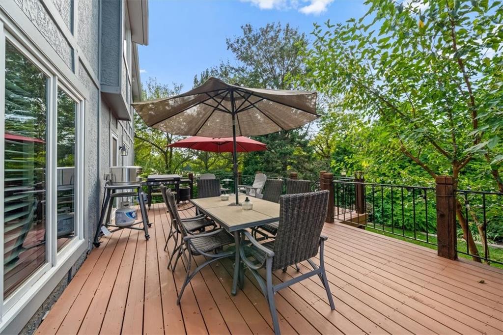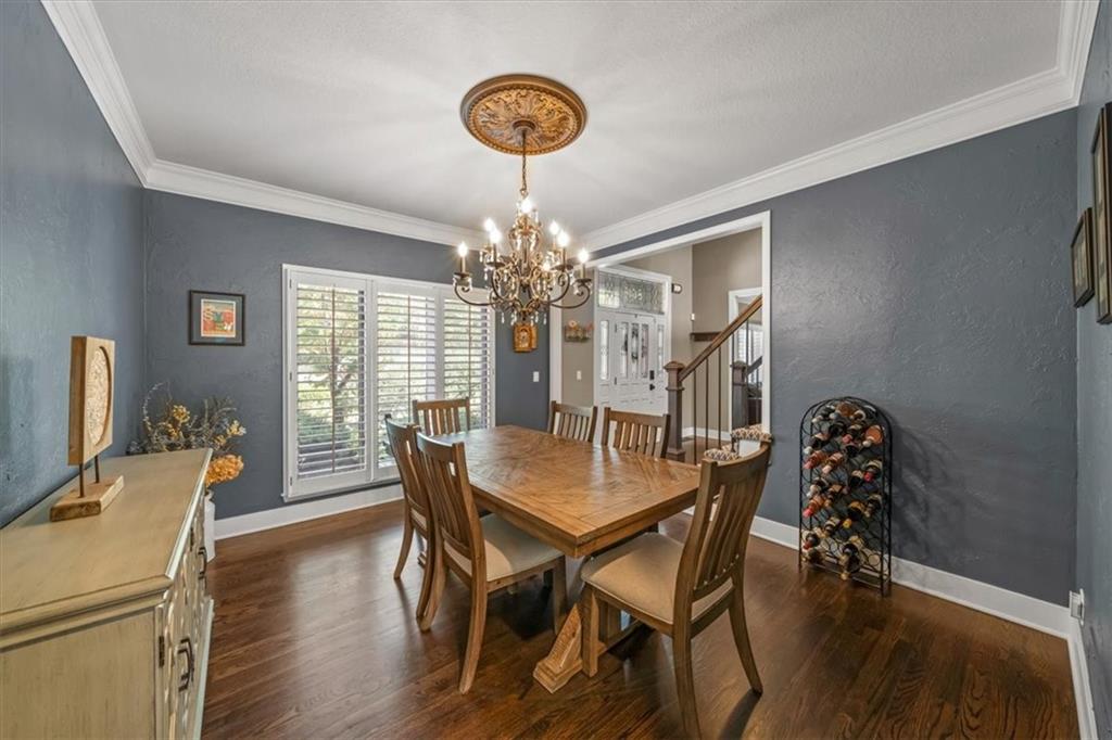 Nestled in the sought after Nottingham Forest South, in the heart of Overland Park, this charming 2-story offers the perfect blend of traditional charm and functionality. The spacious floor plan with formal and informal living areas and timeless architectural details provide the perfect canvas for your personal style. Whether you're relaxing with family or entertaining guests, the open layout accommodates every need. The main level showcases gleaming hardwood floors, plantation shutters, formal living and dining rooms, an inviting family room with double sided fireplace, laundry room and tons of natural light. The gourmet kitchen is a chef's dream, featuring an island with seating, double ovens, pantry and lots of cabinet space. Upstairs, the master suite feels like a private retreat with a spa-like bath boasting dual vanities, a soaking tub, a walk-in shower, and a generous walk-in closet. Additional bedrooms are spacious and versatile. Finished basement provides plenty of extra living space with a large rec room, wet bar, 5th bedroom and full bath. Step outside to your fenced backyard oasis on a nearly 1/2 acre lot with professional landscaping, large deck, stamped patio and hot tub! Checkout all the additional upgrades in supplements! Prime location with quick access to award-winning Blue Valley schools, shops, dining, parks, walking trails, and highways. Also one of the best neighborhood pools in the area! Don't miss your chance to make this your dream home!