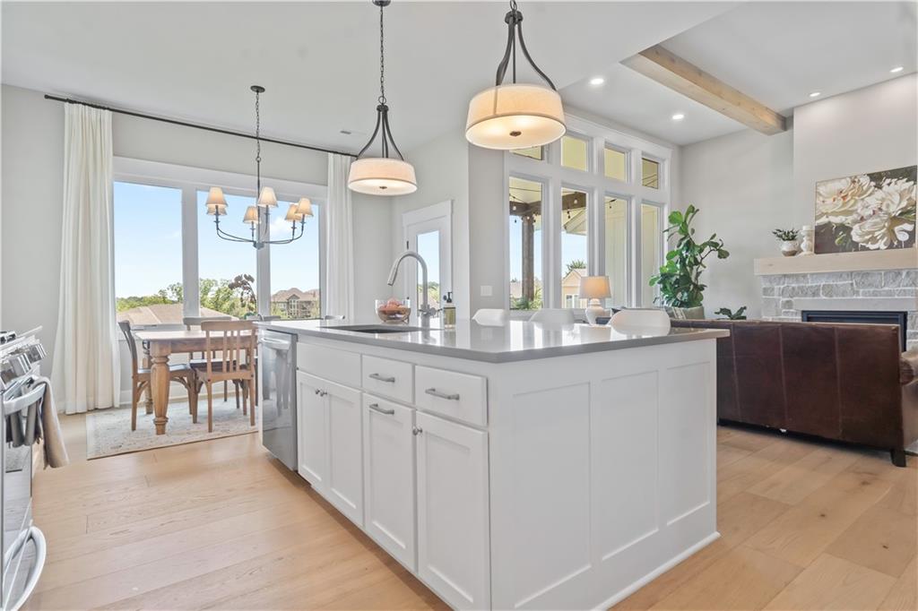 Your 2023 custom-built dream home has it all—5+ bedrooms, an office (or two), a game room, and a flex space that bends to your lifestyle as a formal dining, sitting room or office on main level. The heart of the home beats on the main level, with the laundry tucked neatly and quietly in the basement—freeing up space for an open, airy layout you’ll actually live in. The kitchen steals the show with LG appliances, quartz island, and gas cooktop, flowing into a vaulted great room with wood beams, stone fireplace, and all the natural light. The primary suite is a true retreat with soaking tub, quartz vanities, walk-in shower, and walk-in closet. Head downstairs for the fun stuff: a bright walkout rec room, wet bar, game room, covered patio, two more bedrooms and a full bath and a bonus flex space with laundry closet and storage access. All this in Bristol Highlands—near golf, trails, lakes, Lenexa City Center, and highway access. High style, low stress, and priced smart! This home will impress you!!
