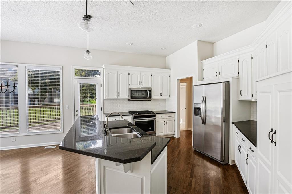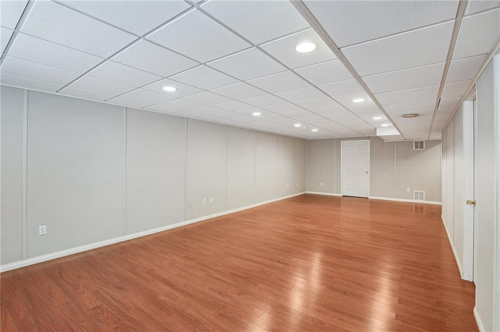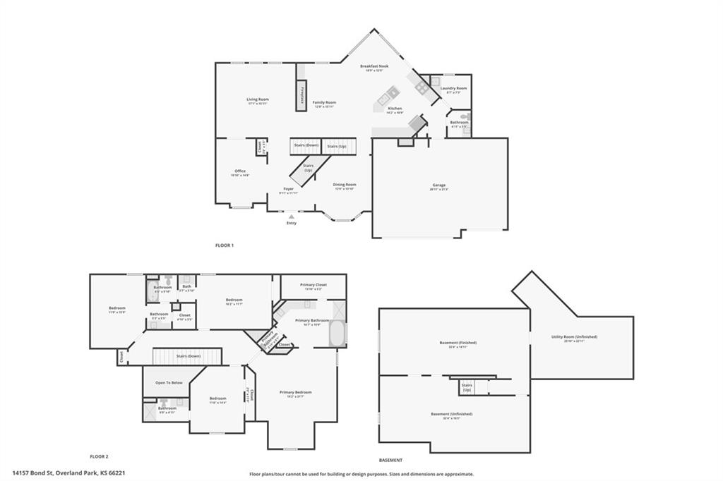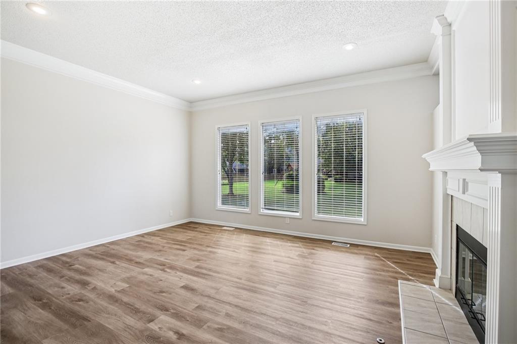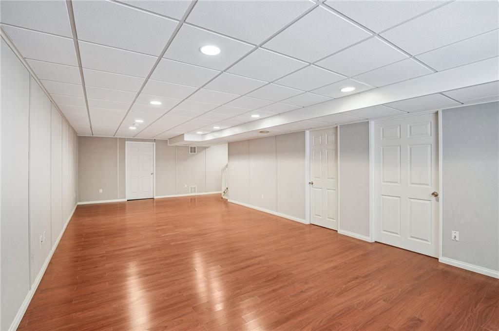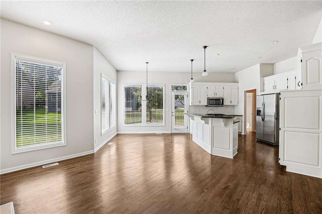Welcome to this spacious 2-story home in the desirable Kensington at St. Andrews community. With over 3,100 square feet above grade and a finished lower level, this property offers 4 bedrooms, 3.1 baths, and a 3-car garage. The main floor includes an open living area with a see-through fireplace connecting the great room and hearth room. A formal dining space and large kitchen with granite countertops, custom cabinetry, island, and stainless steel appliances provide both function and flexibility. Hardwood flooring carries throughout much of the main level, and the home has fresh interior paint and new carpet. Upstairs, the primary suite features a spacious sitting area and two large walk-in closets, plus a private bath with double vanity, jetted tub, and separate shower. Secondary bedrooms include one with a private ensuite and two that share a hall bath. Laundry is conveniently located on the bedroom level. The finished basement provides a recreation room and half bath, extending your living and entertaining options. Outdoors, enjoy a covered deck, patio, and a landscaped, treed lot with in-ground sprinklers. Community amenities include two swimming pools, trails, and a playground, all within the Blue Valley School District. Conveniently located near shopping, dining, and highway access, this home combines generous space with a sought-after neighborhood setting.