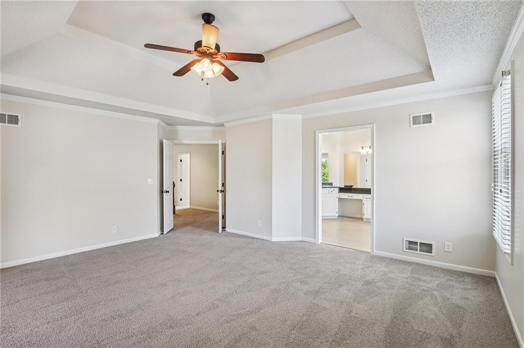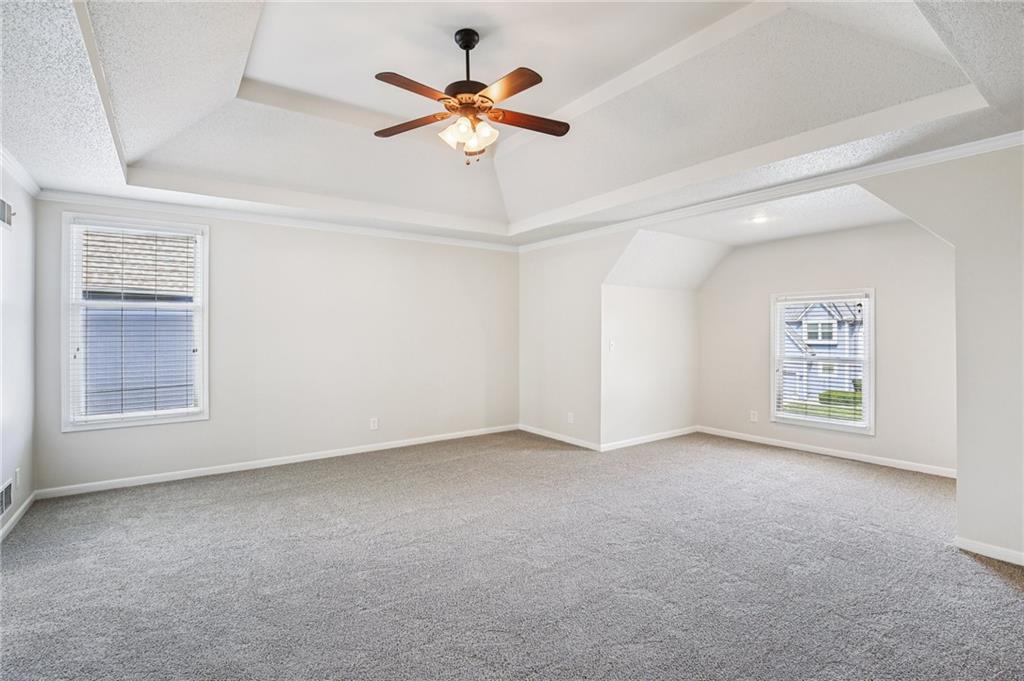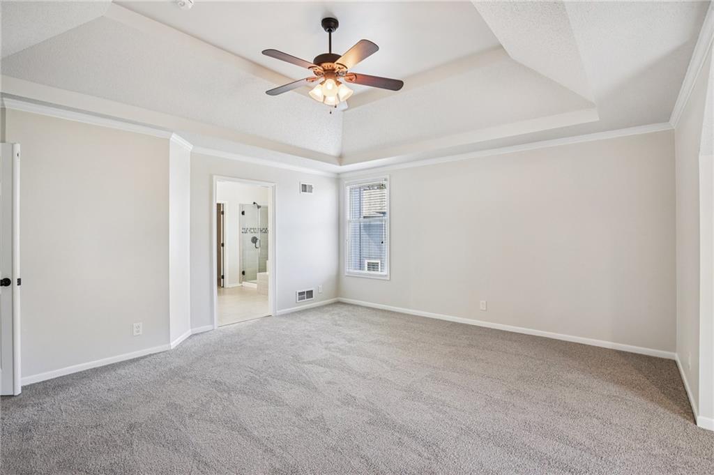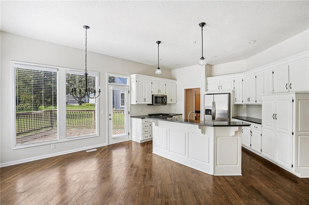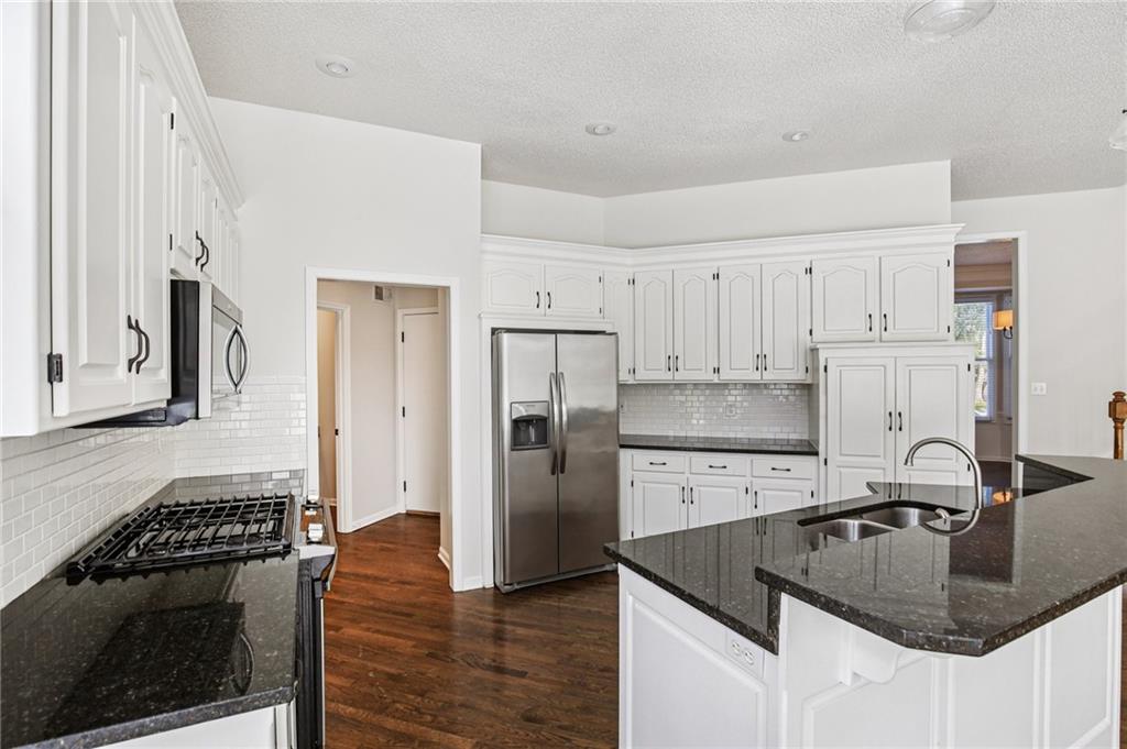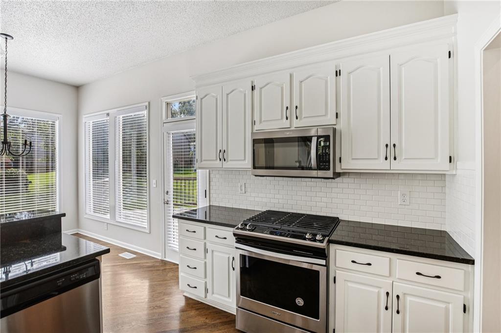 Welcome to this spacious 2-story home in the desirable Kensington at St. Andrews community. With over 3,100 square feet above grade and a finished lower level, this property offers 4 bedrooms, 3.1 baths, and a 3-car garage. The main floor includes an open living area with a see-through fireplace connecting the great room and hearth room. A formal dining space and large kitchen with granite countertops, custom cabinetry, island, and stainless steel appliances provide both function and flexibility. Hardwood flooring carries throughout much of the main level, and the home has fresh interior paint and new carpet. Upstairs, the primary suite features a spacious sitting area and two large walk-in closets, plus a private bath with double vanity, jetted tub, and separate shower. Secondary bedrooms include one with a private ensuite and two that share a hall bath. Laundry is conveniently located on the bedroom level. The finished basement provides a recreation room and half bath, extending your living and entertaining options. Outdoors, enjoy a covered deck, patio, and a landscaped, treed lot with in-ground sprinklers. Community amenities include two swimming pools, trails, and a playground, all within the Blue Valley School District. Conveniently located near shopping, dining, and highway access, this home combines generous space with a sought-after neighborhood setting.