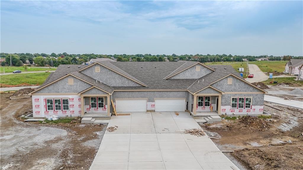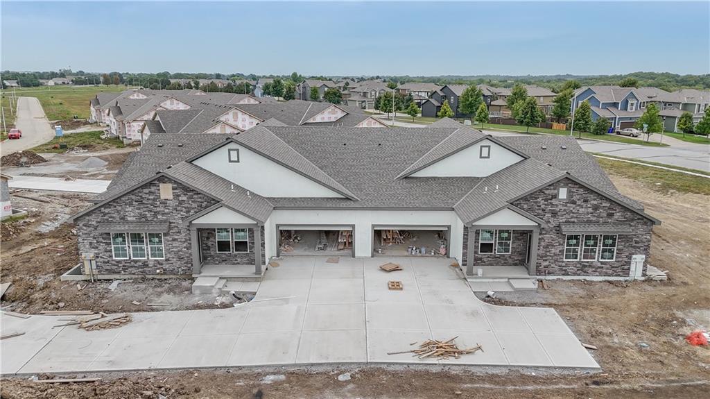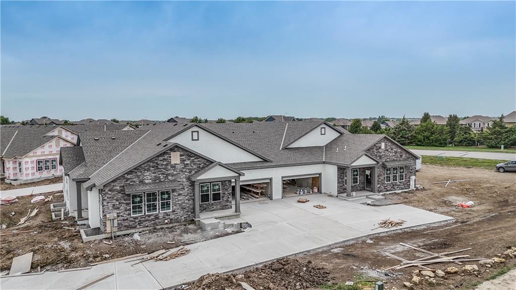 Welcome to the Maintenance Provided Ranch Villas. This residence will be move-in ready November 2025 and showcases an open floor plan with 10-foot ceilings and refined finishes throughout. Maintenance-free living includes lawn care, snow removal, and all exterior upkeep, including roof replacement. The main level is thoughtfully designed with a spacious living room featuring a stunning fireplace and abundant natural light. The gourmet kitchen is appointed with stainless steel appliances, custom cabinetry, under-cabinet lighting, and a generous walk-in pantry. Additional conveniences on the main floor include a mudroom, built-in desk area and laundry room. Hardwood flooring enhances the entry, living room, kitchen, mudroom, office, and dining areas. The primary suite offers a walk-in closet, raised vanity tops, and a spa-inspired bathroom with beautifully tiled shower walls and floors. The lower level expands the living space with a large recreation room complete with a dry bar, two additional bedrooms, and a full bathroom—bringing the total to four bedrooms.