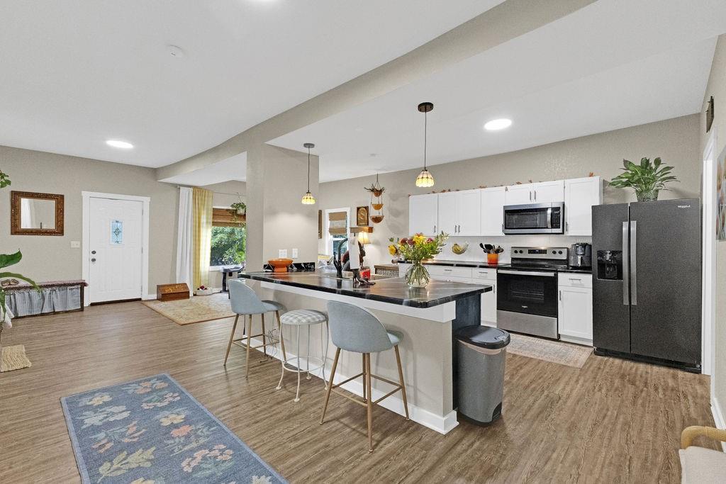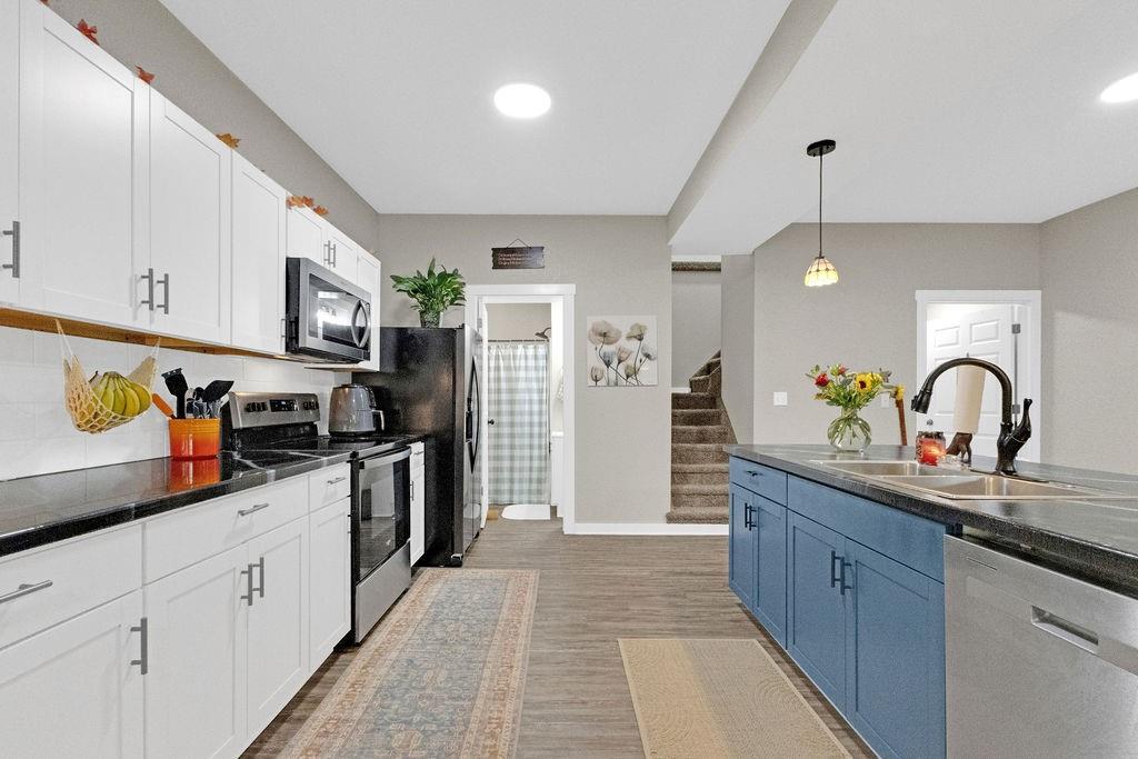 Best of both: desirous location by Corby Pond with completely redone home boasting open main floor, convenient laundry, kitchen complete with appliances, and private setting for fall time gatherings. Upper level offers 3 bedrooms and full bathroom. Perfectly located near Parkway trails, dog park, and soon-to-be pickleball courts. Off-street parking through alley.