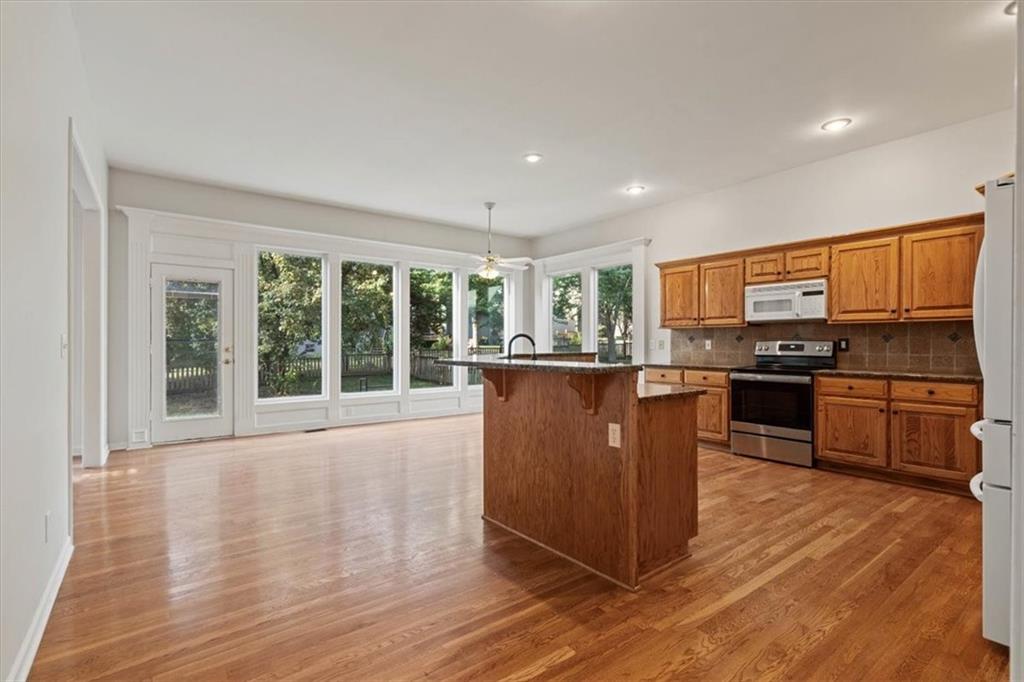 Spacious 2-Story in Overland Park with Olathe Schools! This 4 bed, 3.5 bath home with over 2,500 sq ft has the space and updates you’ve been waiting for. Step inside to soaring ceilings, hardwood floors, and a wall of windows that flood the living areas with natural light. The main level features a formal dining room, a large living room with fireplace, and a kitchen with granite counters, stainless appliances, and a sunny breakfast area overlooking the fenced backyard. Upstairs, the primary suite is a true retreat with two walk-in closets and a spa-like bath featuring dual vanities, a jetted tub, and walk-in shower. The remaining three bedrooms all feature new hardwoods — two share a convenient Jack-and-Jill bath with double vanities and full shower, while the third enjoys its own private en-suite. Laundry is also located on the bedroom level for maximum convenience. Add in a brand-new garage door, fenced yard, and prime location near shopping, dining, parks, and Olathe Schools — this home checks every single box! Come see it today!