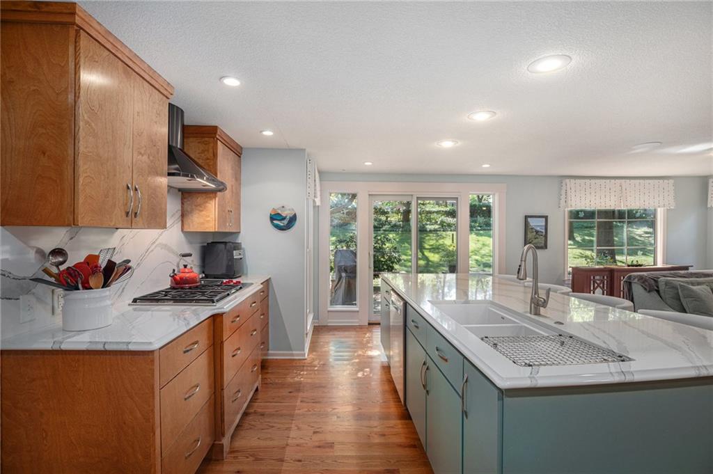 Welcome to your future Prairie Village home—move right in and enjoy all this vibrant community has to offer. Just minutes from the Shops of Prairie Village and Shawnee Mission East High School, this beautifully updated Cape Cod sits on nearly a half-acre treed lot in a peaceful cul-de-sac. Offering over 1,900 finished sq. ft. above ground plus an unfinished basement, it blends timeless charm with modern comfort. The formal living room features hardwood floors, crown molding, and a cozy fireplace that opens to a formal dining room and bright sunroom—ideal for an office, gym, or playroom. Remodeled kitchen and baths showcase quality finishes and thoughtful design, while the open great room centers around a striking quartz-faced gas fireplace, custom built-ins, and an integrated media system. The kitchen impresses with quartz countertops and backsplash, premium appliances, custom cabinetry, and a spacious island for gathering. A main-level bedroom and spa-inspired bath offer flexible living options, while upstairs, the primary bedroom includes hardwood floors and a walk-in closet. The third bedroom features a walk-in closet, built-in dresser, and side room for added versatility. The remodeled upstairs bath echoes the main level’s modern style with a walk-in tile shower and rain head. Recent updates bring peace of mind—newer HVAC, roof, gutter guards, whole-house water filtration, sump pump with battery backup, washer/dryer, interior paint, foundation work with a transferable lifetime warranty, and more! Outdoors, entertain or unwind on the large deck with built-in seating. Combining comfort, craftsmanship, and an exceptional location, this home makes everyday living easy and inviting.