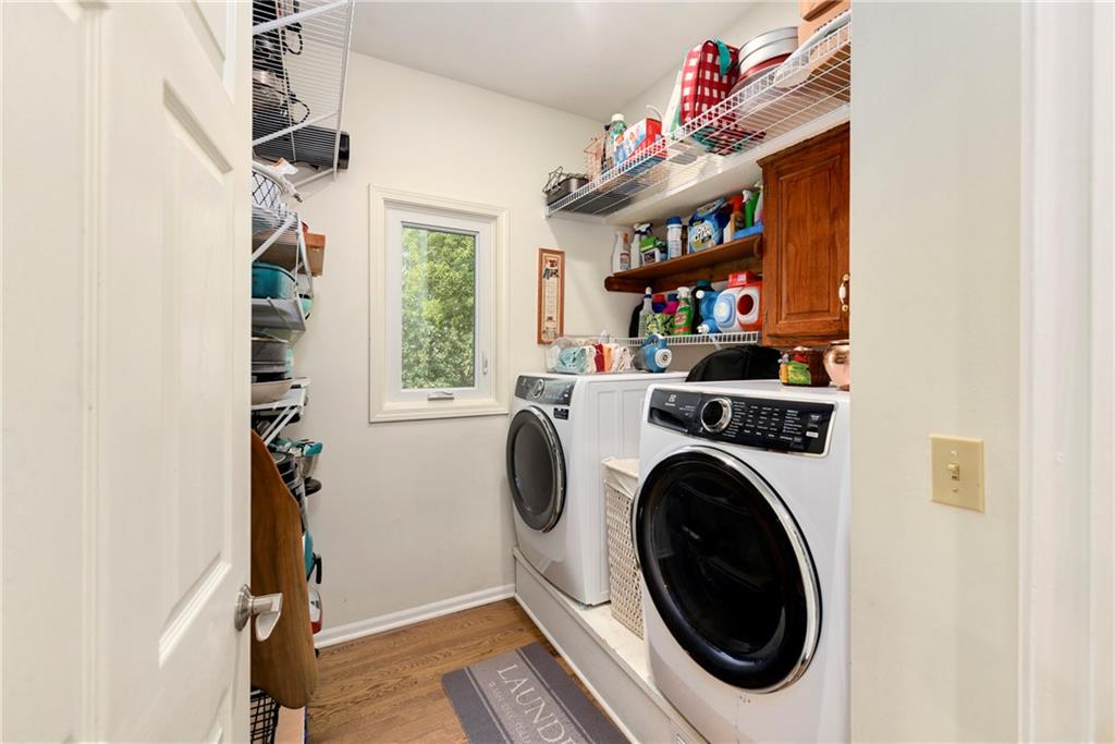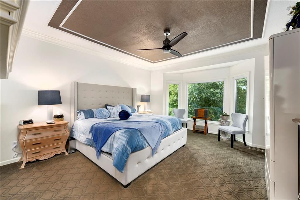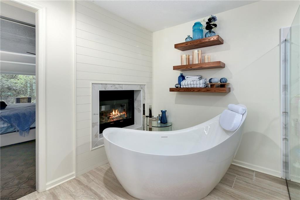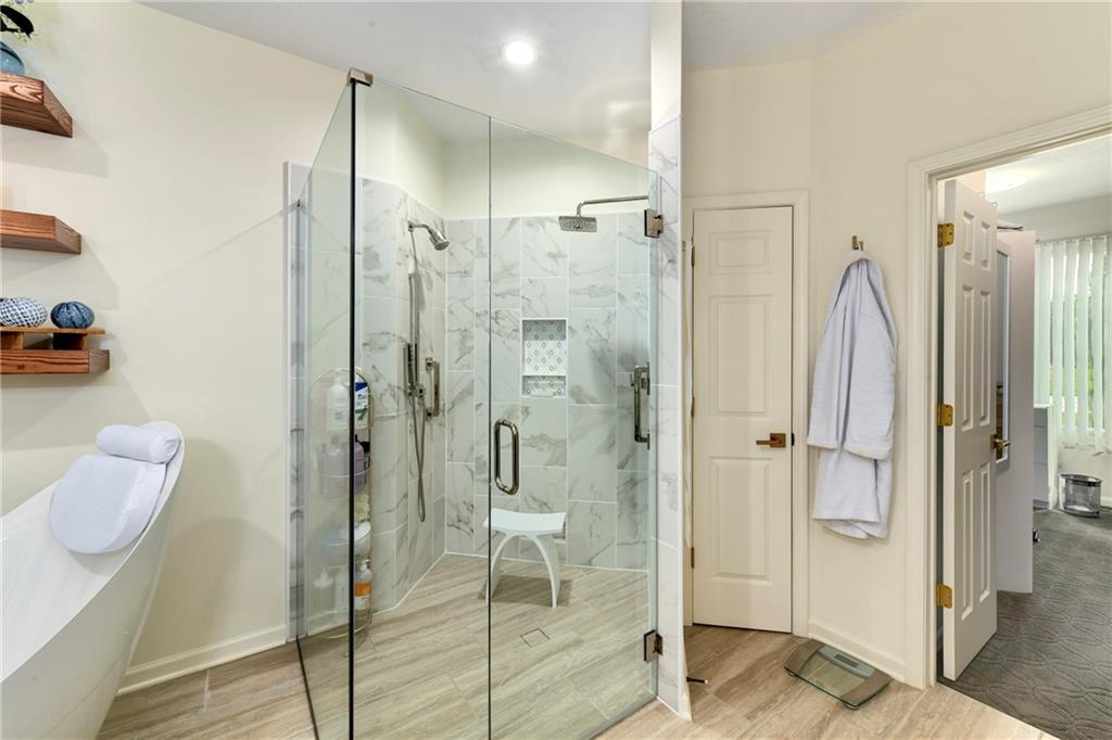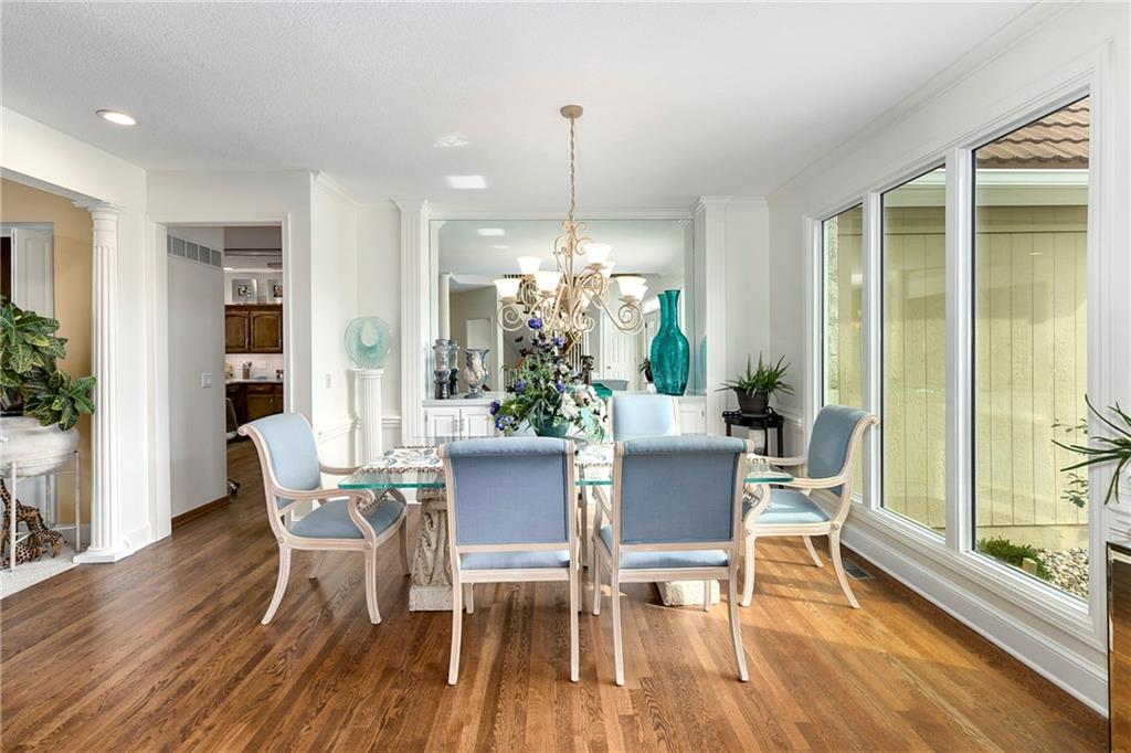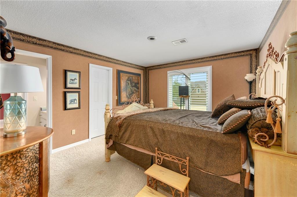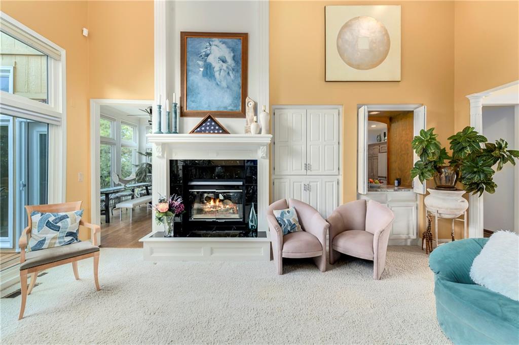 Highly desirable Arbores neighborhood in the Blue Springs school district. Neighborhood includes two lakes (with fishing), and beautiful streets for strolling. Yard professionally landscaped within the last year. Main level includes a two story foyer, Great Room, formal dining, large eat in kitchen with hearth room, laundry, powder room, access to upper deck and primary suite. Formal dining room and Great Room are open plan with partial opening to kitchen. Hearth room, included within kitchen space, features a see thru fireplace to Great Room. Kitchen/Hearth room/Great room have wall to wall windows with great view of trees. Large primary bedroom has tray ceiling, wall to wall windows and recently remolded master bath with heated tile floors, custom designed dual vanity and large zero entry shower and soaker tub in front of the see thru fireplace between master bedroom and bathroom. Upstairs are 3 large bedrooms with walk in closets, one bedroom has private bath with a Jack/Jill bathroom between the other 2 bedrooms. Upstairs also includes a large cedar closet for off-season clothes storage. Upstairs has a separate HVAC system. Extra large lower level with walkout to lower deck. Lower level is open plan and includes a full bathroom, kitchenette area with sink/cooktop/refrigerator/cabinets, large gas fireplace with mounted tv and two person office area. Plenty of room for entertaining- large gatherings in front of TV, a pool/game table and dining table. Lower level also has 3 large storage closets. Unique and private backyard with decorative fencing, and ramp to lower area ideal for kids playset or gardeners paradise. Three car garage with epoxy floors, shelving and work bench.
