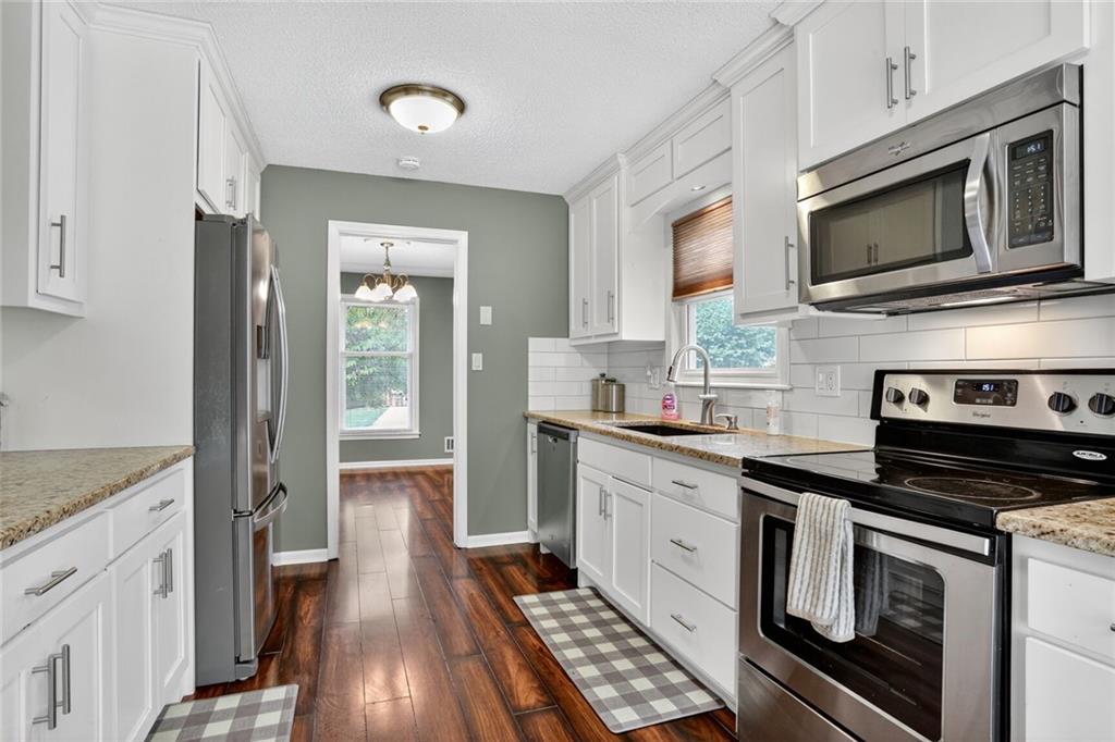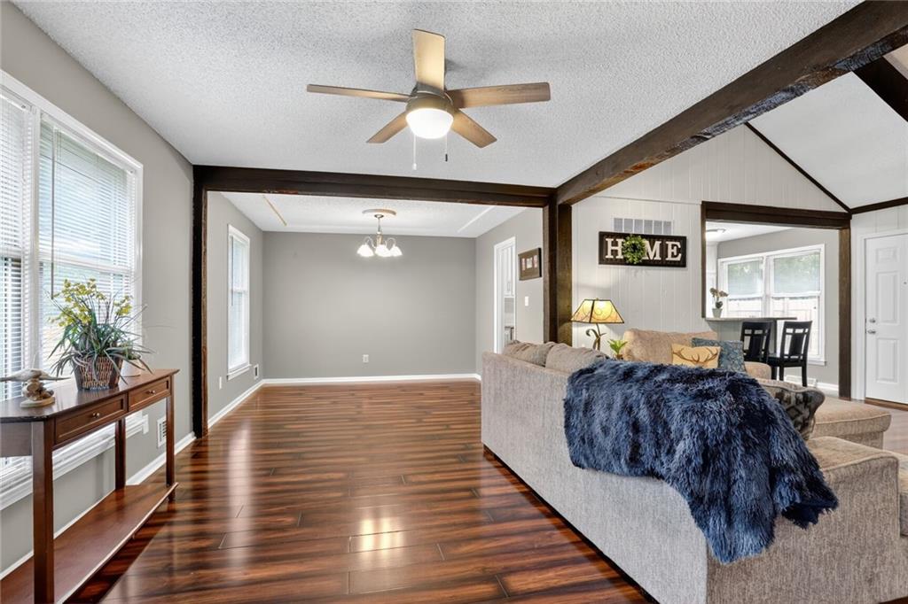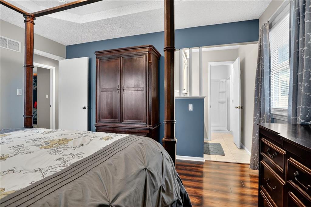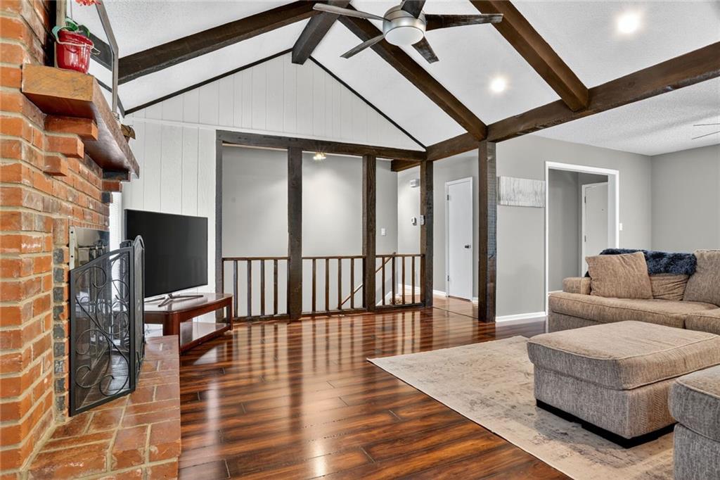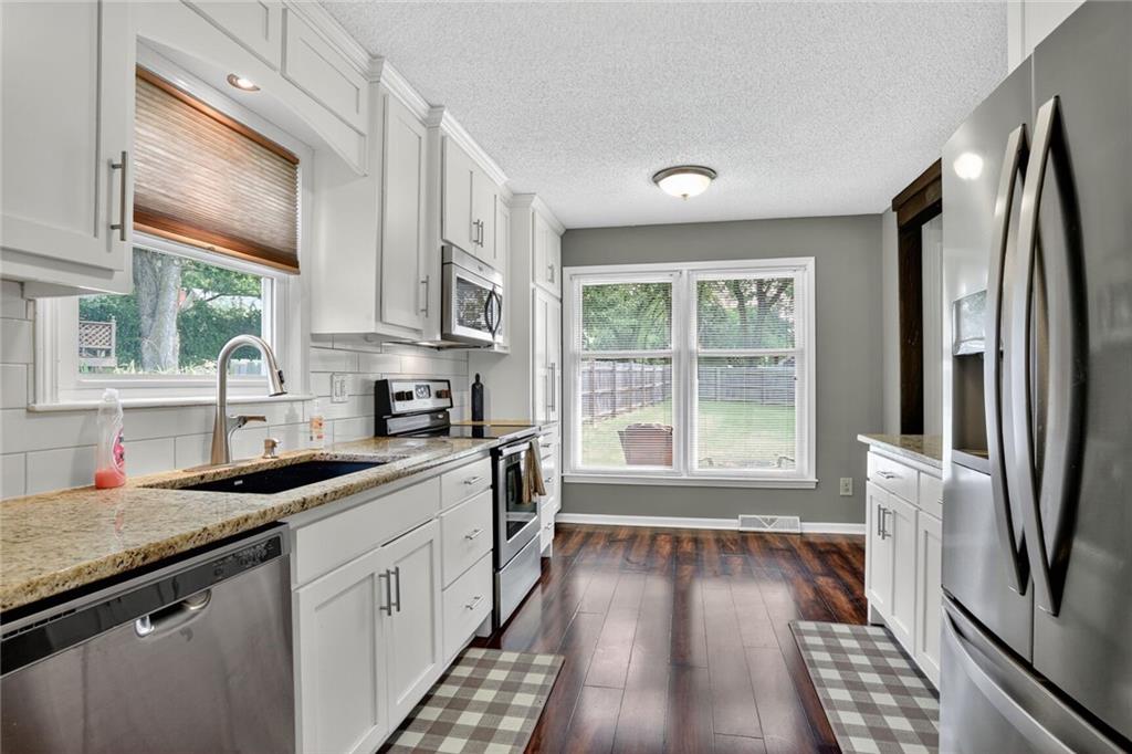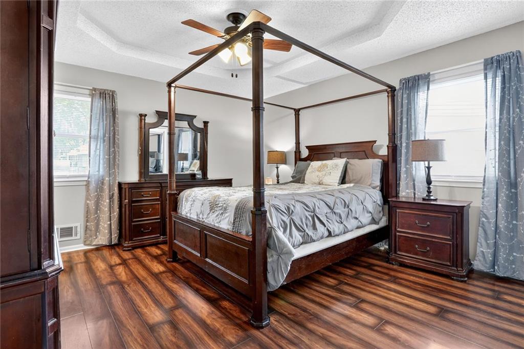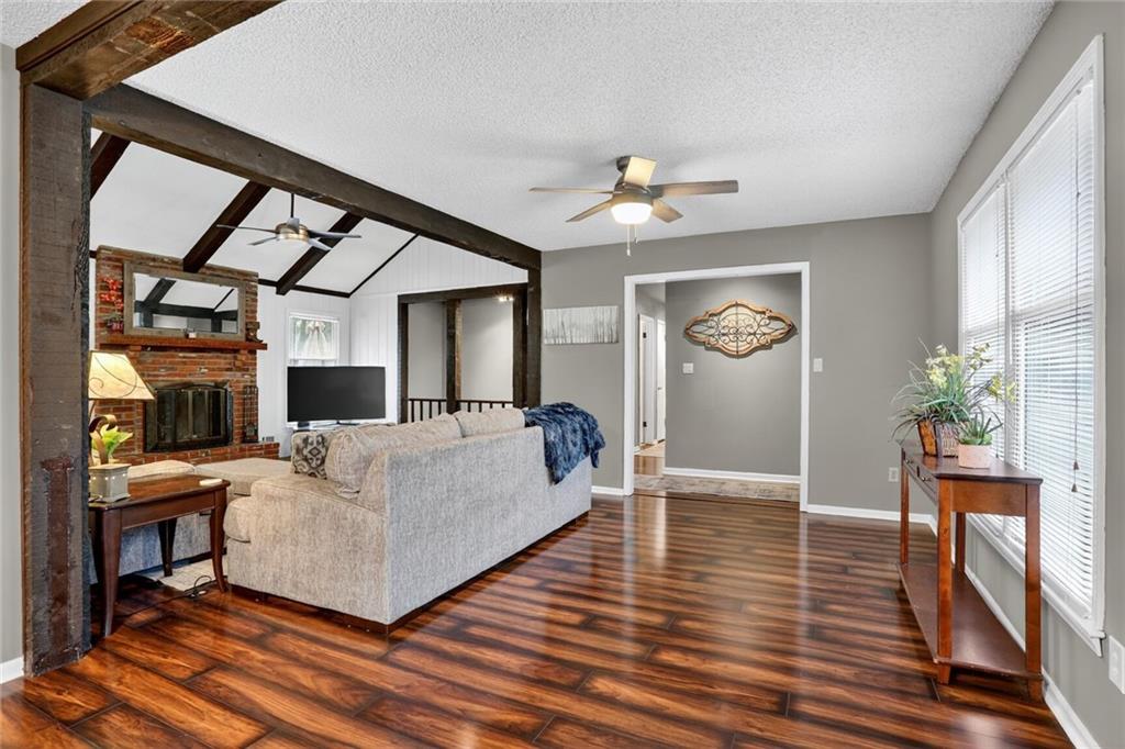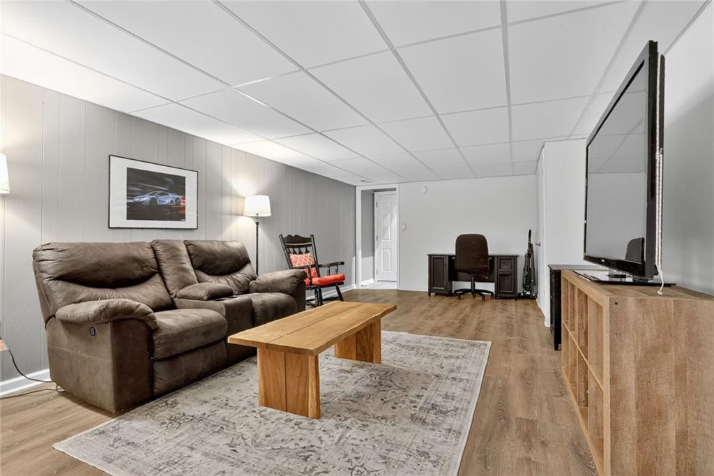 WELCOME HOME! The second you enter your new home, you'll love the vaulted ceilings, the open floor plan and the beautifully updated kitchen. Walk out of the kitchen onto the new composite deck that spans the length of the home. Enjoy the large, fully fenced backyard for all the cookouts and activities! Master bedroom and secondary rooms are all great sizes, with double closets. Downstairs is a large Recreation room (or 4th non-conforming bedroom) and a newly remodeled 3rd full bathroom (shower only). Extra deep garage with lots of space for a workshop or additional storage. Located in a quiet, friendly neighborhood but still close to all the major roads and all the amenities. Community has so many perks too - swimming pool, playground and your own LAKE!