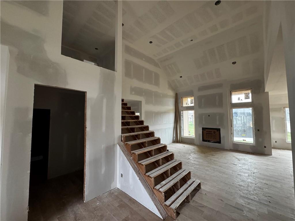 Discover this fresh 1.5 story design from Sterling Homes! The main level offers the perfect balance of function and comfort, featuring the primary suite plus a second bedroom and full bath—ideal for guests, an office, or anyone needing main-floor living. Wide plank white oak hardwood floors flow seamlessly throughout the main living spaces, while the kitchen shines with cabinets to the ceiling, a large island, and designer finishes. Soaring ceilings and open spaces create a light, airy feel and an easy flow throughout. Upstairs, you’ll find three additional bedrooms, including a convenient Jack-and-Jill setup and one with its own private bath. A versatile loft completes the second level—perfect for a playroom, media space, or a cozy retreat. Step outside to enjoy a covered deck with composite flooring and sleek metal railings—low maintenance with high style. The unfinished basement offers incredible potential, already stubbed for a bar, full bath, and two additional bedrooms if desired. At drywall as of 10/2/2025. Estimated completion early December 2025! Still time to pick colors & fixtures!!