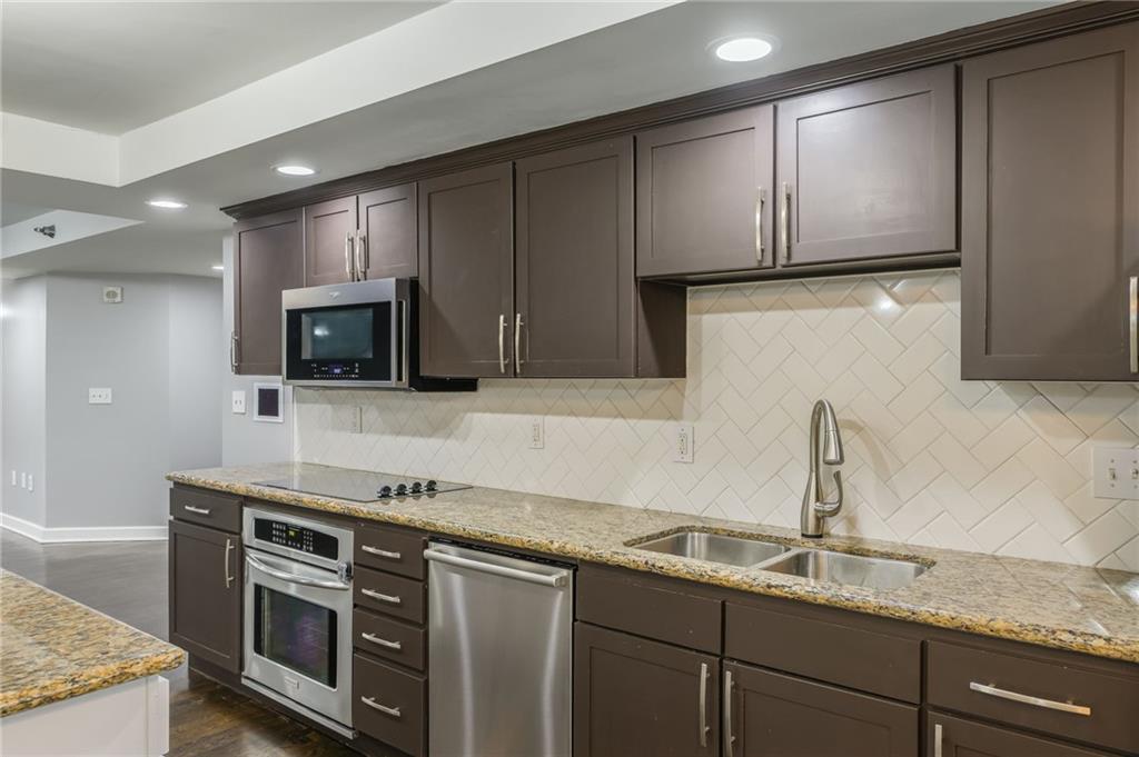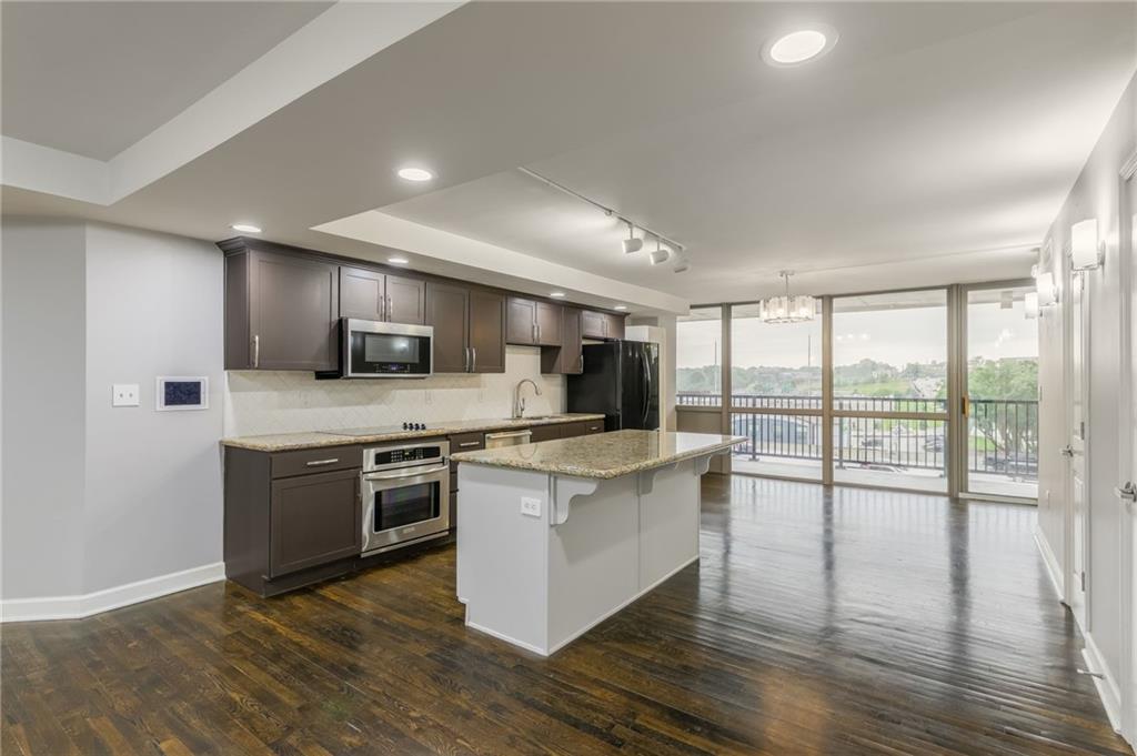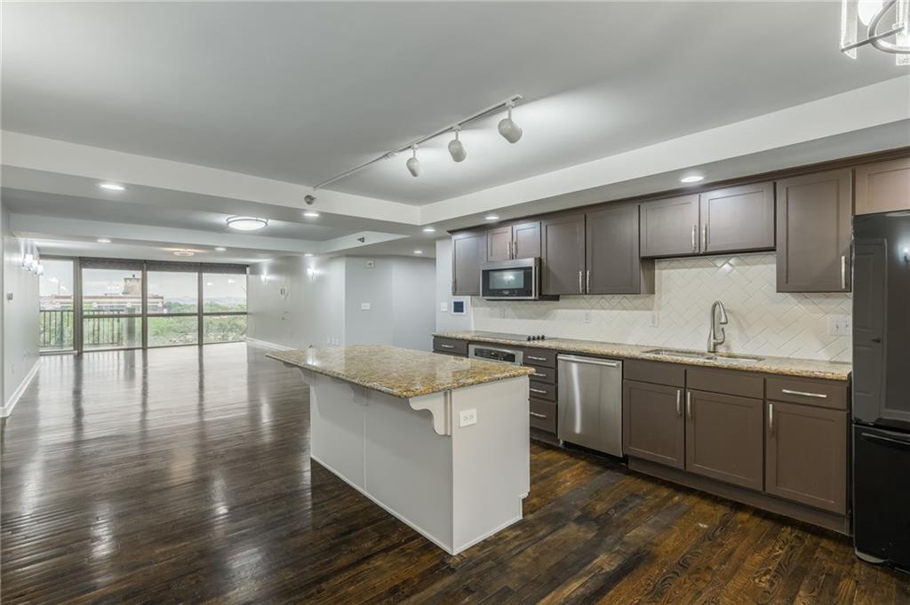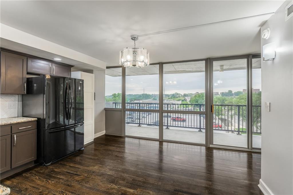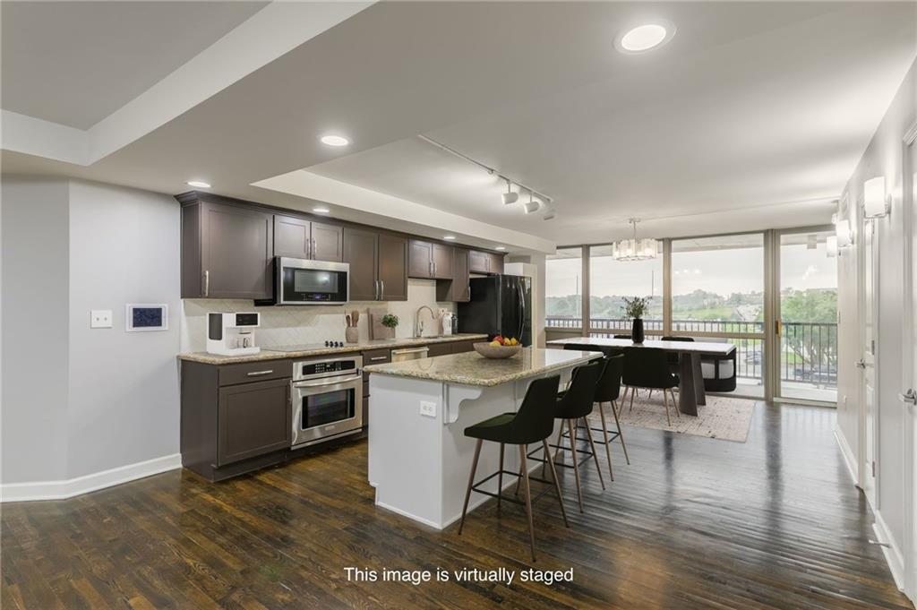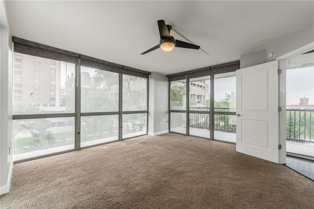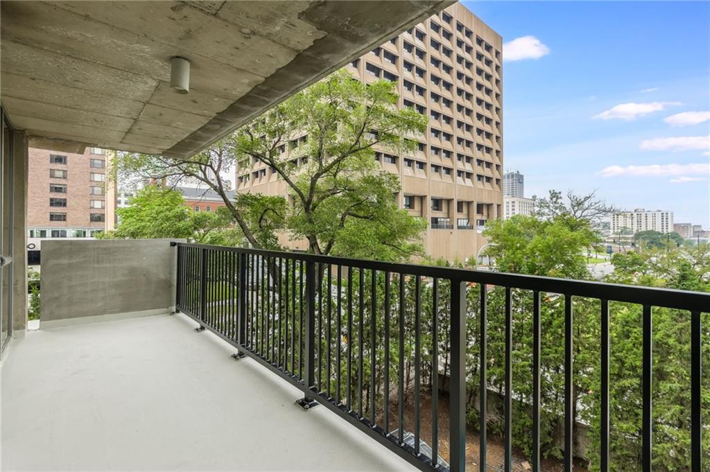 Step into luxury in downtown Kansas City! Located on the 6th floor, this incredible 2 bedroom, 2.5 bathroom end unit offers stunning views from 2 balconies, and floor to ceiling windows on 3 sides! Both balconies have been completely refinished and provide fantastic views of the city! The open concept living area includes beautifully refinished hardwood floors, and is flooded with natural light. The kitchen features granite counter tops and a large center island that is perfect for hosting family and friends. Enjoy the completely remodeled master bathroom complete with a custom built-in for additional storage. The nook just off the living room is a perfect space for a home office, sitting room, or could even be turned into a third bedroom. Additional upgrades include custom blackout curtains, and custom built in cabinets in the master bedroom and office space for more storage! This unit also includes a basement storage unit, and 2 spaces in the gated parking garage to keep your things secure and out of the weather. The amenities offered at The View are some of the best in the city! The building provides 24/7 security as well as two pools (one indoor and one outdoor), hot tub, gym, sauna, tennis courts, putting green, basketball, and bike storage. You can also enjoy the theater room and rec room that includes billiards, a full kitchen, and an outdoor patio making it the perfect place to host all of your events. Conveniently located within walking distance to the river market, and the KC Streetcar! With so much of the city at your fingertips, you won’t want to miss all that this place has to offer!