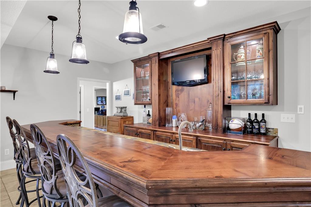 If you're looking for a home with great indoor & outdoor entertaining spaces, look no further. This spacious home has numerous places to host large or small gatherings inside with fireplaces in living & family rooms, and office/parlor/den on both the upper & main levels as well as a large bar/game room in the lower garden level. Other rooms include 5 bedrooms, all with walk-in closets(4 with en suites) and a dedicated exercise room and that's just the inside! Outside on the Lanai is another gas fireplace, wet bar, bar refrigerator, built-in grill and a radiant heater that will keep you warm even in the cold days of winter. The waterfall walks you down from the upper level to the lower patio which includes another fireplace that is wood burning. The kitchen is equipped with a large pantry, a gas cooktop, 2 ovens, a cappuccino maker, a vegetable steamer and a warming drawer. There are two laundry options, one upstairs and the other in the master on the main level. The lower-level bath has a steam shower for after those hard workouts. Take the time to see this wonderful property with extensive landscaping on a 1/2 acre lot that gives you privacy you can appreciate in the highly desirable Highlands Creek neighborhood, you will not be disappointed!