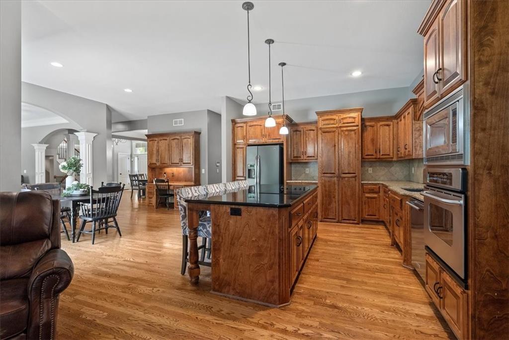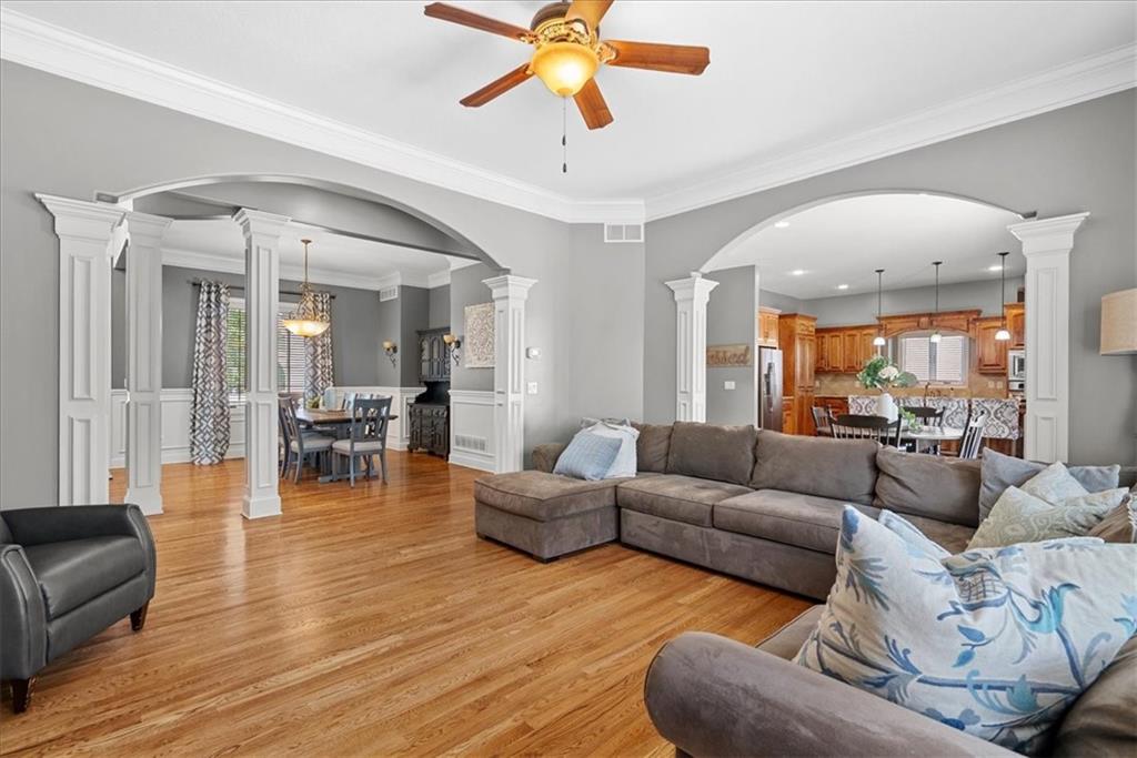 Welcome to Deer Valley, where charm and convenience come together on a quiet street in the award-winning Blue Valley School District. This 4-bedroom, 3.5-bath two-story home is designed with the details that make everyday living feel extraordinary. The spacious primary suite is a true retreat, complete with a custom walk-in closet that feels more like a private boutique than a storage space—beautifully designed and larger than most you will find in the neighborhood. The kitchen continues to impress with a huge hidden walk-in pantry, offering both functionality and a touch of surprise as it keeps everything neatly tucked away while maintaining the open flow of the living space. For those who value a well-crafted garage, this one is unmatched. With its epoxy-sealed floor and extensive built-in storage, it is the perfect place for car enthusiasts, hobbyists, or anyone who appreciates an organized and polished workspace. Step outside to discover a peaceful, quiet backyard—an ideal setting for morning coffee, evening gatherings, or simply unwinding after a long day. Recent updates, including fresh exterior paint in 2025, a two-year-old AC unit, and refreshed landscaping, add curb appeal and peace of mind. With schools, parks, shopping, and dining just minutes away, this home delivers not just a place to live, but a lifestyle to love.