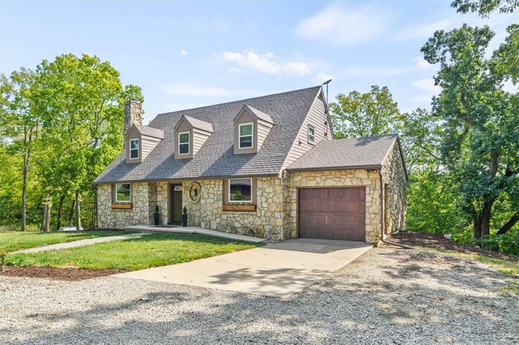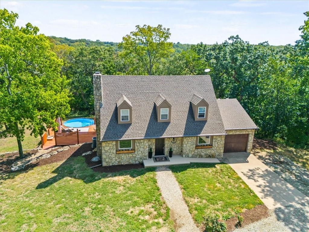 Experience the best of country living in this beautifully upgraded home. As you drive down the private lane, you'll find a welcoming stone exterior, a circle driveway, and a two-car garage or shop with a new roof. Inside, the main level features luxury vinyl plank flooring and large windows that fill the space with natural light. The cozy fireplace, set in granite and flanked by mounted speakers, creates a warm atmosphere. The kitchen comes with a full KitchenAid appliance package, including an induction stove, custom cabinetry, soft-close doors and drawers, granite countertops, a Delta touch faucet, under-cabinet lighting, and a refrigerator that stays. The primary suite on the main floor offers a custom shower, double sink vanity, and walk-in closet. The laundry room, also on the main floor, includes a second fridge. Upstairs, there are two spacious bedrooms and a full bathroom with a tub and shower combo. The walk-out basement is perfect for entertaining, with built-in cabinets, counter space, and a prep sink, plus plenty of room for a home gym or pool table. There's also ample unfinished storage and a safe room under the garage. Outside, enjoy a large 12x35 back deck that leads to a second custom deck, 24x25, built around the above-ground pool. The space is ready for a TV, so you can watch fall football under the stars. Additional features include in-ceiling speakers, six deck speakers, new doors and windows on the main floor, new garage doors, gutters, and a tankless hot water heater. Every detail has been thoughtfully considered. This home sits on over four acres. Schedule your visit soon—this opportunity won't last.