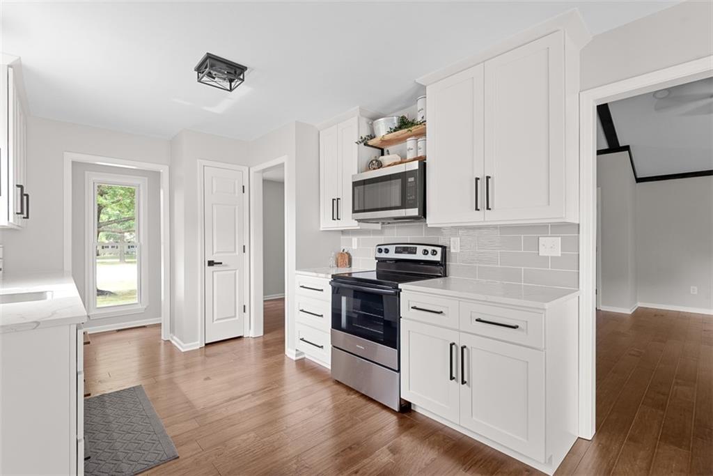 Beautiful Home on Over an Acre. Completely updated and upgraded throughout providing modern comfort and style. New items include roof, hardwood flooring throughout, new paint inside and out. Updated bathrooms with new tiled showers, new vanities and fixtures. New kitchen remodel with upgraded quartz countertops, new cabinets to the ceiling, sink, faucet, hardware, lighting, stove and microwave. New lighting and ceiling fans throughout the home. Hague Watermax Whole Home Water Softener and Filtration System with remaining warranty. New doors inside and out including garage doors with new openers. New landscaping and tree trimming. Water heater in 2024. So many new and upgraded items. Storage shed in backyard for extra storage. Home sits on a corner lot offering plenty of outdoor space for gatherings, gardening or simply enjoying the peaceful space. Large deck and patio for relaxation. 2 Laundry options one on Main Level and one in Garage if preferred. Easy access to highways for commuting. With the beautiful design and modern finishes combined with everyday functionality this home truly feels brand new. Home has been pre-inspected and repairs have been completed.
