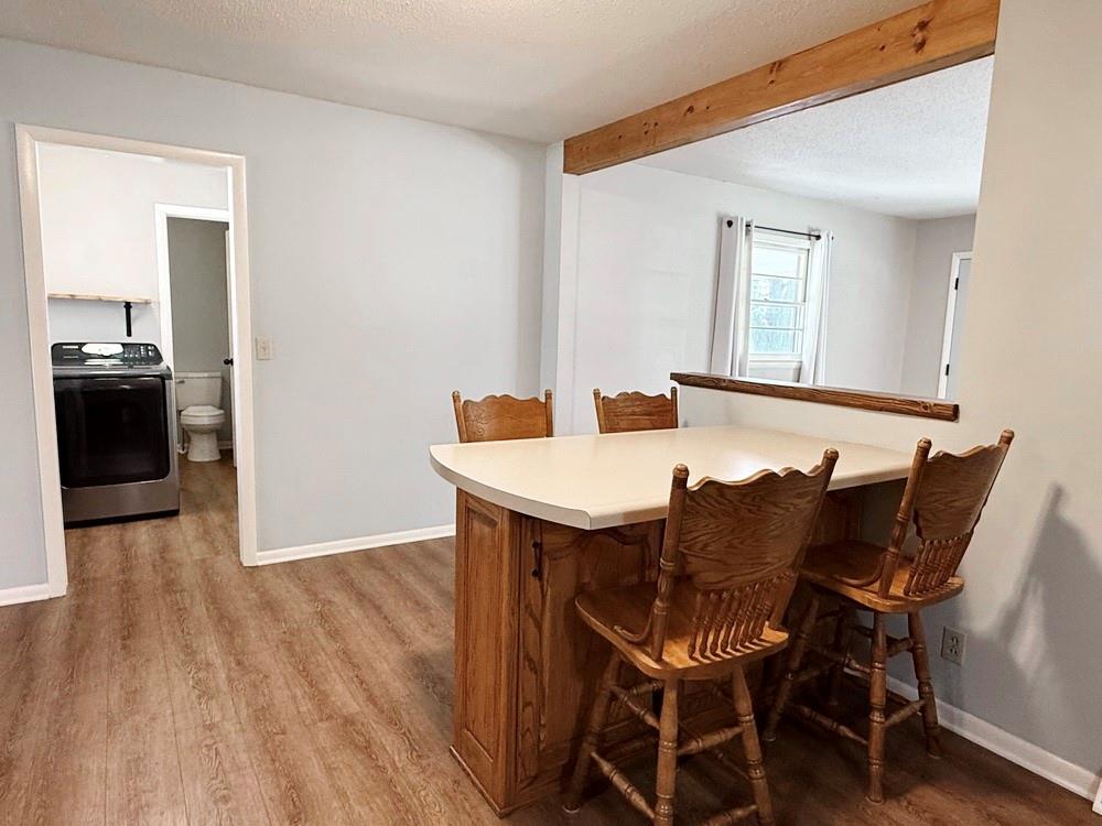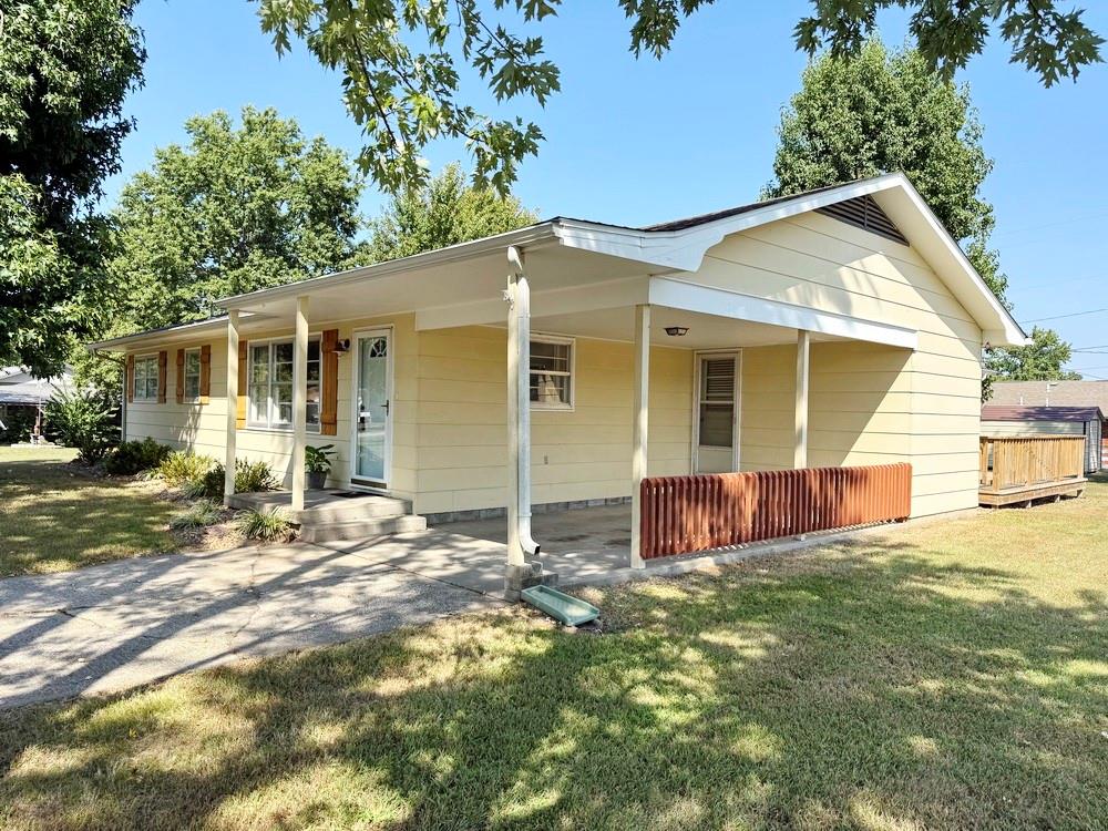 Charming Ranch Home with Updates in El Dorado Springs This well-cared-for 3-bedroom, 2-bath ranch offers 1,560 sq. ft. of comfortable living space in a quiet, dead-end street setting. The home has been in the same family since its construction and shows pride of ownership throughout. Inside, you’ll find a spacious living room with vaulted ceilings that opens to a 10’x18’ deck—perfect for relaxing or entertaining. The kitchen features beautiful oak cabinetry, an eat-in bar, and includes all appliances: refrigerator, gas oven/range, dishwasher, microwave, washer, and dryer. A formal dining area provides additional space for gatherings. A second living room adds flexibility for family, hobbies, or an office. Recent updates include newer hard surface flooring, carpet, fresh paint, plumbing improvements, and more. The home also features a covered attached carport for convenient parking. Outdoors, you’ll appreciate the newer 8’x12’ outbuilding, ideal for lawn equipment and gardening supplies. This property is clean, move-in ready, and offers a rare opportunity to own a home that has been lovingly maintained for years.