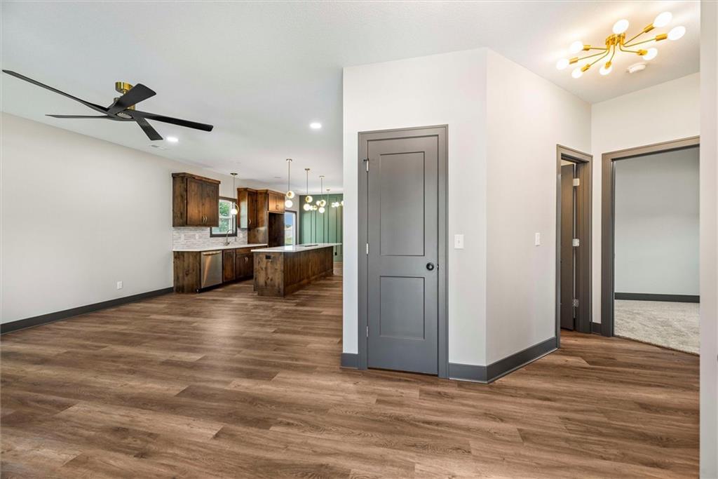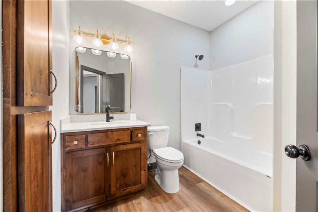 This brand new 3-bedroom, 2-bath home offers one level living and features an open concept floorplan for today's lifestyle. Luxury vinyl plank flooring throughout. Energy efficient led lighting with designer fixtures with brass accents. Kitchen features oversized island with brass faucet, quartz countertops and custom cabinetry. Primary suite off kitchen with access to laundry. Primary bath offers walk in shower. Two nice sized secondary bedrooms Large side entry garage. Patio for relaxing or entertaining. Custom front columns add to the curb appeal of this attractive functional home,