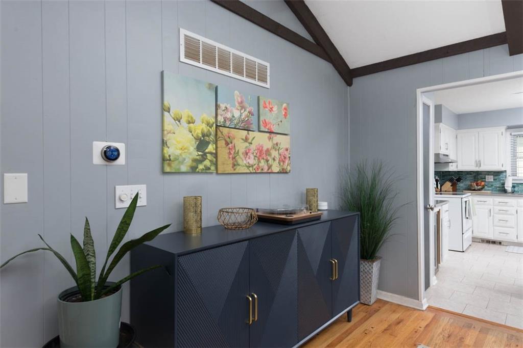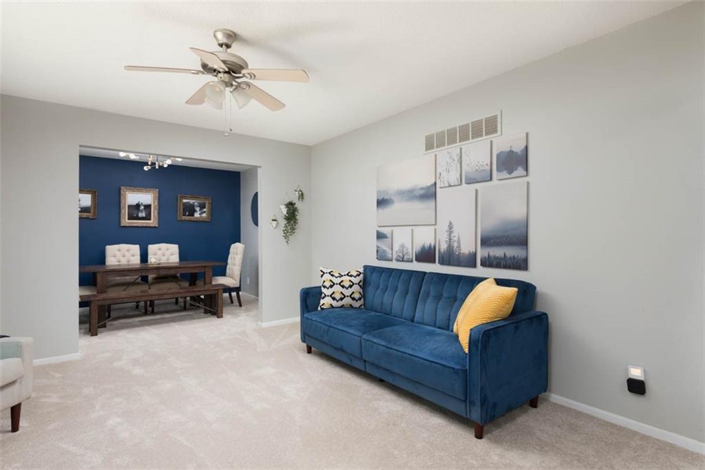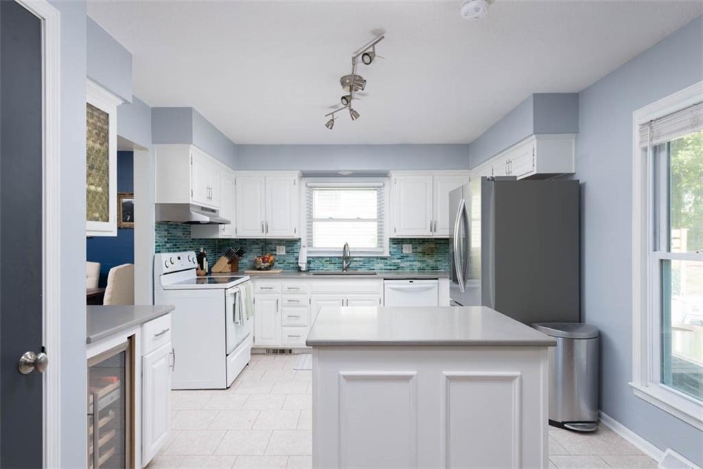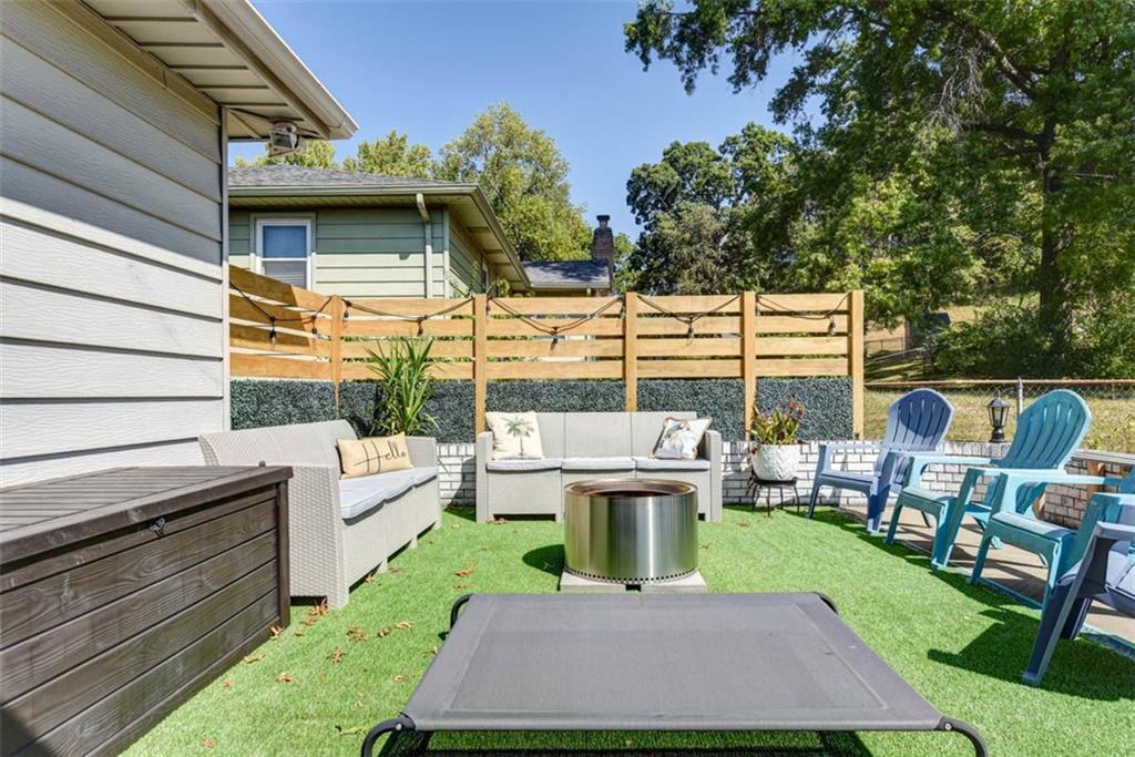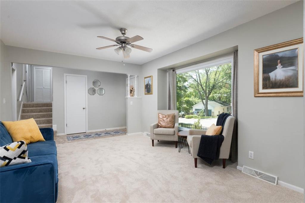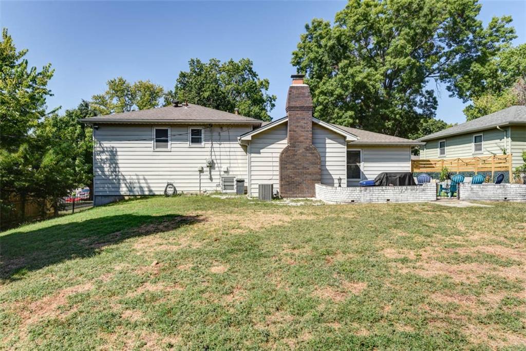 This house has ALL the mid-century modern charm you could want! Warm and welcoming, with a fantastic floor plan, in a nice quiet neighborhood with mature trees. Gorgeous colors throughout, with stylish light fixtures. Formal living room and dining room - a bright open kitchen with quartz counters, roomy pantry, and a tile floor leading to the world's coziest family room, with soaring ceiling, big brick fireplace, hardwood floors, and double doors out to a great patio and fenced yard! BRAND NEW ROOF and new carpeting here for the new owners! Master bedroom has hardwood floors, a cedar accent wall, ceiling fan, a double closet, and a newly updated en suite bathroom! Second and third bedrooms are both hardwood with ceiling fans and ample closet space. Second full bathroom is also newly updated. Downstairs, plenty of unfinished space for storage. This home is super convenient to everything KC (and nearby NKC!) have to offer, with easy trail access, and has great proximity to lots of shopping and dining, and highly-rated NKC Schools!