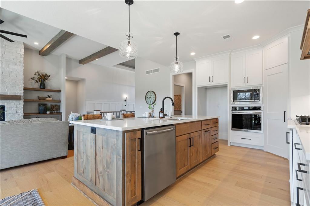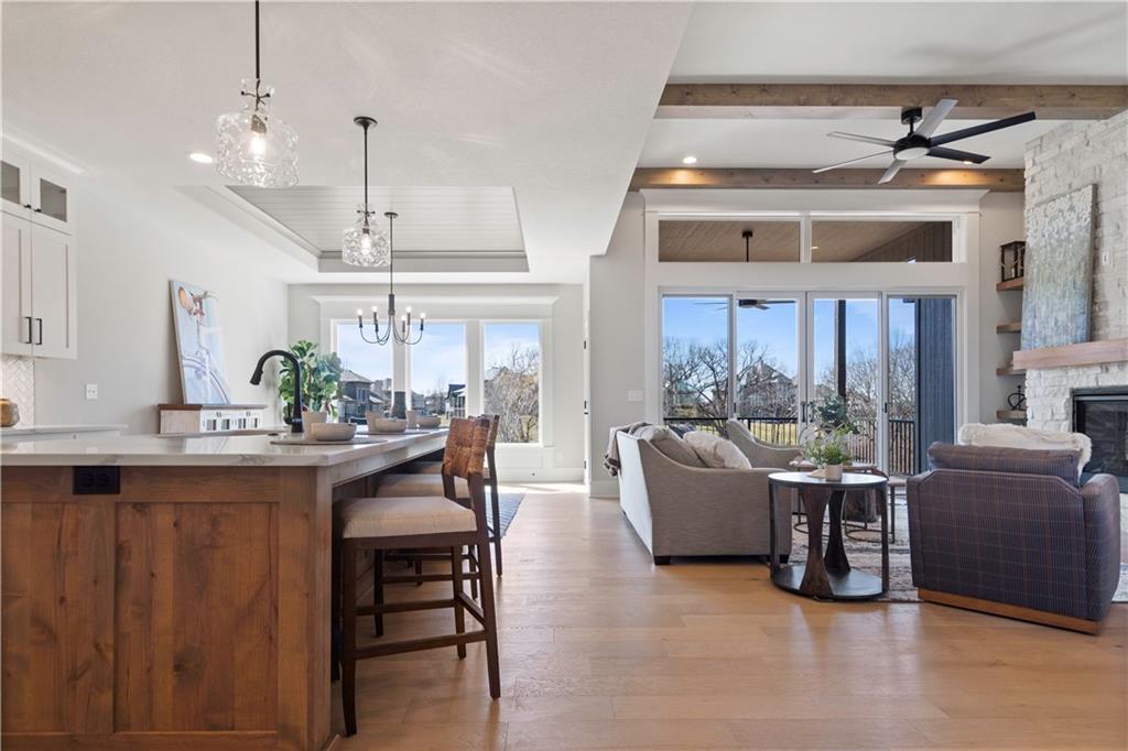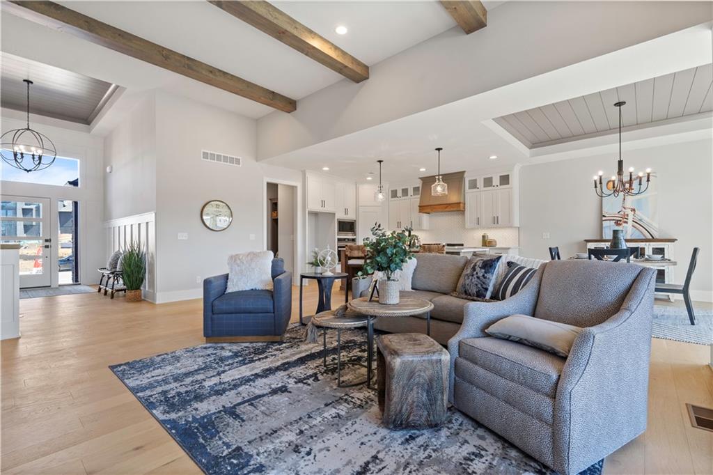 Nestled in the brand-new Woodland Oaks Subdivision, this stunning reverse 1.5-story home, built by Walker Custom Homes, is designed for luxury and functionality. Step inside to find soaring 12-foot ceilings and a cozy fireplace in the spacious Great Room, where abundant natural light creates a warm and inviting atmosphere. The gourmet kitchen features a center island, plentiful cabinetry, and a large walk-in pantry—perfect for everyday living and entertaining. Retreat to the elegant primary suite, complete with a freestanding soaking tub, oversized walk-in shower, dual vanities, and an impressive walk-in closet. A second main-level bedroom and full bath offer flexibility for guests or an in-home office, while the convenient laundry room is located just off the garage entrance. Downstairs, the expansive walk-out lower level is built for entertaining, boasting a large rec room with a wet bar, two additional bedrooms, a storm shelter, and generous unfinished storage space. Living in Woodland Oaks means enjoying access to premier area amenities, including nearby Lake Jacomo and Legacy Park, with its state-of-the-art community center, amphitheater, disc golf course, miles of walking trails, and sports facilities for all ages—all just steps from your front door. Home is under construction and final pricing is subject to change. Pics of former model. The specification sheet will outline planned finishes for this property, and supersede any details, photos, drawings, or depictions used for marketing purposes on this listing.