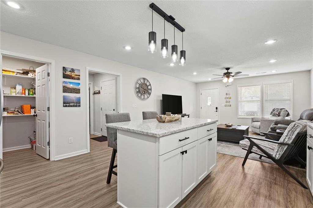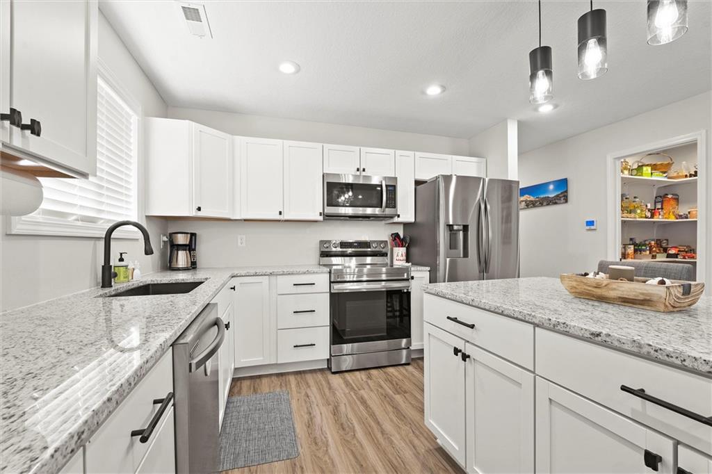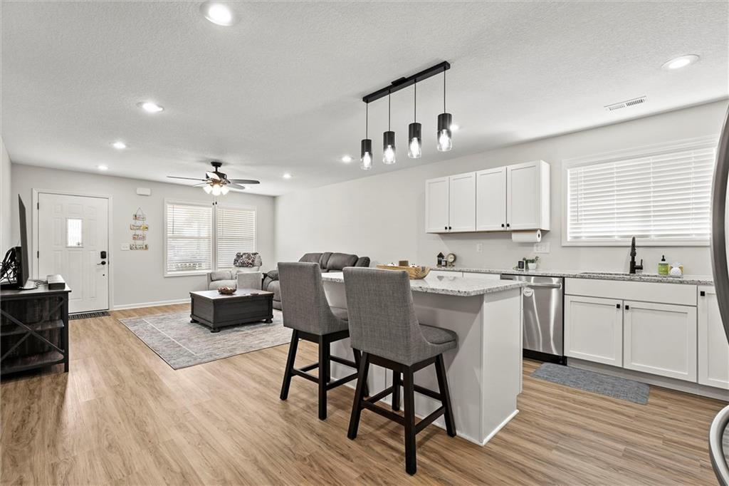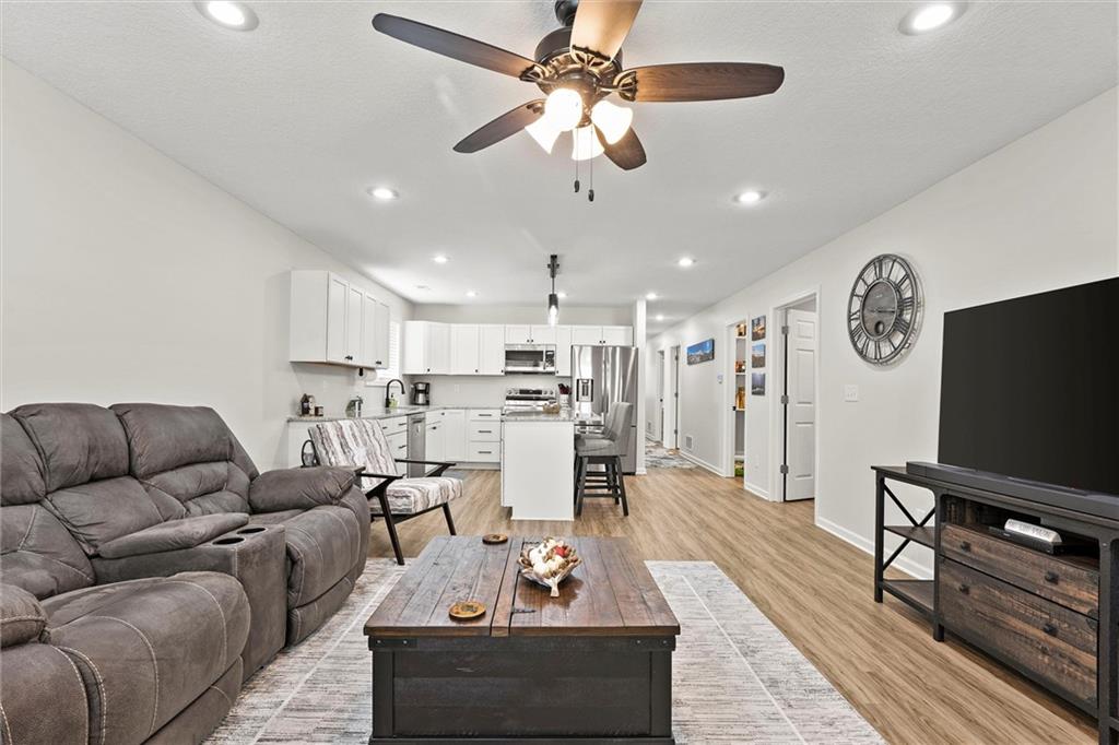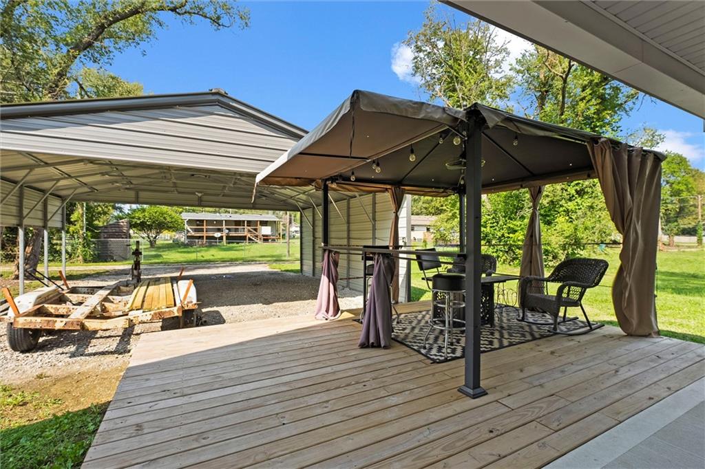 Welcome home to this better-than-new small-town charmer! This three-bedroom, two-bath home is filled with character, thoughtful details, and modern conveniences you’ll love. Enjoy slow mornings with coffee on the darling front porch or host gatherings with ease thanks to the open and inviting floor plan. The kitchen is the heart of the home, featuring granite countertops, a spacious island, walk-in pantry, Samsung stainless steel appliances, and a Smart Things stove with a built-in air fryer. A touchless faucet and black stainless steel sink add both function and style. Just off the kitchen, a breezeway leads to a convenient laundry room. Down the hallway, you’ll find a beautifully designed bathroom with a sleek LED lighted mirror featuring touch-switch memory and anti-fog. Three bedrooms complete the home, with the primary suite tucked away at the end of the hall. The primary bathroom offers dual vanities and two more modern LED lighted mirrors—perfect for everyday routines. Step out back to enjoy the new deck with pergola offering the perfect place to land with a cold drink after a long day! The new custom carport offers convenient additional parking. This home has it all—style, comfort, and charm. Come see for yourself why this small-town beauty is ready to welcome you home.