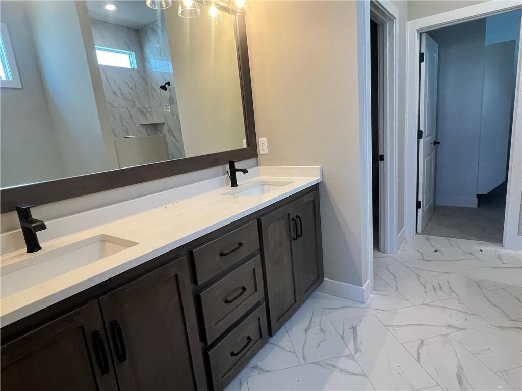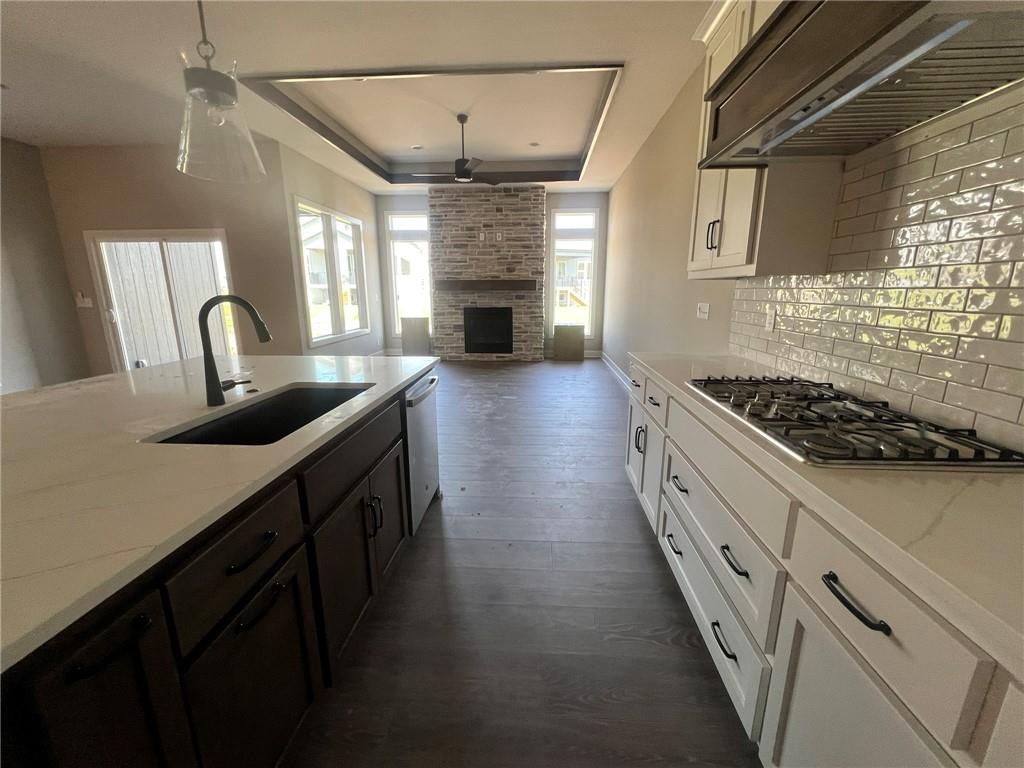$10k Builder Incentive for closing costs or rate buy-down assistance if you close before 12/31/25!  Introducing The Cambridge—the newest Reverse 1.5 Story floorplan by award-winning builder Inspired Homes, located in the highly desirable Pryor Ridge community. This beautifully designed 4-bedroom, 3-bath home offers the perfect blend of luxury, comfort, and everyday functionality. Step into a bright, open layout with a wide entry, dramatic staircase, 10' ceilings, and large windows that fill the home with natural light. The chef-inspired kitchen features quartz countertops, designer tile backsplash, soft-close cabinetry, a large island, and a walk-in pantry—perfect for entertaining. The great room boasts a stone fireplace and opens to a covered patio and flat backyard, ideal for outdoor living. Main level traffic areas boast Revwood throughout -- a high quality and durable laminate flooring. The main-level primary suite offers a spa-like bath with a 6’ soaker tub, walk-in shower, dual vanities, and a walk-in closet with direct laundry access. The finished lower level includes a rec room, wet bar, two bedrooms, full bath, and generous storage. Located just minutes from Downtown Lee’s Summit, lakes, trails, shopping, dining, and top-rated schools. BUY WITH PEACE OF MIND, the convenience of new construction backed by a 2-10 Home Warranty, offering 10 year structural, 2 year mechanical, 1 year workmanship Please excuse our dust—this home is in its final Quality Assurance stage!
