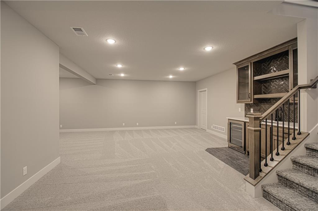 Introducing The Cambridge—the newest Reverse 1.5 Story floorplan by award-winning builder Inspired Homes, located in the highly desirable Pryor Ridge community. This beautifully designed 4-bedroom, 3-bath home offers the perfect blend of luxury, comfort, and everyday functionality. Step into a bright, open layout with a wide entry, dramatic staircase, 10' ceilings, and large windows that fill the home with natural light. The chef-inspired kitchen features quartz countertops, designer tile backsplash, soft-close cabinetry, a large island, and a walk-in pantry—perfect for entertaining. The great room boasts a stone fireplace and opens to a covered patio and flat backyard, ideal for outdoor living. Main level traffic areas boast Revwood throughout -- a high quality and durable laminate flooring. The main-level primary suite offers a spa-like bath with a 6’ soaker tub, walk-in shower, dual vanities, and a walk-in closet with direct laundry access. The finished lower level includes a rec room, wet bar, two bedrooms, full bath, and generous storage. Located just minutes from Downtown Lee’s Summit, lakes, trails, shopping, dining, and top-rated schools. BUY WITH PEACE OF MIND, the convenience of new construction backed by a 2-10 Home Warranty, offering 10 year structural, 2 year mechanical, 1 year workmanship Please excuse our dust—this home is in its final Quality Assurance stage!