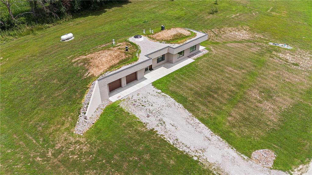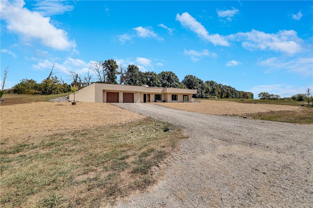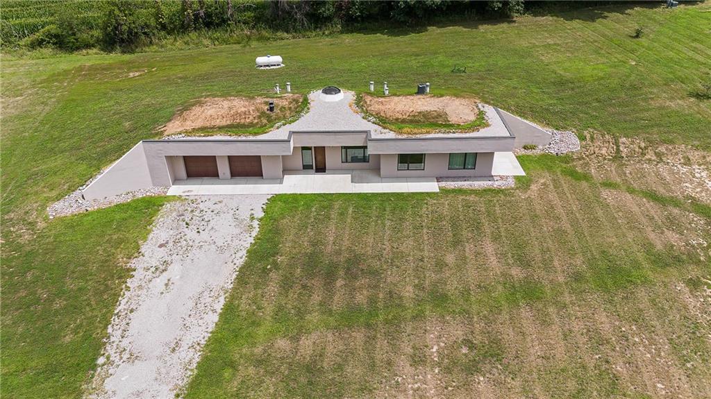 Your Dream Home Awaits on 20 Acres! Welcome to 18018 Ozark Lane in Higginsville – a one-of-a-kind luxury estate perfectly situated on 20 acres of both wooded and cleared land with a picturesque creek. This thoughtfully engineered 2-bedroom, 2-bathroom concrete home with an attached 2-car garage combines modern comfort, durability, and the serenity of country living, all while being just minutes from town. Deer and wildlife are frequent visitors, adding to the property’s private, peaceful charm. Built with 10’ reinforced concrete walls and vaulted domed ceilings, the earth-contact design offers exceptional resistance to fire, hail, and tornadoes, with virtually zero exterior maintenance required. Inside, a central skylight fills the open-concept kitchen and family room with natural light. Luxury details include Dacor appliances, oversized column refrigerator/freezer, custom textured melamine cabinetry, and a spacious pantry. Comfort and efficiency come standard with radiant floor heating, backup propane furnace, wood-burning stove, and a recirculating fresh air system. Homes of this type commonly maintain interior temperatures of 50°F without power during sub-zero conditions, ensuring peace of mind year-round. If you’re seeking low-maintenance luxury, energy efficiency, and tranquil countryside living, this property is unmatched. Additional 13 acres available for purchase adjacent to the home. Schedule your private showing today - this rare estate won’t last long!
