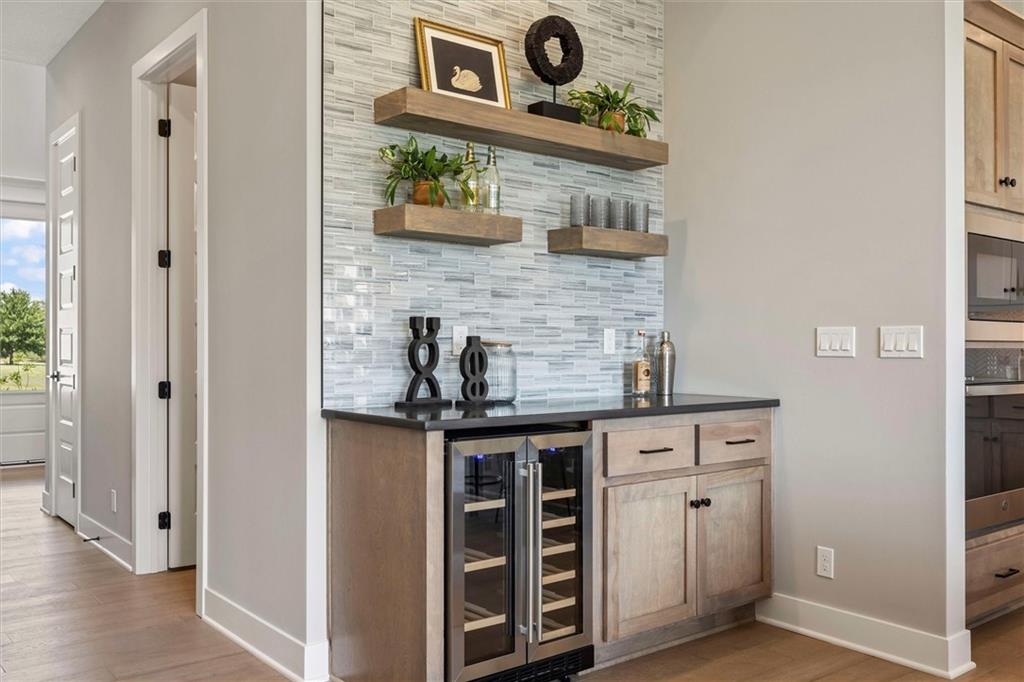 Welcome to the Ryder Expanded by Lamendola Custom Homes located on Lot 64! Eight foot tall double doors welcome you to this beautiful 1.5 story home with 5 bedrooms and 3.5 bathrooms. The first floor has a wonderful primary bedroom with a large ensuite bathroom and closet with built in drawers, an additional bedroom and/or office, a laundry room with a sink and storage plus a great kitchen with a walk-in pantry. The great room has convenient dry bar with floating shelves to make entertaining a breeze. Upstairs you will find a loft for added living space, 2 bedrooms with a Jack-and-Jill bathroom plus a third bedroom and ensuite bathroom. So much to love and a great place to call home!! Taxes are estimated. Close to schools, highways, shops and restaurants! Models Open Daily, 11 am – 5pm, and Sunday, 12-5pm. Visit the sales office at 12411 W 183rd Terrace, Overland Park. THIS HOME IS ESTIMATED TO BE COMPLETED IN THE SPRING OF 2026.