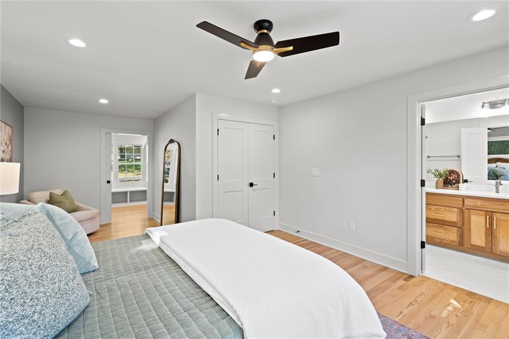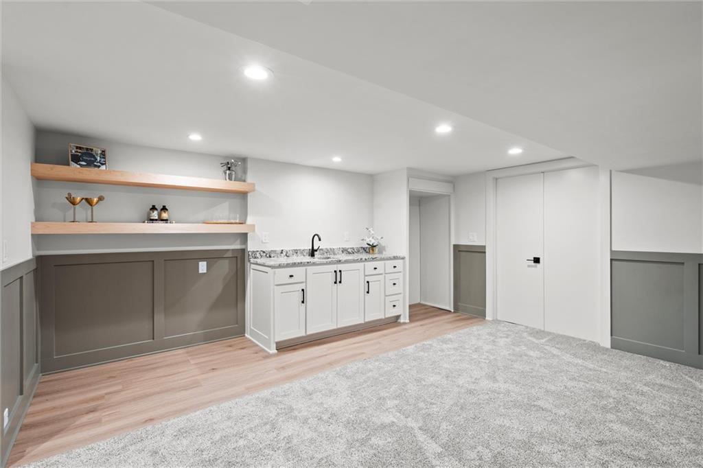 Villa style living could be yours at this fully remodeled home in an unbeatable location. Boasting a ranch/reverse 1.5 story floor plan, every inch has been thoughtfully renovated with modern touches yet timeless style. This home offers 4 spacious bedrooms and 3.5 pretty as a picture bathrooms. You will fall in love with the built-in's, custom crafted cabinetry, vaulted ceilings, flexible floor plan, designer touches and everything is NEW! Stunning double front doors and bright foyer showcase french doors leading into a stately office or den. Enter the gorgeous vaulted living room and hearth flanked by windows overlooking the half acre yard complete with a freshly stained deck, pergola and firepit too. The custom kitchen has a grand quartz island, gas stove with hood, floating shelves and walk in pantry. It leads into everyone's favorite breakfast/dining room. Holiday dinners will be perfect in here when everyone gathers around the table and grabs a drink and an appetizer from the built in buffet with arch and floating shelves. The primary en suite also has a sitting area and walk in custom closet with stackable hook-ups. The shower is the star in the primary bath. There is one additional large bedroom on the main level with full hall bath showcasing a soaking tub, separate shower and double vanities. The expansive walkout/walkup lower level has room for everyone including the two remaining bedrooms, well appointed full bathroom, large laundry room, and a lovely kitchenette. Do not miss out on the opportunity to own a rare gem in one of Leawood's most desirable locations and neighborhoods.