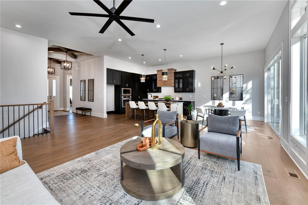 Welcome to the WhiteTail model built by Kevin Higdon Construction. This is a show-stopping model in "The Vineyards" of Napa Valley. The home is showcasing top-tier design, layout, and craftsmanship. This reverse 1.5-story plan features a open concept as you enter through the 8 ft doors into the naturally lighted main floor with hardwood floors, high ceilings, and elegant finishes. As you peruse into the Kitchen you will see a 10' island, high end appliances and your very own Large Walkin pantry equipped with an abundance of workspace and additional coffee Bar. The home offers 4 bedrooms and 3 bathrooms, including a luxurious main-floor owner’s suite with spa-inspired details also the Primary bedroom has a walk-in closet that connects to the laundry room for convenience. A second bedroom or office and a full guest bath are also on the main level. Step outside to enjoy an oversized deck with tree line privacy back yard. Lets meander down the custom staircase to a finished basement that includes 2 additional bedrooms with a private bathroom, a spacious rec room with built-ins plus a basement walk-up bar with a sink and beverage fridge—perfect for entertaining. There's also room for storage or hobbies. As you view the outside you will see a thoughtfully designed stucco and stone exterior with custom landscaping. Napa Valley is surrounded by beautiful trees and open surroundings with breathtaking views that feel like you're in the country and just 3 minutes from grocery, shopping, an array of restaurants, parks, trails and easy highway access within the award-winning Lee's Summit West Schools. This model, located on Lot 192, perfectly represents the style and elegance of Kevin Higdon's Fine Homes in the Lee's Summit area and open Friday-Monday 12-5.