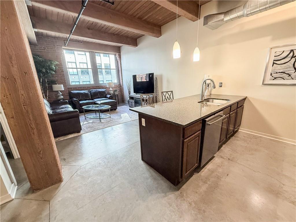 Luxury Loft Living in the Heart of Historic Downtown Kansas City - THE FOUNTAINS CONDOMINIUMS! Welcome to sophisticated urban living in one of downtown KC's premier historic buildings—thoughtfully renovated in 2017 to combine classic charm w/modern luxury. This exclusive residence is part of a boutique 45-unit building offering upscale amenities, secure access, & 2 elevators for your convenience. Step inside this spacious 2-bedroom, 2 full bath LOFT w/office & experience high-end industrial elegance at its finest. Designer details include exposed brick accent walls (incl Coca Cola brand still on the exposed brick walls), polished concrete floors, & soaring ceilings that frame an open-concept living & dining space—ideal for entertaining or relaxing in style. The chef’s kitchen features gas range & sleek finishes that create a cozy ambiance year-round. The primary suite is a private retreat complete w/double vanity bath, walk-in closet, & in-unit washer/dryer (ventless) for ultimate convenience. HOA fees include your water, sewer, trash, gas & bldg insurance. Electricity is the only utility that you would be responsible for. Google is available & you would only need to provide content insurance for your unit. Additional highlights include: Covered parking available for lease directly across the courtyard. Fitness center, private theatre room, lounge/clubhouse w/ darts, pool table, large television & social seating areas. Secure personal storage unit (3’ x 7’) included. This property has a quiet park as its front yard to enjoy or evening night. A five minute walk will get you to various restaurants, 2 KC jazz bars, The River Market and so much more... Hop on the Street Car on Main giving you access to the full length of Main St from Riverfront, Power & Light, Crossroads, Union Station, West Port, The Plaza and UMKC. This is your rare opportunity to own a piece of KC's rich architectural history while enjoying all the perks of modern downtown living.