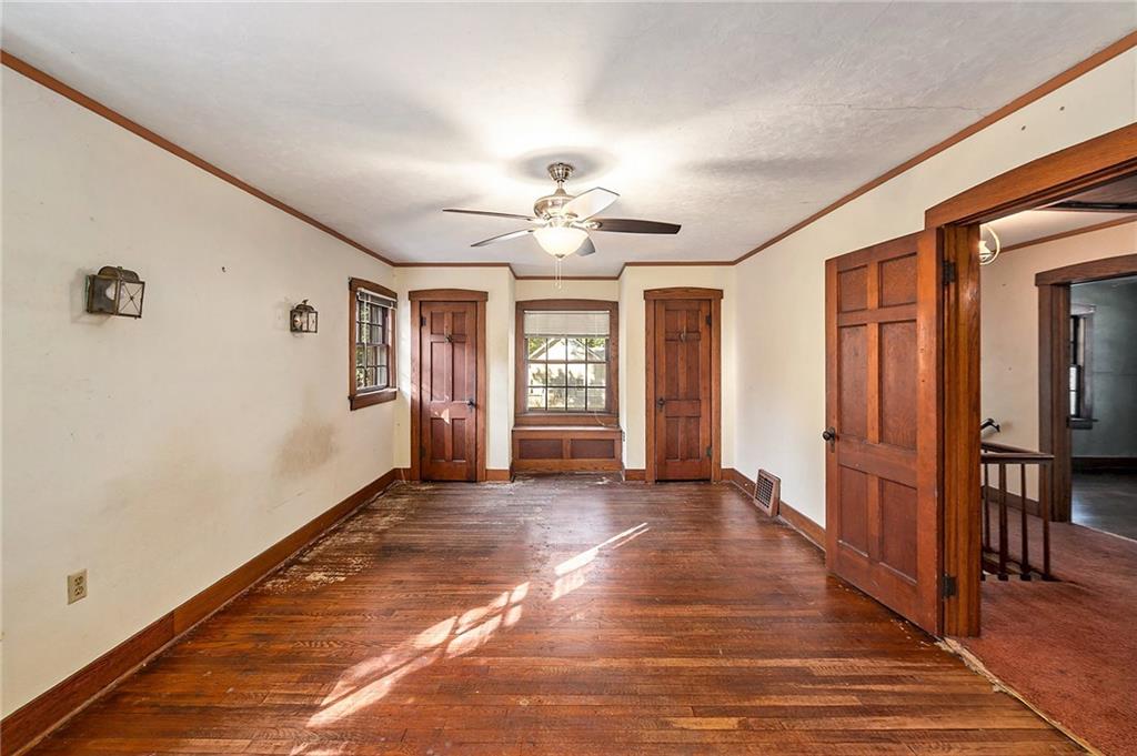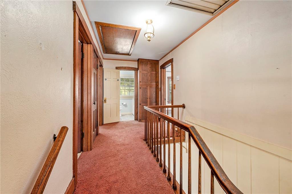 Welcome to this charming all-brick home set on a spacious corner lot surrounded by mature trees. Offering 4 bedrooms and two and a half baths, this home features a thoughtful addition that expands the main level with a private primary suite, complete with two walk-in closets and its own bath, a main-floor laundry room with multiple built-ins and pull down ironing board, and a convenient hall half bath. From here, step out onto the large deck that is ideal for gatherings or quiet evenings outdoors. There is a second addition off of the kitchen and dining rooms that adds even more functionality to the main floor. This warm and inviting family room features a gas log fireplace insert, and two large built-in bookcases on either side. The main living room has original built-in bookcases that add charm and maintain the historic value of the home while the gas log fireplace offers a cozy setting on those cold winter evenings. A small library/sitting room is off of the living room and has a door to a covered porch. Three secondary bedrooms upstairs and a hall bath complete the interior of this home. Outside you will discover a generous 2-car garage with a loft above that provides excellent storage, while a side carport adds additional parking options or lawn equipment storage. There is also a walkout/walkup basement that might have been an original garage. New replacement windows were recently added in the family room and primary suite. With it's blend of comfort, space, and classic appeal, this home is ready to welcome its next owners.
