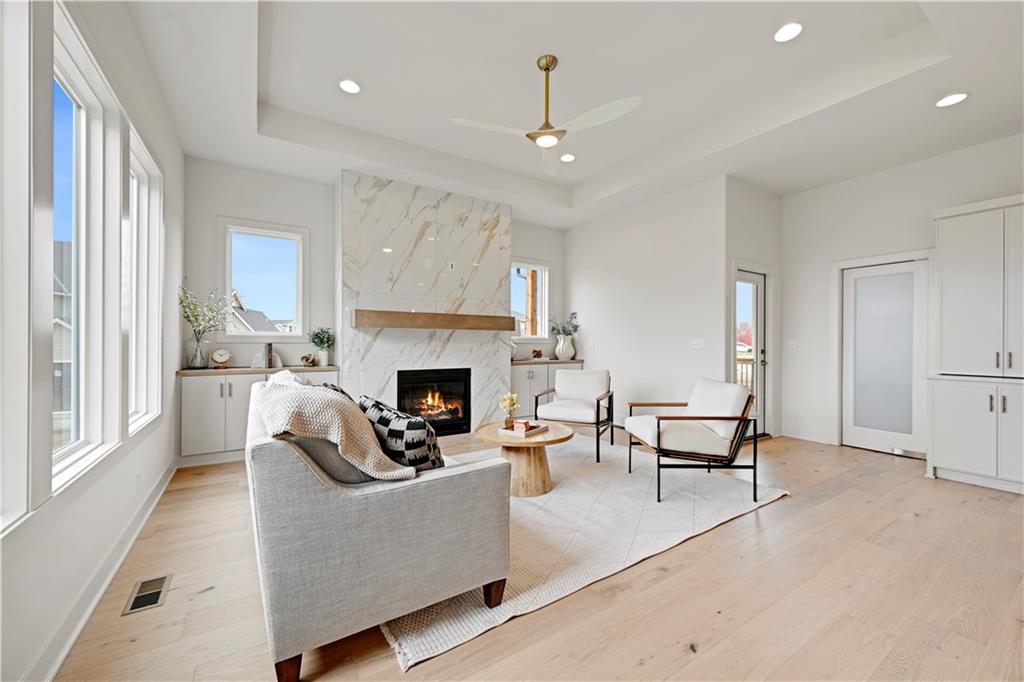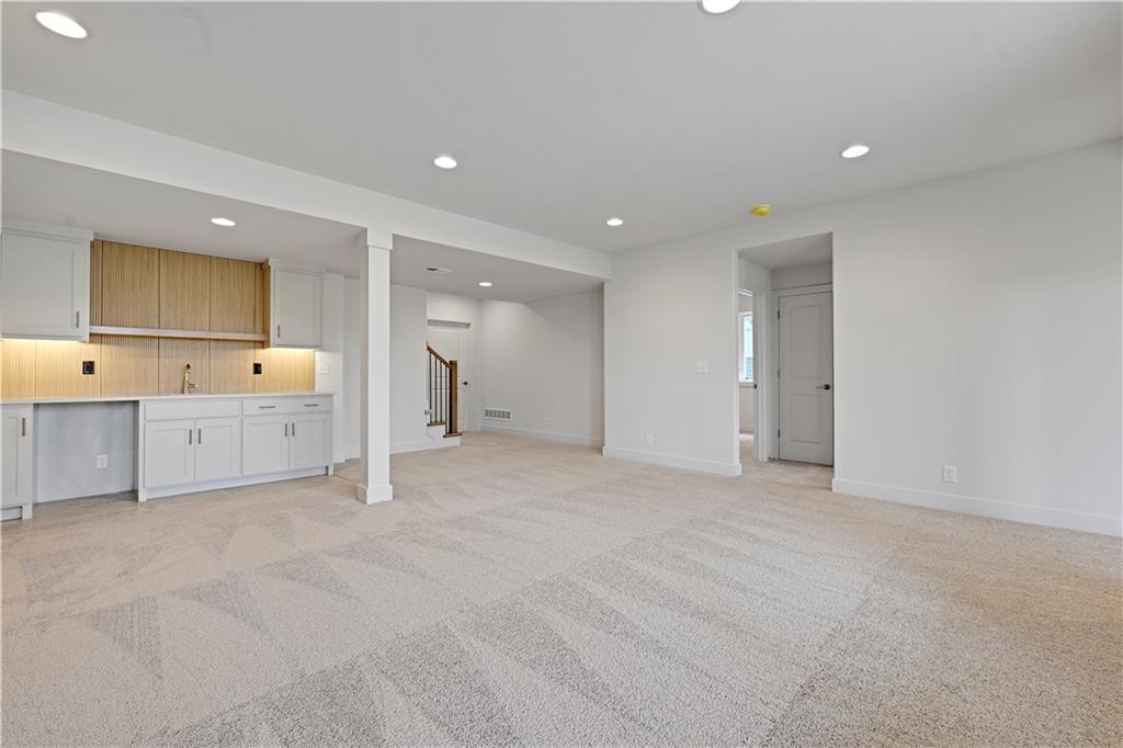 The "Gruene" Reverse by C3 Homes is here! As you walk in to the incredible entry you have a bedroom to the right that can also be an office, that is connected to a full bathroom. Past the foyer you have the dining room next to the kitchen with large island, walk-in pantry all next to the Great Room. The Great Room has a stunning fireplace with built-ins on each side and a door out to your covered deck with views of Heritage Park. The Primary En-Suite leads into the primary bath with a free-standing Tub, double vanity, tiled shower, walk-in closet that feeds into the main level laundry room. The lower level has 2 more bedrooms with walk-in closets and a bathroom with a shower. The recreation room has a wet bar for all the entertaining and games nights ahead! Welcome Home! All in the coveted Heritage Ranch, A Lambie-Rieke Community, with Amenities Galore such as state-of-the-art pool, clubhouse, trails, pickleball. play area, half-court basketball, Putting Green & ponds. This community provides a wonderful lifestyle and right next to Heritage Park with Dog Park, Sports Parks, Golf, Lake and so much more! Contact Onsite Agents for Estimated Completion, and design selections. Our welcome center is now open, located at LOT 65. Open 7 days a week! SPEC HOME Under Construction. ESTIMATED COMPLETION FEB 2025 LOT 21.