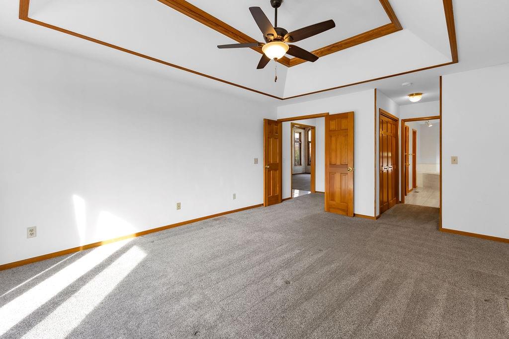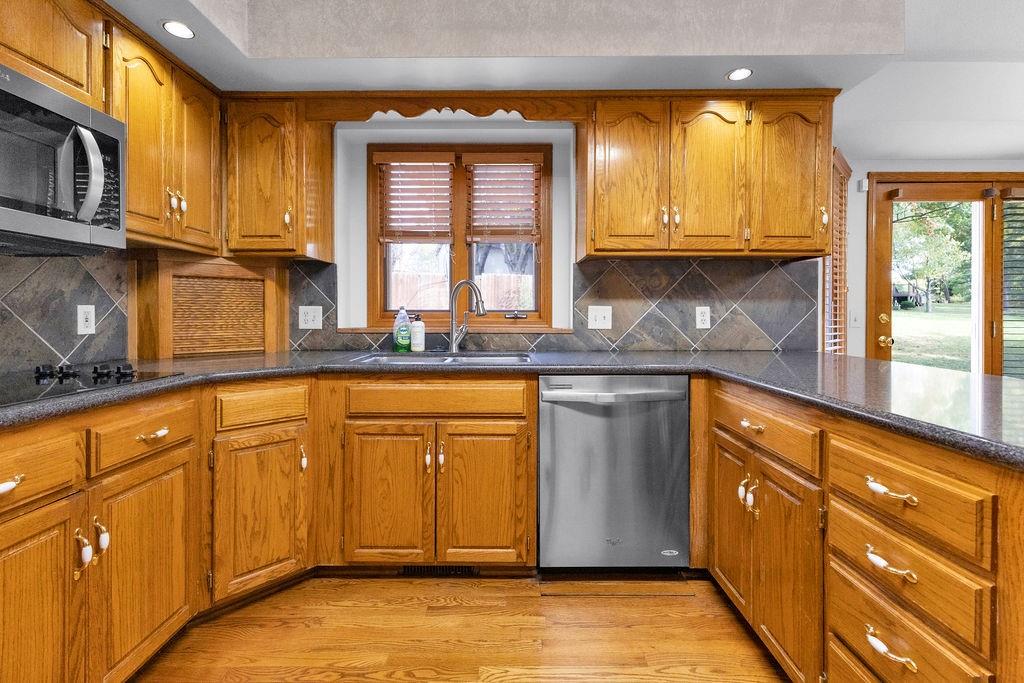 This beautifully maintained 1.5-story home offers an abundance of space and flexibility in a sought after neighborhood. The main floor boasts a warm living room with a brick fireplace, a formal dining room, and a spacious kitchen with a breakfast area. You’ll love the oversized primary suite with a tray ceiling, a spa-like bathroom, plus the convenience of main-floor laundry, a half bath, and a 2 car garage. Upstairs, find three comfortable bedrooms and a full bath, while the finished basement is made for fun - featuring a large rec room, full bath, wet bar, and a non-conforming bedroom or exercise room, along with plenty of storage. A brand new roof, security system, and all electric living finish off the amazing features of this home. With multiple living areas and thoughtful details throughout, this home is perfect for both entertaining and everyday living.