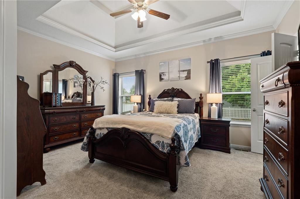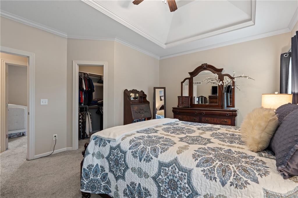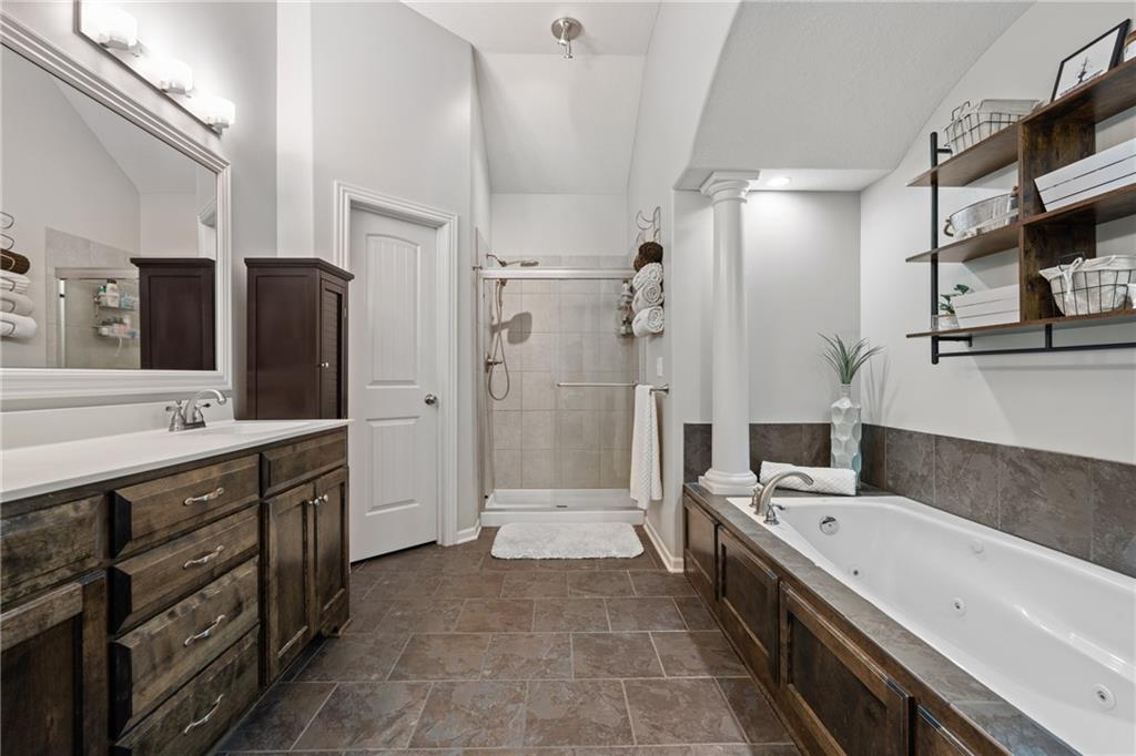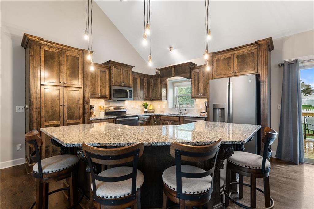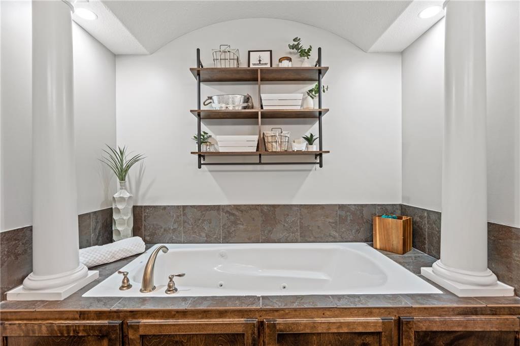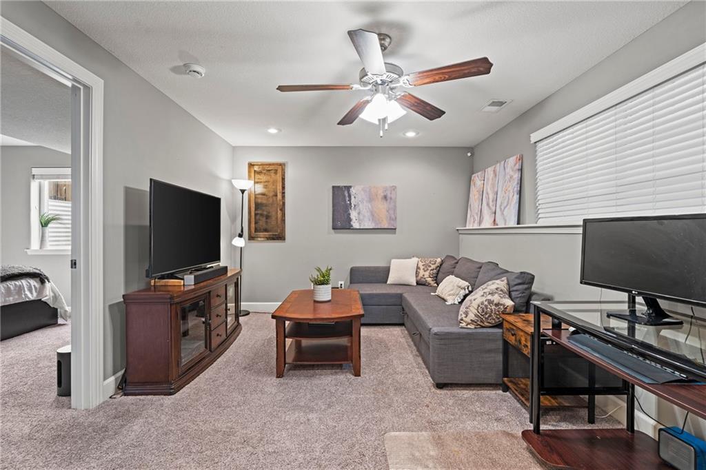 STUNNING and meticulously maintained 4-bed, 3-bath home on a corner lot/fenced yard with upgrades galore! Living area is open to kitchen with soaring vaulted ceilings, cozy gas fireplace, and an expansive kitchen with a giant oversized granite island, newer dishwasher/microwave, under-cabinet lighting, and stylish industrial pendants/chandelier. The primary suite offers a spa-like retreat with double vanities and abundant counter space, a whirlpool tub, and walk-in closet. 2 more good sized bedrooms and linen closet line the hall with a large walk-in laundry room has extensive built-in shelving for organization/storage. Iron spindles accent the staircase leading to a separate lower-level living area featuring its own bedroom, FULL bath, and separate living space! Step outside to enjoy the brand-new extended deck with black metal spindles and refreshed landscaping. A central vacuum system provides convenient quick cleaning! Located in Chapman Farms and down the street from the elementary school, this home offers easy access to shopping, dining, and amenities in both Blue Springs and Lee’s Summit! Priced to sell, must see!
