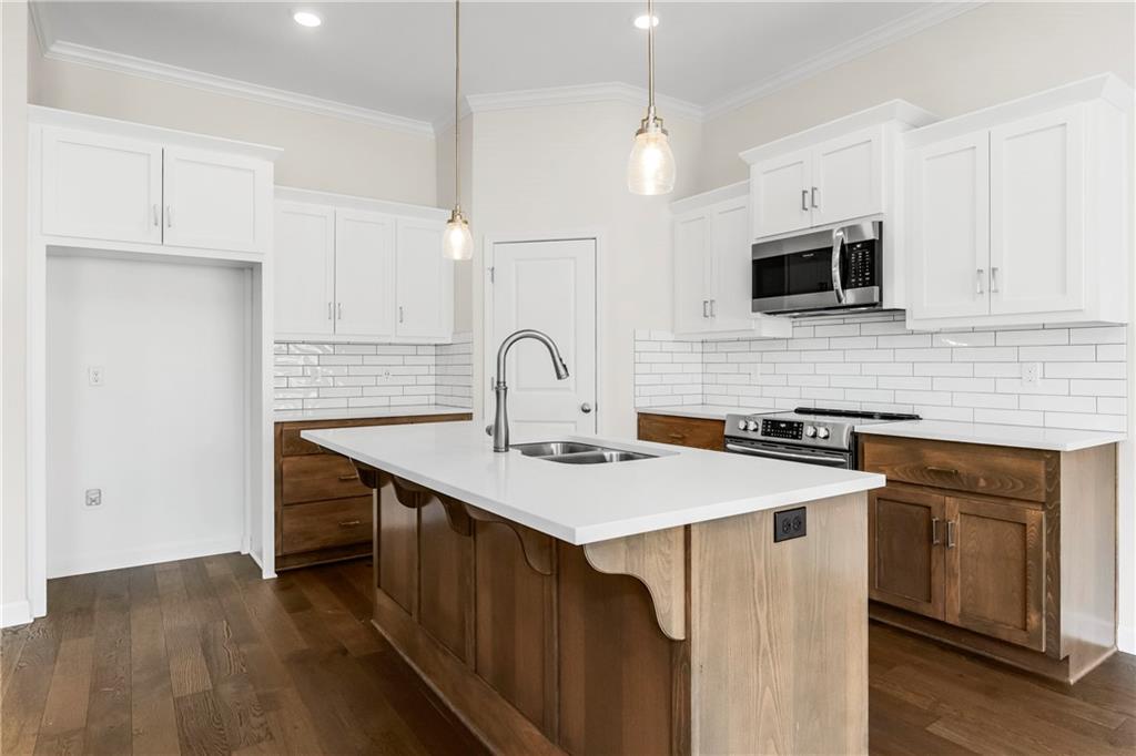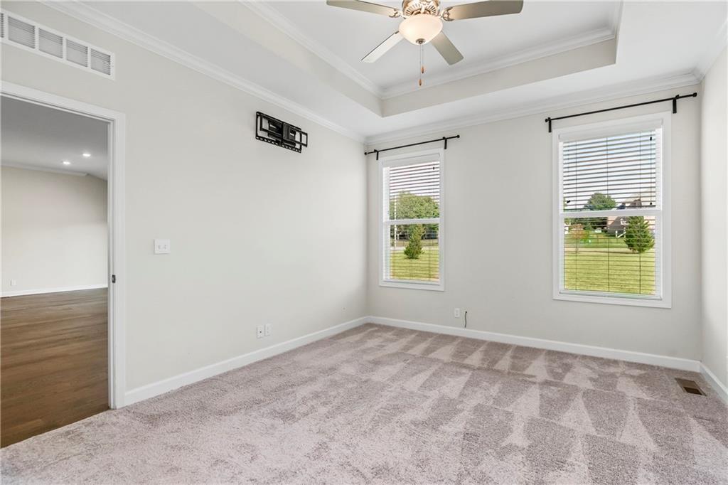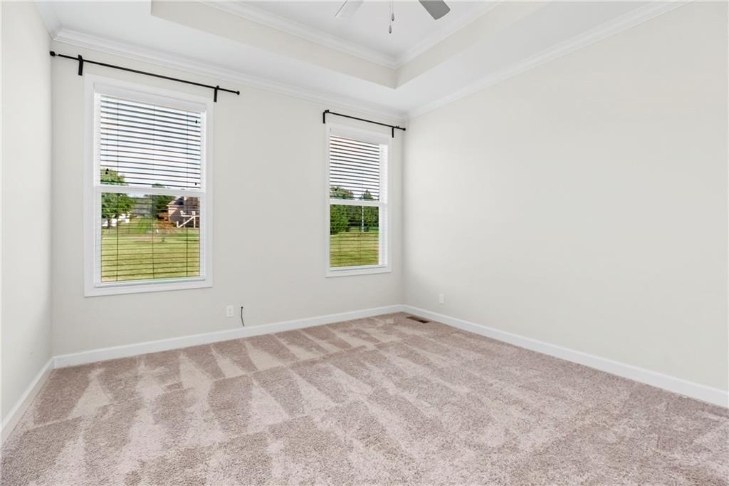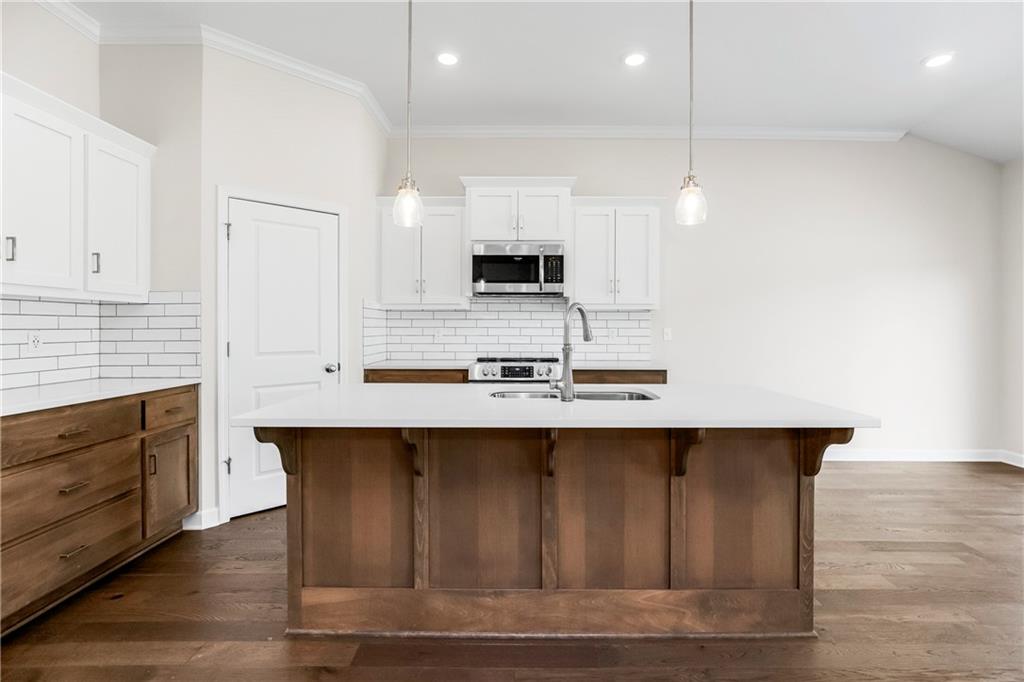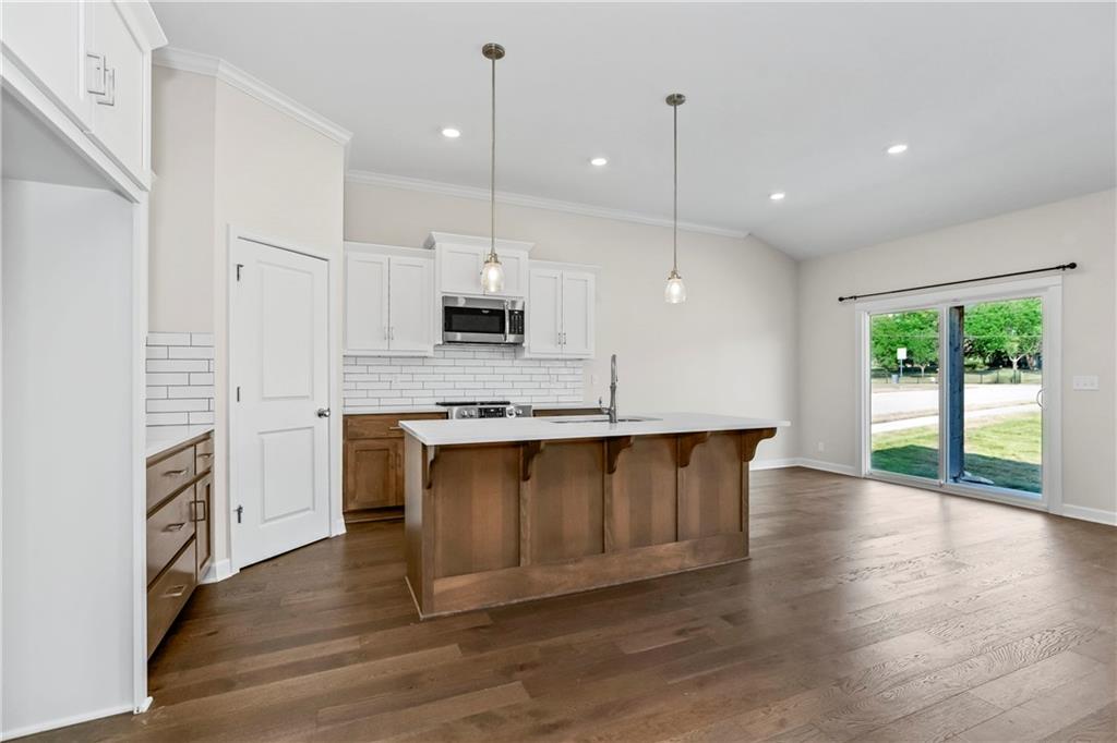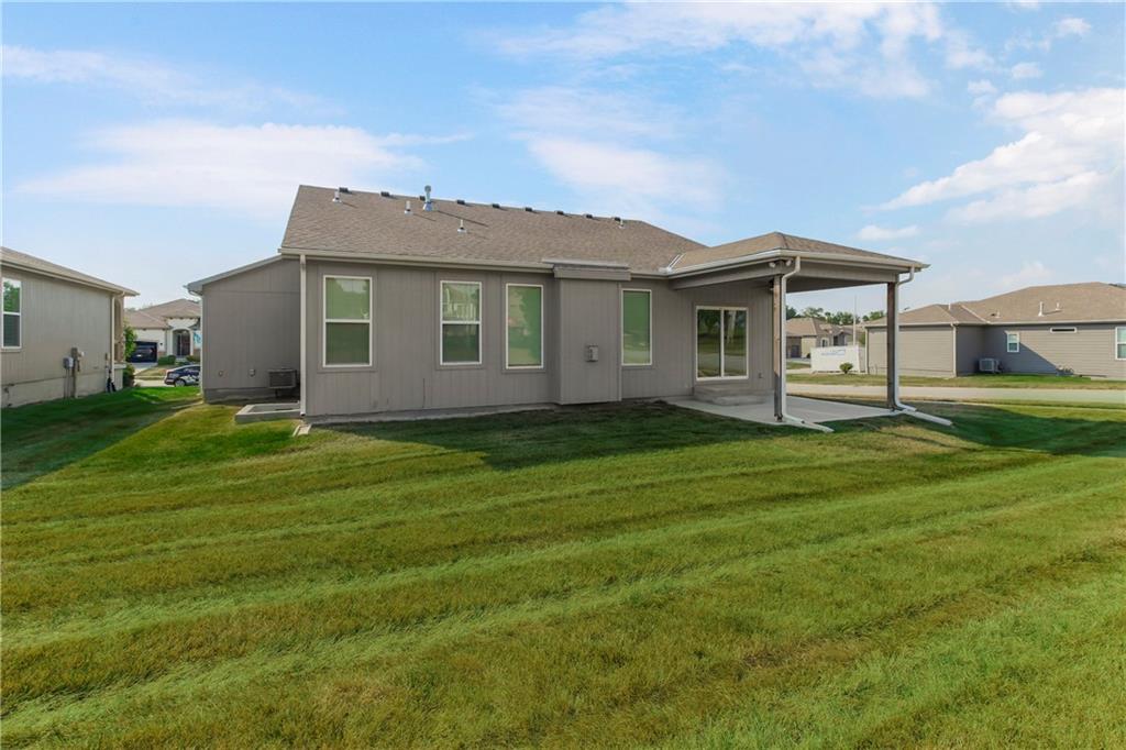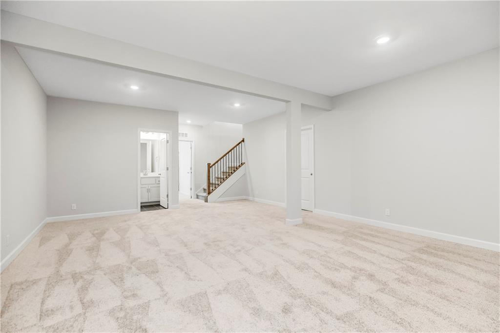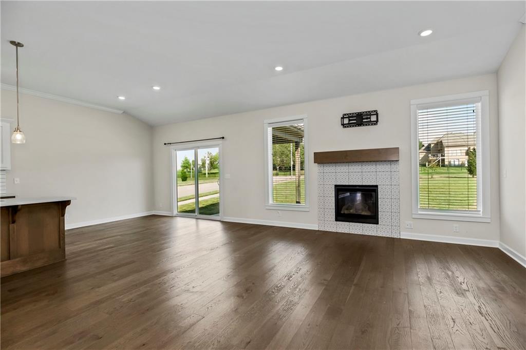 Fall in love with this upgraded, open-concept ranch featuring a quartz island kitchen, walk-in pantry, tile shower with seat, and 8' garage doors. Enjoy a spacious rec room, finished basement with bedroom and full bath, and oversized windows leading to a covered patio with peaceful green space views.