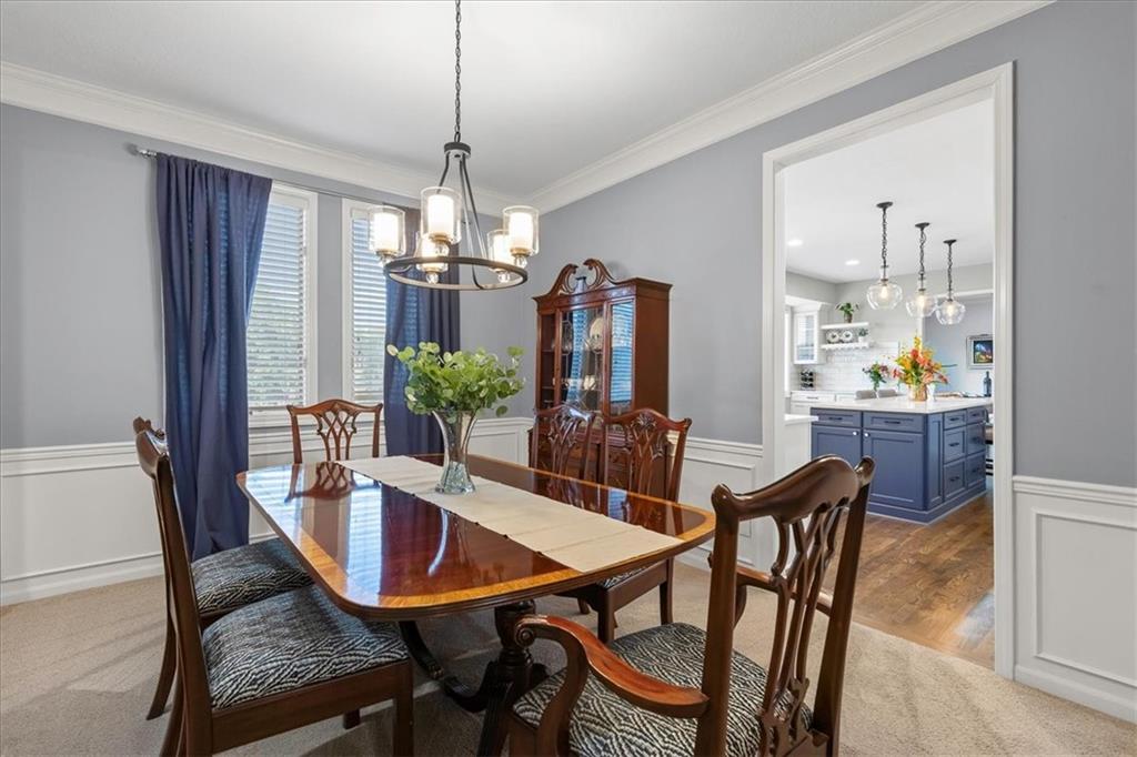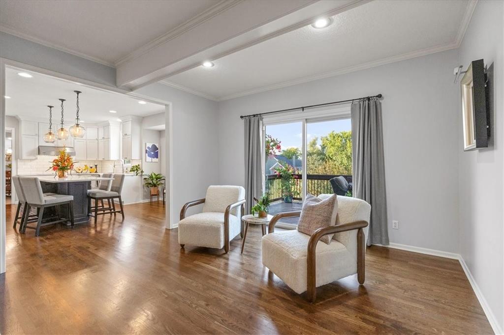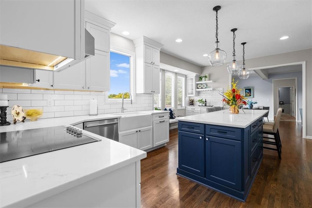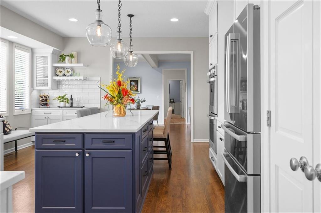 Step inside and feel right at home. This is the comfortable, spacious haven where privacy meets modern living and real long-term value. Nestled on 1.55 lush, tree-lined acres across from future 236 acre Camp Branch nature park, this beautifully updated 5 bedroom, 5 bathroom (3 full, 2 half) home is a rare opportunity in the Blue Valley School District. Inside, the newly renovated chef’s kitchen features quartz countertops, stainless steel appliances, a custom pantry with pullout drawers, and generous prep space- perfect for hosting dinners or weekend entertaining. The open layout flows into a spacious main living area, private home office, and light filled dining spaces. Upstairs, the expansive primary suite offers a spa inspired bath and walk-in closet. The fully finished walkout lower level features a full wet bar and adds flexible space for a second living room, gym, guest quarters, or playroom. The property includes a large backyard, an oversized deck with stunning sunset views, and beautiful, mature gardens, built for outdoor living. A new county park and walking paths slated for 2026 completion is just across the street, and a local winery is a short walk or golf cart ride away. This home offers both everyday serenity and weekend escapes.