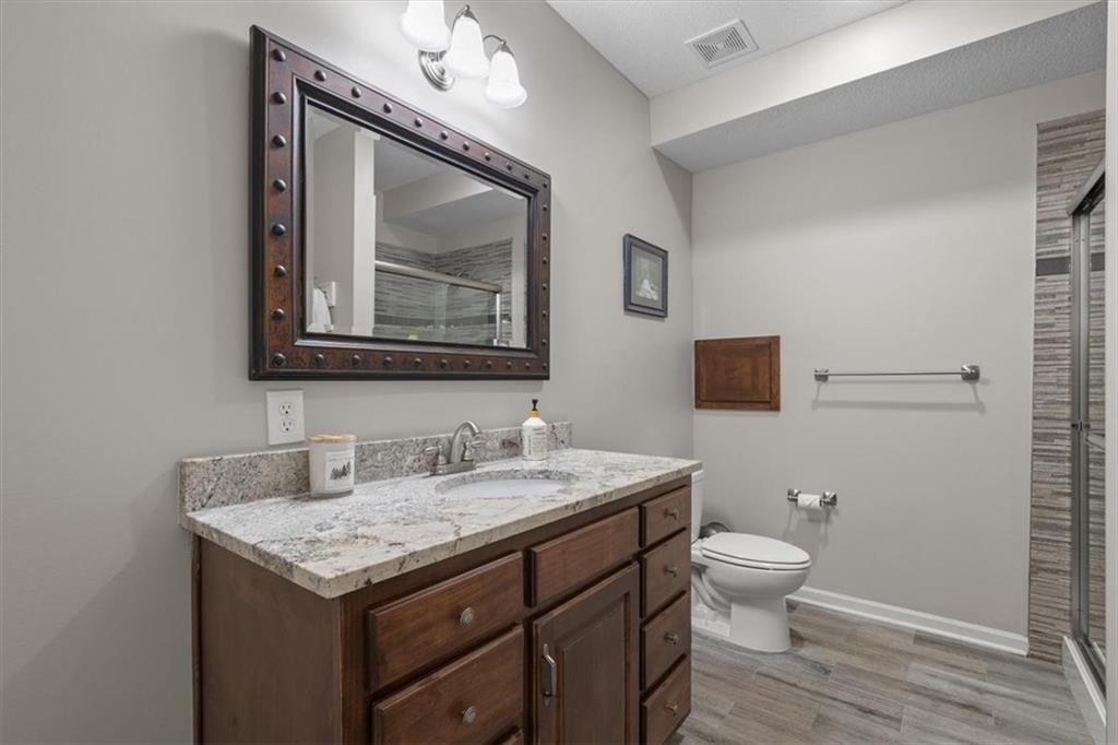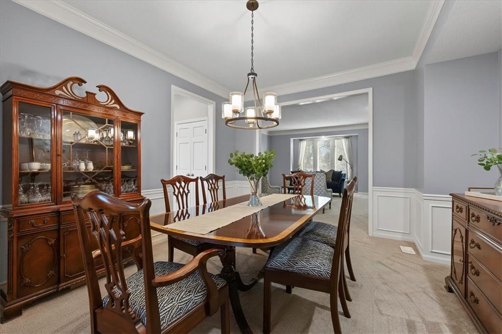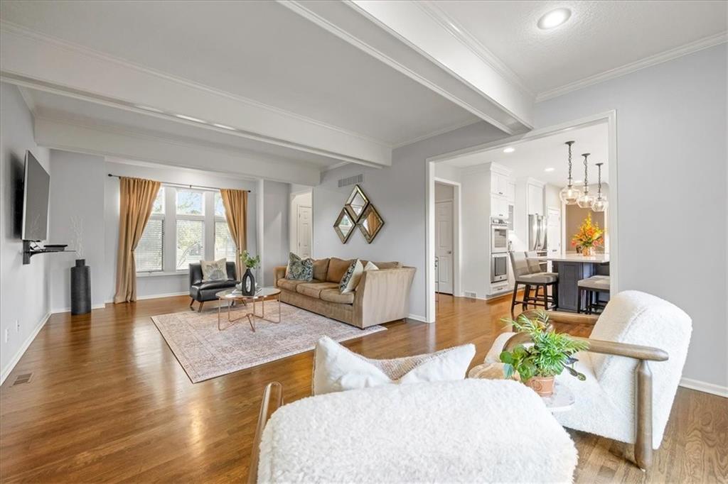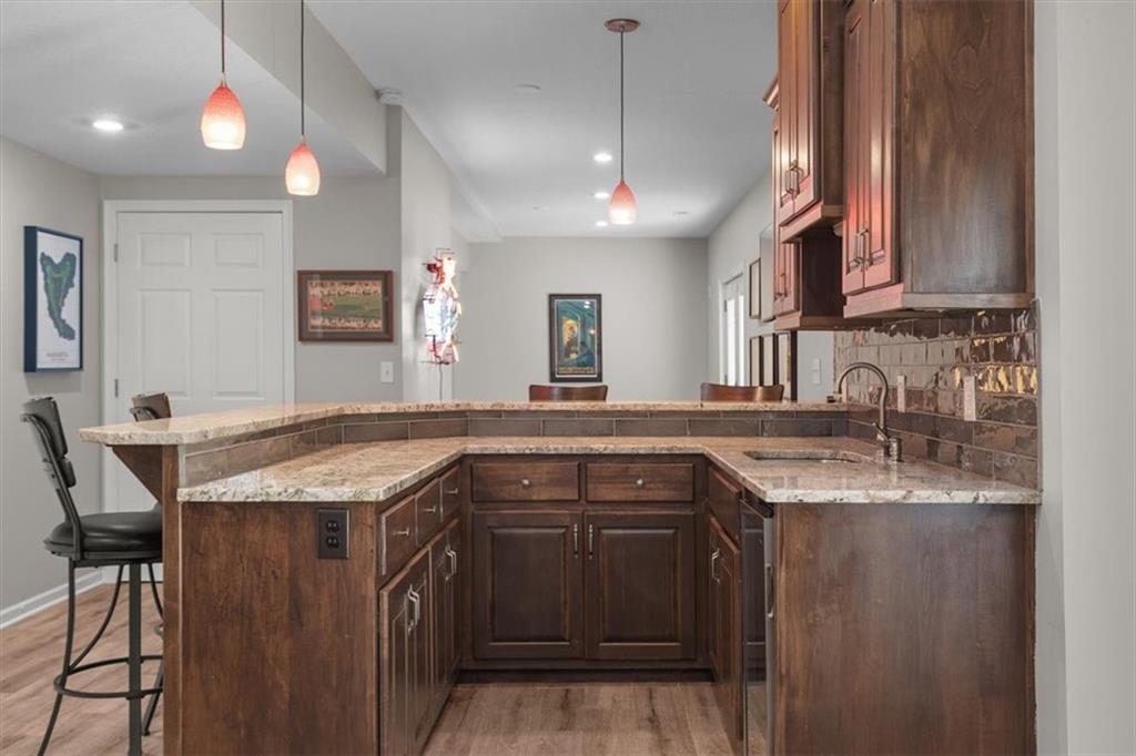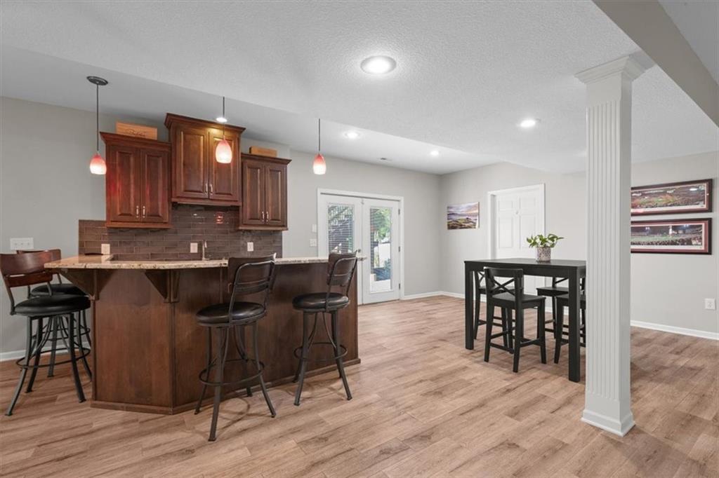 Step inside and feel right at home. This is the comfortable, spacious haven where privacy meets modern living and real long-term value. Nestled on 1.55 lush, tree-lined acres across from future 236 acre Camp Branch nature park, this beautifully updated 5 bedroom, 5 bathroom (3 full, 2 half) home is a rare opportunity in the Blue Valley School District. Inside, the newly renovated chef’s kitchen features quartz countertops, stainless steel appliances, a custom pantry with pullout drawers, and generous prep space- perfect for hosting dinners or weekend entertaining. The open layout flows into a spacious main living area, private home office, and light filled dining spaces. Upstairs, the expansive primary suite offers a spa inspired bath and walk-in closet. The fully finished walkout lower level features a full wet bar and adds flexible space for a second living room, gym, guest quarters, or playroom. The property includes a large backyard, an oversized deck with stunning sunset views, and beautiful, mature gardens, built for outdoor living. A new county park and walking paths slated for 2026 completion is just across the street, and a local winery is a short walk or golf cart ride away. This home offers both everyday serenity and weekend escapes.