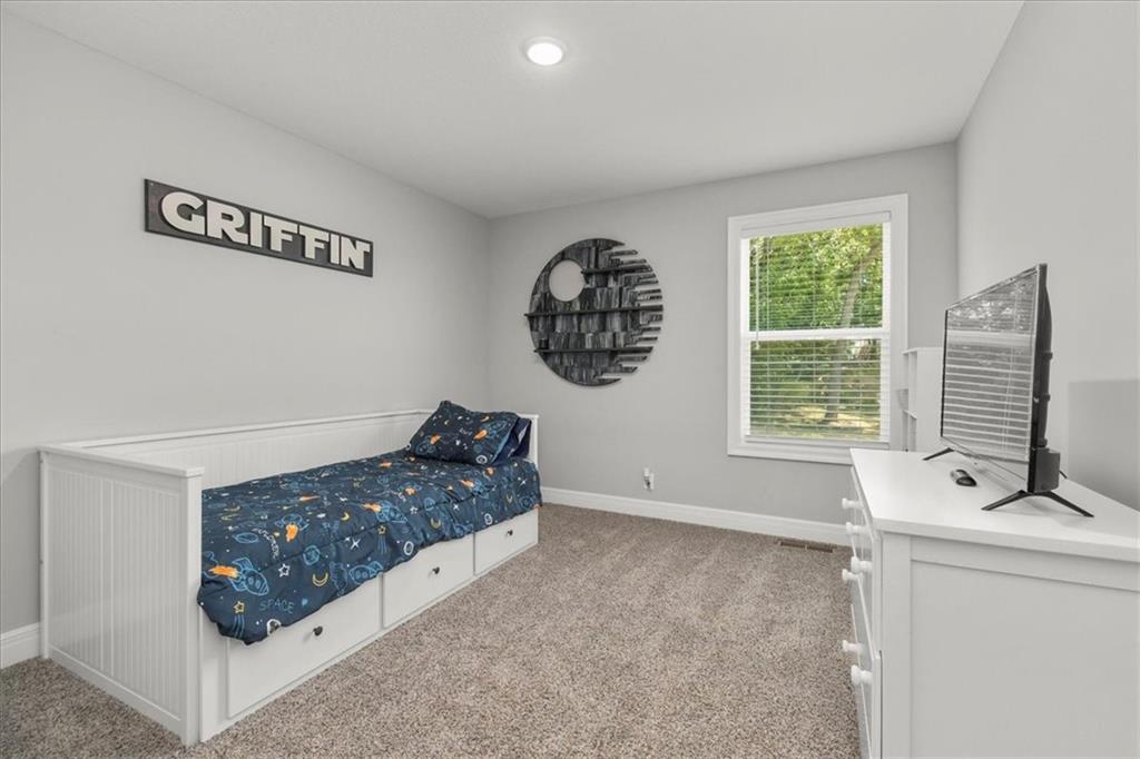 This spacious 2,658 sq ft two-story home offers 4 bedrooms and 2.5 bathrooms, thoughtfully designed for modern family living and entertaining. The main level features an open-concept layout seamlessly connecting the living, dining, and kitchen areas, creating a welcoming space for gatherings. Upstairs, you’ll find all four bedrooms along with a convenient walk-in laundry room, adding practical ease to daily routines. Enjoy outdoor living with a large covered patio, perfect for relaxing or soaking in a hot tub. The attached three-car garage includes an electric vehicle (EV) charging station, catering to contemporary needs. The amazing finished basement features a wonderful rec room and bonus room currently used as an office and still offers generous storage space or can be used as it currently is as an amazing home gym! Located on a nearly quarter-acre lot within the Woodbury community, this home is zoned for the highly regarded Grain Valley schools, including Prairie Branch Elementary, Grain Valley North Middle, and Grain Valley High School. Don’t miss the chance to make this versatile and inviting home yours.