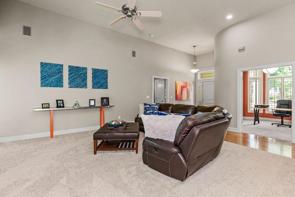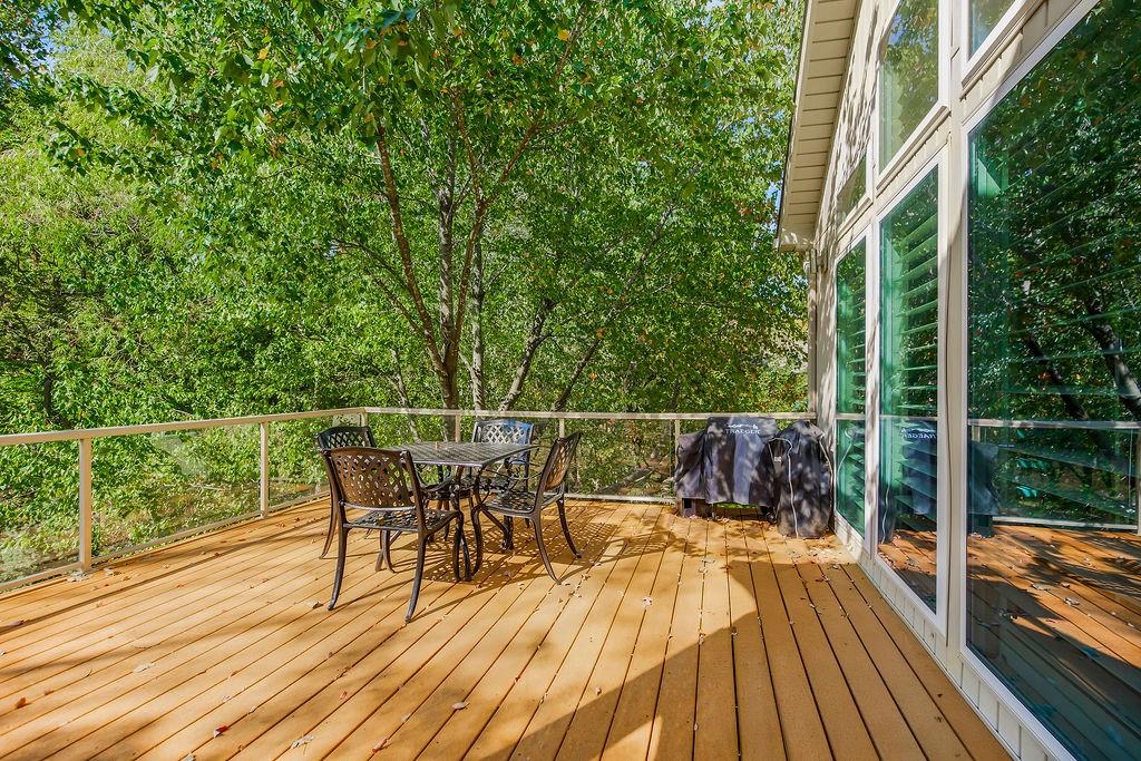 Nestled in the desirable Embassy Park neighborhood, this stunning 3-bedroom, 2.1-bathroom home is a true gem in the Park Hill School District. Located on a peaceful, quiet street, the home offers a perfect blend of privacy and convenience, with easy access to nearby amenities. Designed with a popular reverse floor plan, the main level features spacious living areas including an office with French doors, a half bath, and a large, open-concept kitchen. The chef's kitchen boasts an island, granite countertops, a pantry, and ample cabinet space—ideal for both cooking and entertaining. Adjacent to the kitchen is a cozy hearth room, perfect for relaxing, as well as a spacious living room that offers plenty of room for family gatherings. Plantation shutters are featured throughout the home, adding both style and functionality. The large, private master suite is also on the main level, offering a peaceful retreat with a generous layout and great closet space. From the dining area, step out onto a large covered Trex deck, ideal for enjoying quiet mornings or evenings, overlooking a serene, treed greenspace—creating a peaceful and tranquil outdoor living experience. Downstairs, the finished walk-out lower level offers an expansive entertaining area complete with a wet bar, two additional guest bedrooms, and a full bathroom. There's also an abundance of storage space to accommodate all of your needs. With plantation shutters, tons of storage, a spacious layout, and a prime location that backs to greenspace, this home is truly one you won’t want to miss.