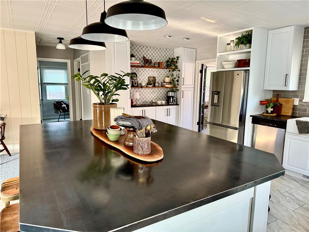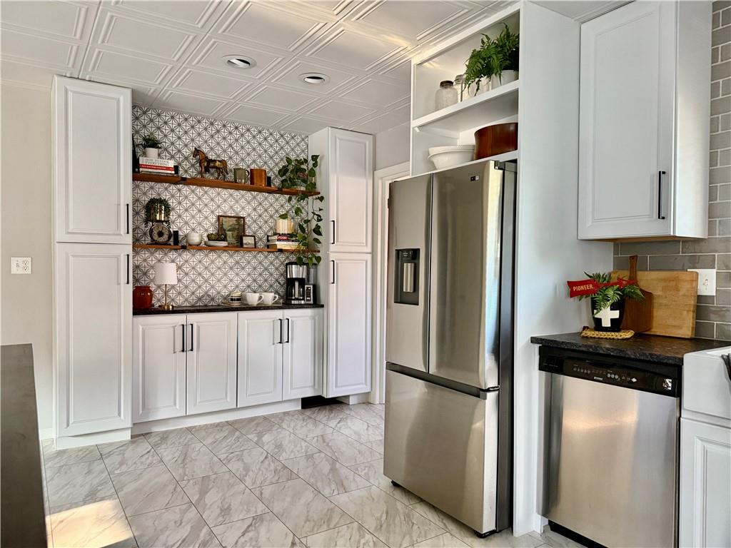 MUST SEE! This jaw-dropping remodel was thoughtfully and meticulously completed for family and is NOT a flip! Nothing was left undone here, with brand-new flooring throughout (hardwoods under bedroom/living room carpet!), a bright open kitchen with granite counters, massive steel-topped kitchen island and stainless appliances, plus a gorgeous coffee bar and lots of cabinet space! Double glass doors lead to a welcoming family room. Spacious master bedroom features a wide closet with pull-downs and laundry! Second bedroom is perfect for a nursery or guests. Upstairs bathroom is super-convenient with a true zero entry walk-in shower and beautiful tile floor. Main level has NO steps and is perfect for someone looking to age in place. The full basement (to get there, gently slide the kitchen island top open, unlatch the hidden door, and head downstairs to a basement so clean and dry it makes other neighborhood basements weep with envy!) features loft finish with painted concrete floor and walls and ample storage space. Downstairs ALSO includes an office or non-conforming third bedroom with en suite half bathroom, ideal for work from home, workout room or guests needing their own space. Outside you'll find a flat and fenced yard, and a roomy garage with storage loft. Walking distance to nearby Hale Cook Elementary and tons of dining and entertainment options. Welcome to Waldo!