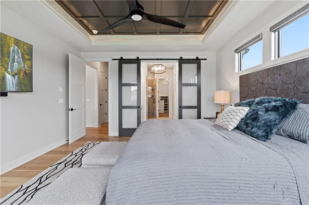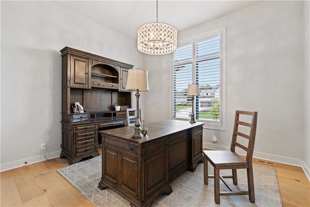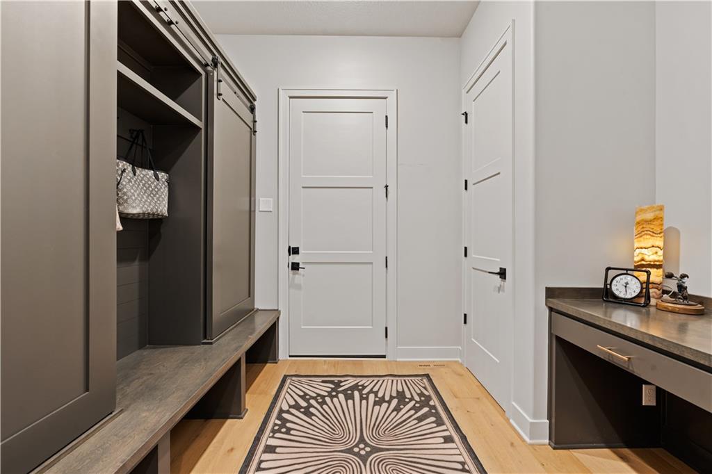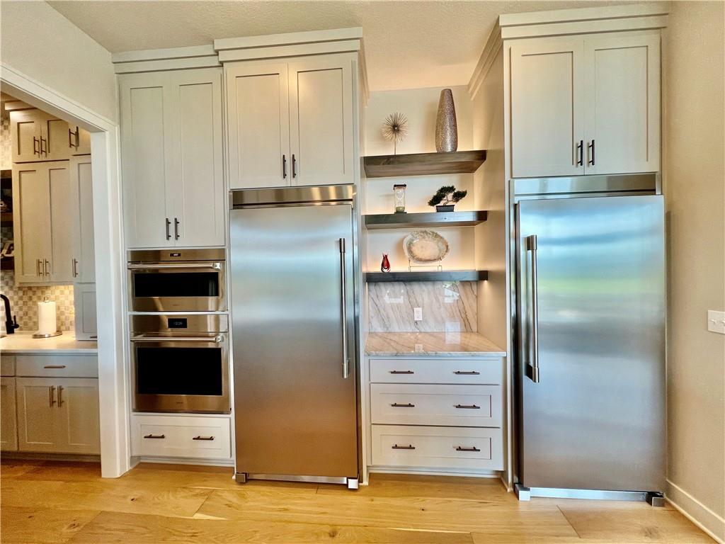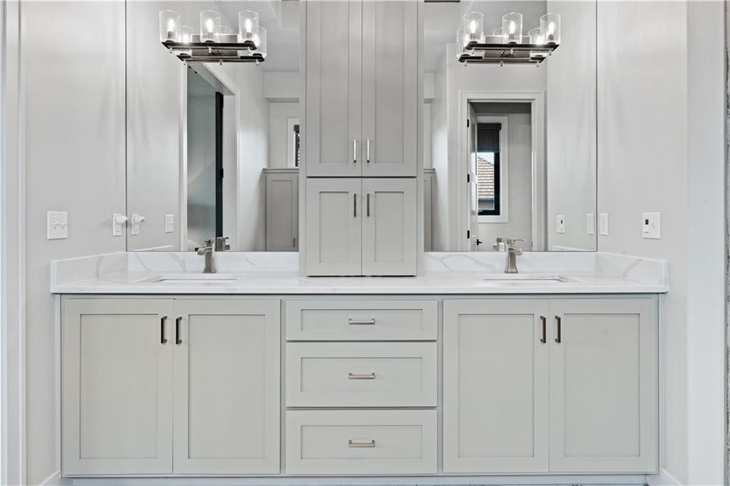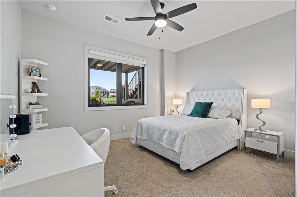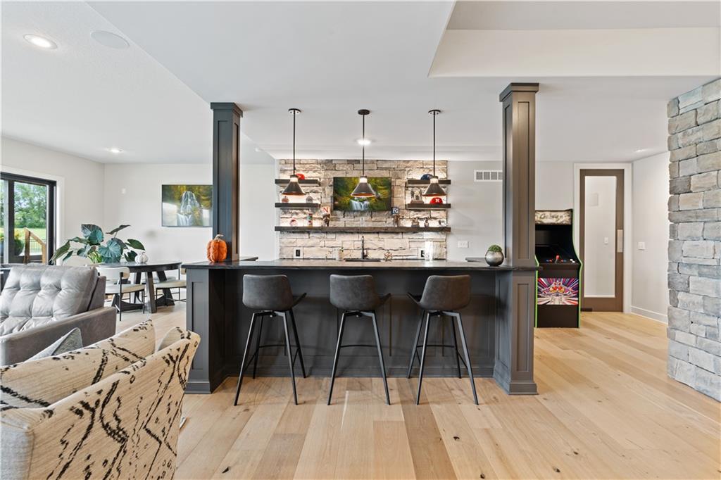 Poised within the prestigious Blue Valley School District, this award-winning Don Julian custom estate embodies the pinnacle of luxury living. Overlooking serene waters and dancing fountains, the residence offers a rare harmony of architectural excellence and natural beauty. The tranquil setting is best savored from the expansive main-level heated covered deck that connects the stunning four-seasons room. Every detail within reflects masterful craftsmanship and thoughtful design. With architectural LED lighting both interior and exterior, highlights the home's contemporary elegance. On the main level, the entrance meets you with glowing hardwoods that flow throughout both levels. The gourmet kitchen, appointed with Wolf appliances and luxurious finishes, anchors the open-concept living area—ideal for both intimate gatherings and grand entertaining. In the great room, remote-controlled window treatments reveal breathtaking lake views framed by cascading fountains.A graceful staircase leads to the lower level, designed as a private retreat and entertainment haven. Here, three ensuite bedrooms with walk-in closets complement an elegant wet bar, family recreation space, and a private music room—perfectly suited to transform into a wine cellar or recording studio. The suspended garage's unfinished space below offers endless possibilities like a home theater. Basement walkout access extends the living experience outdoors connecting to the patio and water views. Advanced home technology with a dedicated network hub with LUXUL gigabit switches, a PANAMAX MR4000 system, pre-wired for security system and in-ceiling Sonos speakers that encompasses the home in sound on both levels and the master bedroom.Enjoy year round energy efficiency with upgraded insulation and two laundry rooms for time efficiency. Blending timeless sophistication with modern innovation, this remarkable estate is more than a home—it is a statement of artistry and lifestyle in Terrybrook Farms.