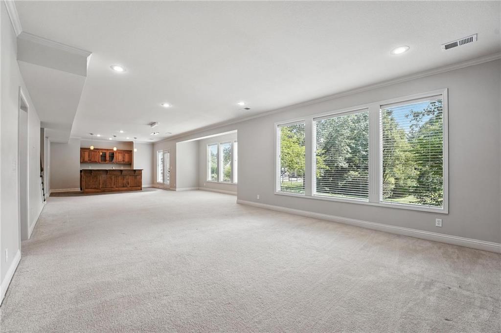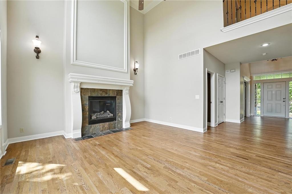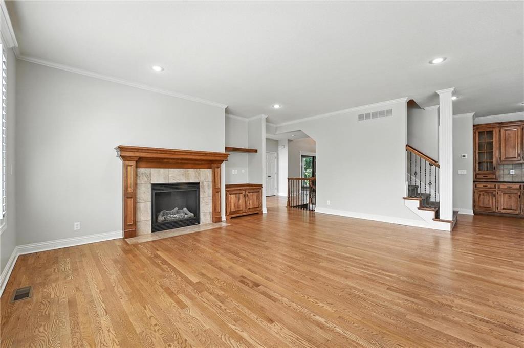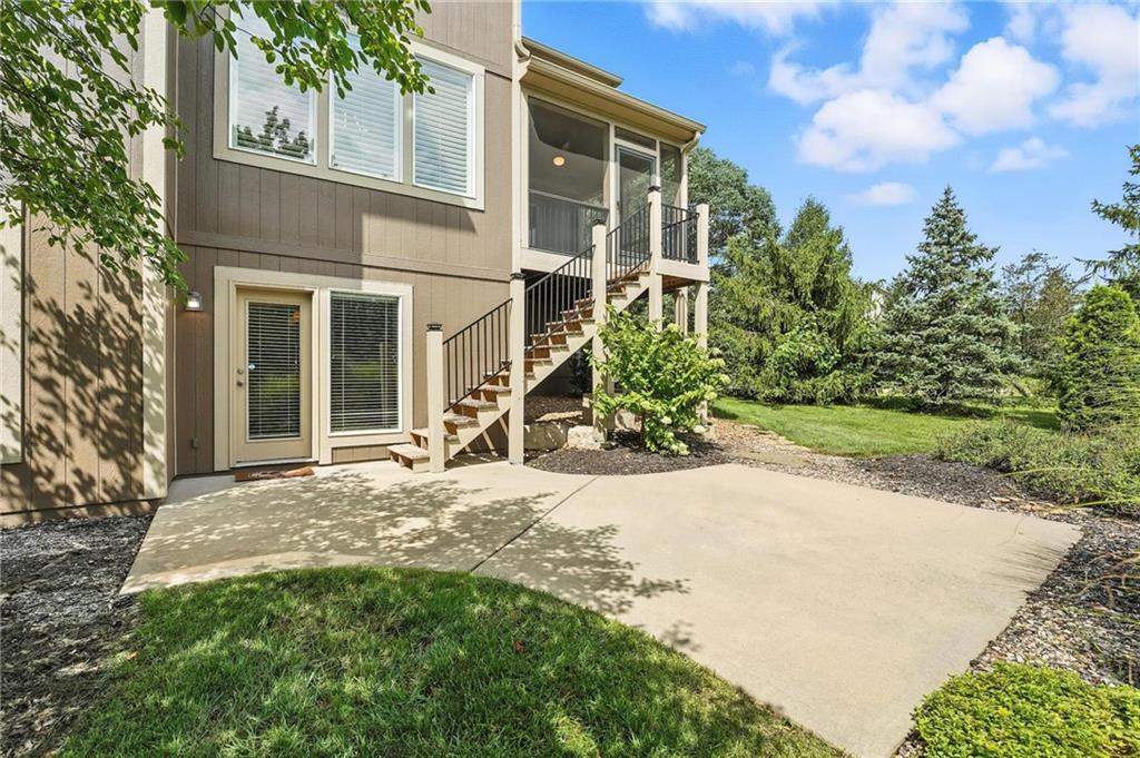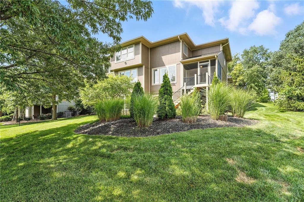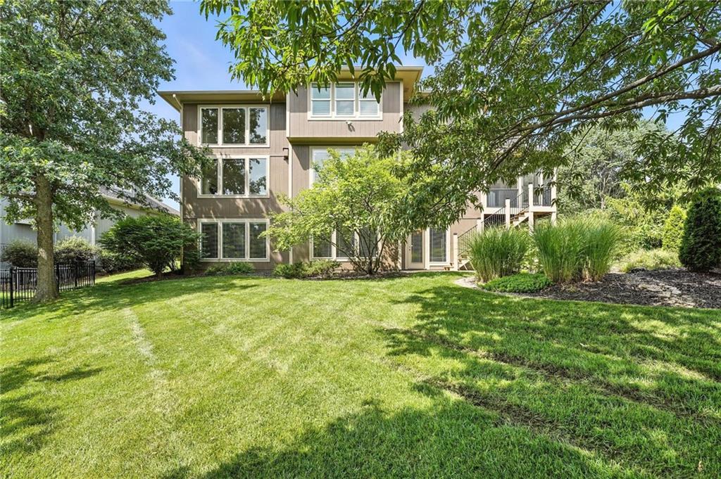 Welcome home to this amazing move-in ready 2-story home in the highly desirable Wilshire Farms. This former model home features a SPACIOUS OPEN floor plan and a FINISHED WALK-OUT basement. Gleaming hardwood flooring throughout 1st and 2nd level, GRAND 2-story tall formal living room features a gorgeous fireplace, and floor to ceiling windows with remote controlled roller shades. Main level flex room can be used as a private home office or a 5TH BEDROOM. Gourmet kitchen features beautiful stained cabinets, large island, stainless appliances with desirable gas cooktop and vent hood. Large hearth room has a 2nd fireplace. Formal dining, Breakfast room, Mud room, Secondary office space with built-in desk, Laundry room, and large walk-in Pantry completes the main level. On 2nd level you will find 4 spacious bedrooms and 3 full bathrooms, large master suite comes with coffered ceiling, master bath has double vanities, jetted soaking tub and a huge walk-in closet. Bright walk-out Basement is an entertainers dream with an open layout rec and family room, full bar and a huge exercise area big enough for a golf simulator. Outside you will love the covered screened-in deck, concrete patio and lush mature landscaping. Top notch amenities includes pool, clubhouse, sand volleyball, tennis/pickle ball courts and play ground. Highly Rated Blue Valley Schools, Walk to BluHawk Shopping and Entertainment, Quick access to 69 Hwy.
