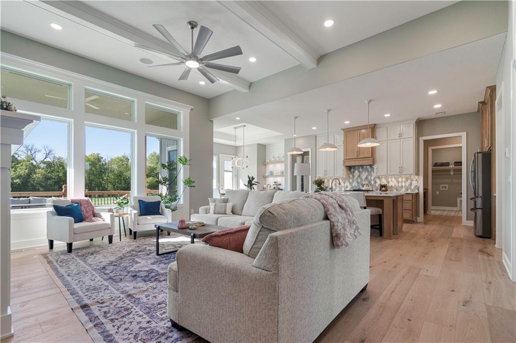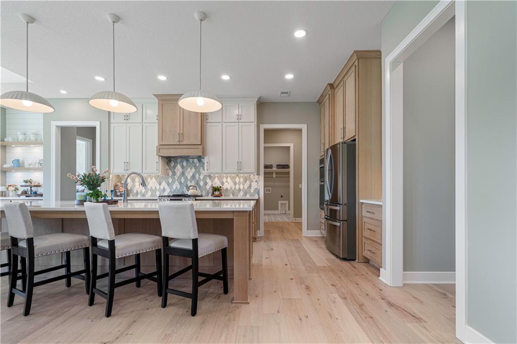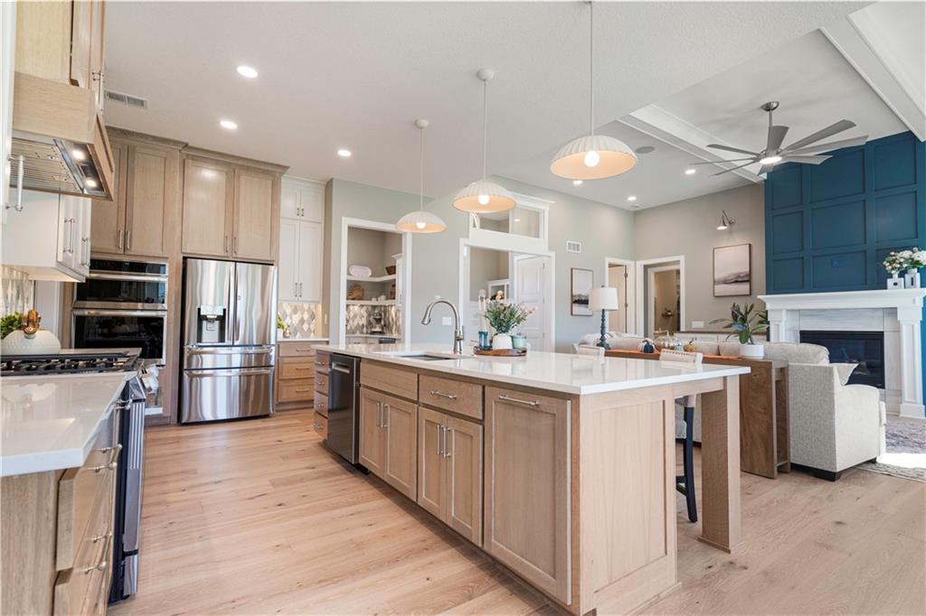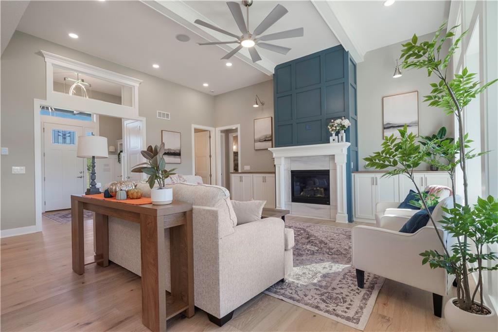 BRAND NEW Reverse 1.5 story by PCDI Homes! This stunning 5-bedroom, 4.5-bath home offers over 4,000 sq. ft. of expertly designed living space on a large 2.51-acre lot. With thoughtful details at every turn, this property combines high-end finishes, modern function, and outdoor living. The main level features soaring 12’ ceilings, white oak hardwood floors, and an open layout anchored by a custom fireplace with wood and tile accents. The gourmet kitchen is a showstopper, boasting a 10’ island, quartz counters, stainless steel appliances, double ovens, prep kitchen, custom tiled backsplash, and built-in hutch in the dining area. The luxurious main-floor primary suite is a true retreat, featuring a vaulted ceiling with wood beams, a cozy coffee bar, and private deck access for enjoying your morning cup with a view. The spa-inspired bath offers a double vanity with quartz counters, an oversized custom-tiled shower with bench, and a freestanding soaking tub. A spacious walk-in closet with tall ceilings and pull-down rods provides smart storage and convenience. Complemented by two additional bedrooms on the main level with a custom-tiled bath and a powder room bath off the entry. A convenient laundry is located on both levels. The finished lower level is an entertainer’s dream with a spacious rec room, wet bar, game area, plus two more bedrooms and two full baths. Car enthusiasts will love the oversized 4-car garage with workshop, sink, epoxy flooring, and a car lift. Outdoor living shines with a covered deck, patio, and firepit — perfect for gatherings. Located in the sought-after Basehor-Linwood school district, this property offers space, style, and sophistication inside and out. *BUILD YOUR DREAM OUTBUILDING / MANCAVE ON THE PROPERTY*