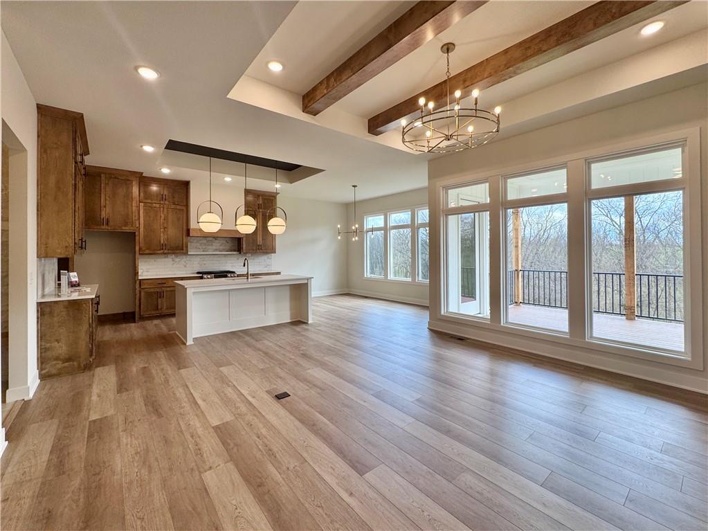 The Ivy is a thoughtfully designed reverse 1.5-story home that combines open living, comfort, and privacy. The expansive great room seamlessly connects to the kitchen and breakfast area, creating an inviting space for everyday living and entertaining. Just beyond, a covered patio offers the perfect setting to enjoy morning coffee or evening relaxation year-round. The main-level primary suite provides a private retreat with elegant finishes designed for comfort and style. A secondary bedroom and full bath on the main floor ensure guests have their own welcoming accommodations. The lower level expands the home’s living space with a spacious rec room and wet bar—ideal for entertaining, hosting game nights, or casual family gatherings. Two additional bedrooms and a full bath provide flexibility for guests or family members, while a large unfinished storage area keeps organization simple.